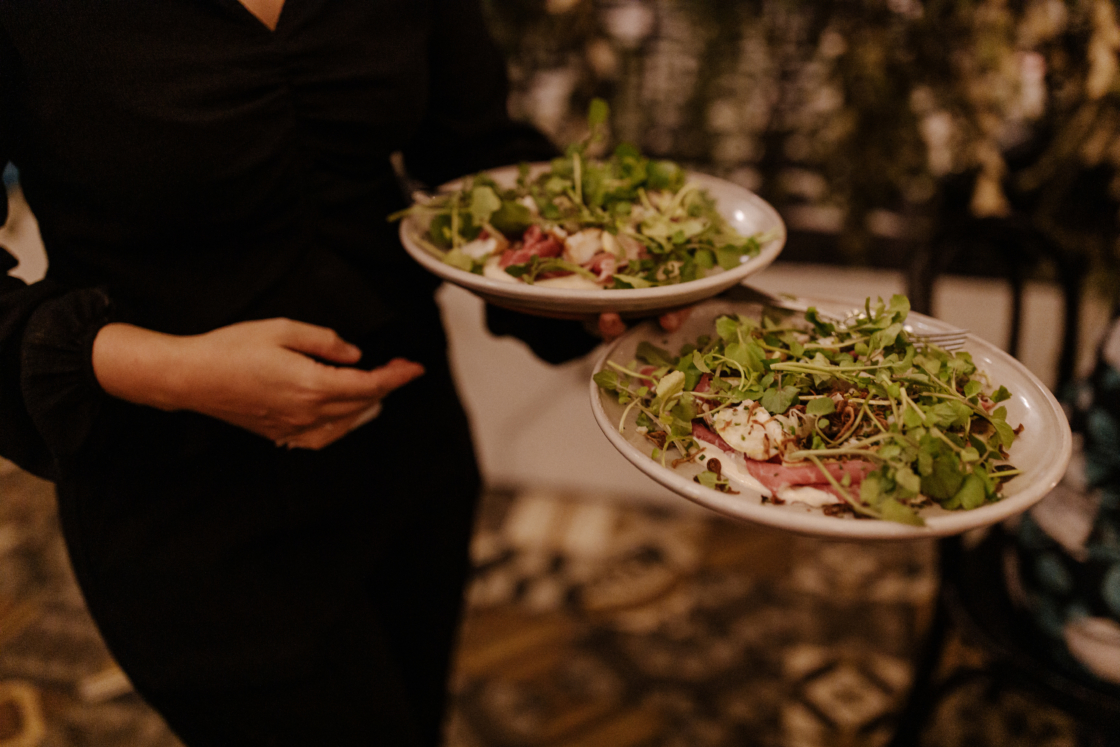 THE VENUE “The most important thing for us was good food and good wine. We were pretty insistent on that. We loved the warmth and atmosphere at Porteno and after going for a site visit we were instantly sold! We know we made the right choice as it was beyond perfect for us. The staff there were also very relaxed and gave us a lot of flexibility when it came to food and wine choices, start and end times, styling etc. They even came over to our ceremony in our garden to provide drinks to our guests. We got super lucky with them.”