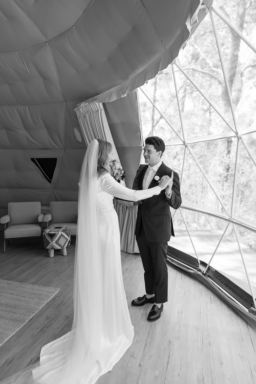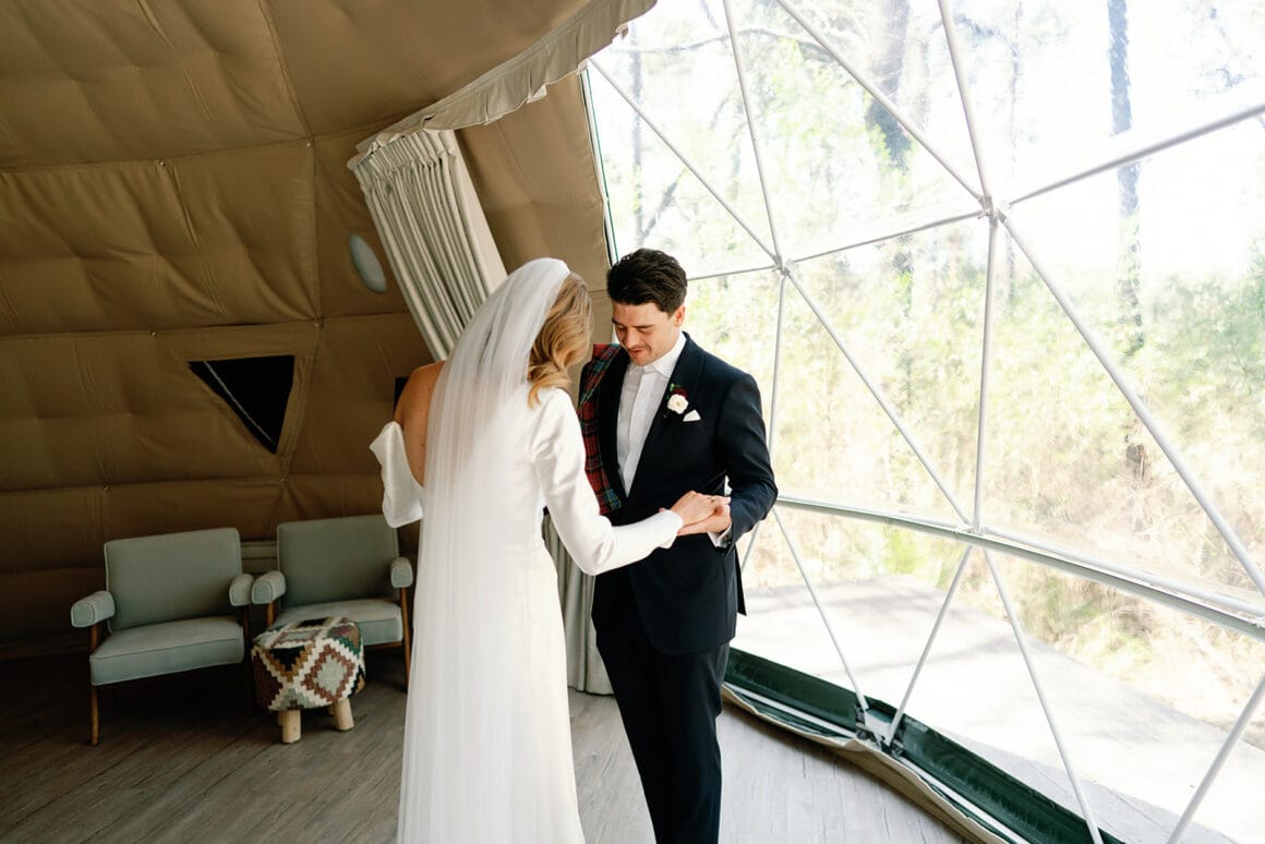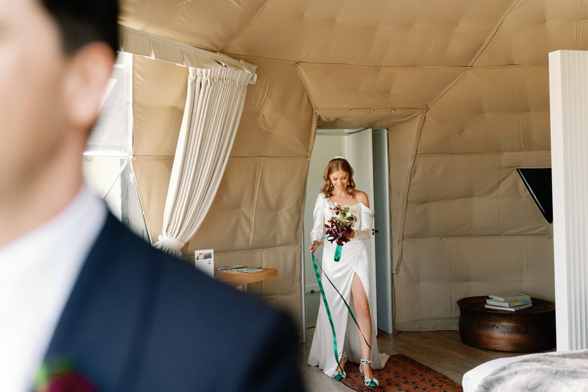 MEMORABLE MOMENT ” Our favourite memory from the day was definitely our first look, which we did in The Jackson Ranch‘s beautifully designed bubble tent that’s surrounded by green dense bushland and has a standalone bath outside. It was a very peaceful and serene place to meet. I hate being the centre of attention, so it really calmed my nerves being able to see Lachy right before the ceremony and share a special moment together with just us… and our photographer, Miko (Tones & Harmony)! He captured the moments perfectly and we both were so happy that we had this time to just be with each other and chat (and shed some happy tears of course).”
