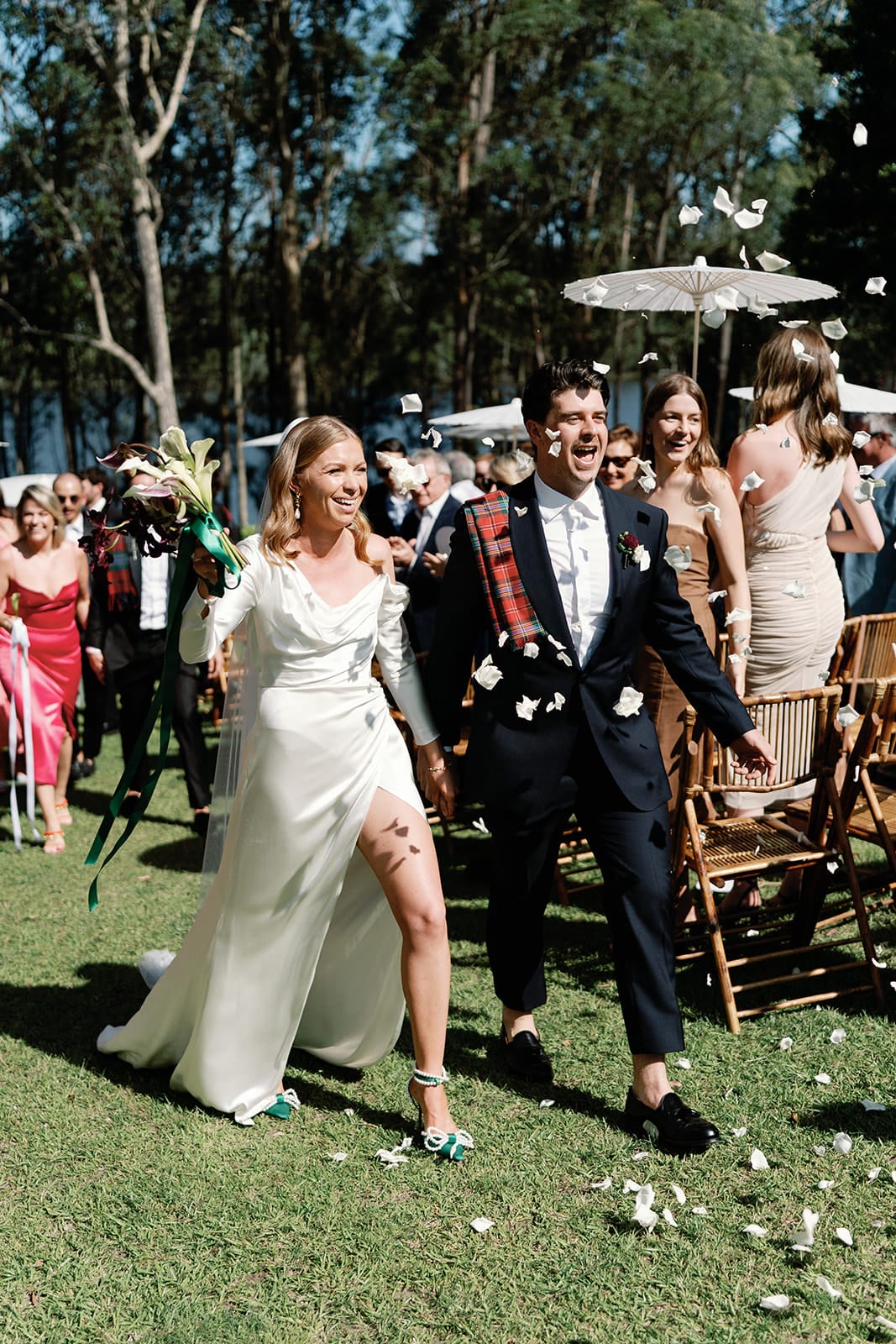 As soon as we spied this wedding at The Jackson Ranch on Insta, we were hooked. Not only is this South Coast venue one of the very best, but Alice and Lachy also had the incredible Miko of Tones & Harmony onboard to take the snaps. Throw in stunning florals from Fritillerie, bold bridesmaid looks and a nod to the couple’s Scottish heritage, and this Jackson Ranch wedding has our hearts. We also love the newlyweds definition of marriage. “Marriage to us means being fully committed to each other and supporting one another with whatever we decide to do. Whether that means Lachy sitting through 60-plus episodes of Love Island even though he hates it, or me supporting Lachy’s 100th juice cleanse, we’ll always be there for each other.” LOL!