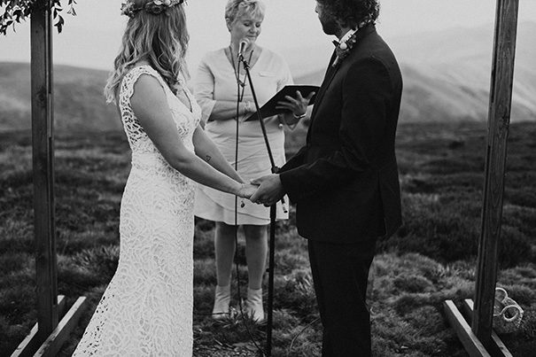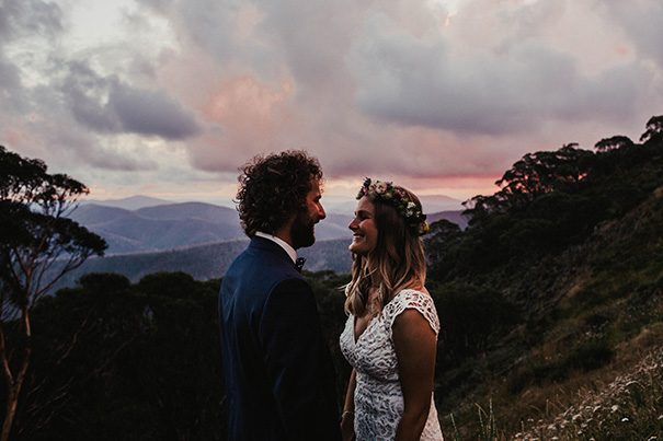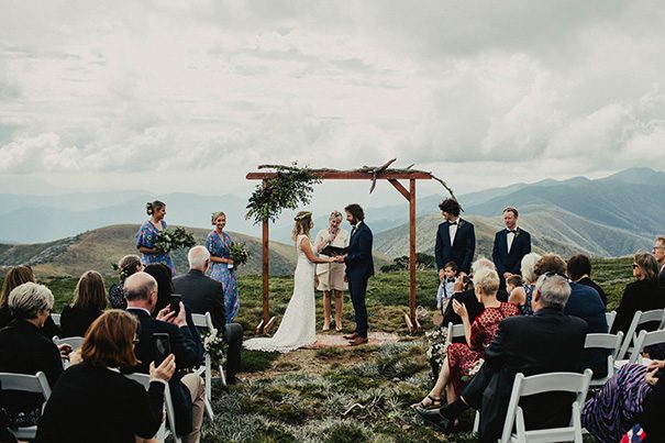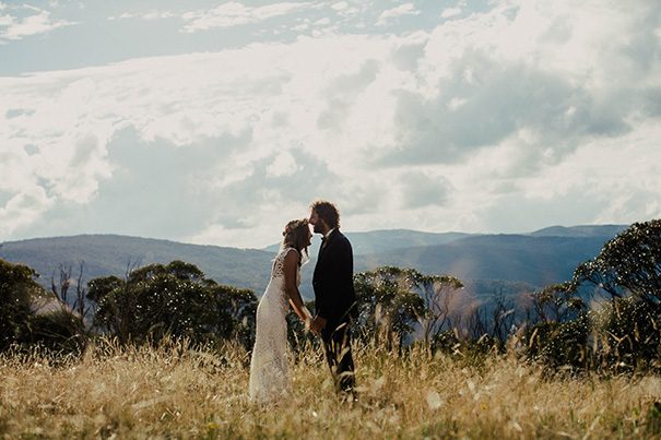 When it came to picking a location for their big day, Ryan had a special spot in mind. Having both lived on Mt Hotham, the pair decided the incredibly scenic location would be the perfect spot to celebrate their nuptials with their loved ones, (and man did wedding photographer Daniel Brannan do an awesome job of capturing the stunning landscape!)