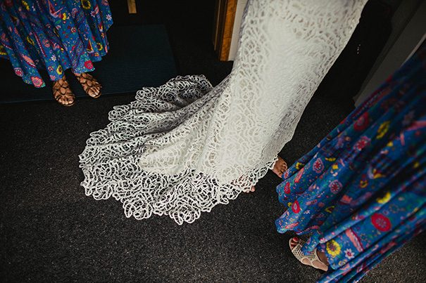 Having visited Pearls & Roses Bridal in Geelong, Alice knew she wanted a handmade gown. With the help of the boutique owner and gown designer, Karen, Alice’s gown turned out perfectly, the bride gushes. “It was so comfortable, easy to move and walk in. I love that Karen only makes a few dresses in each material, so the chances of having an original material is high.”
