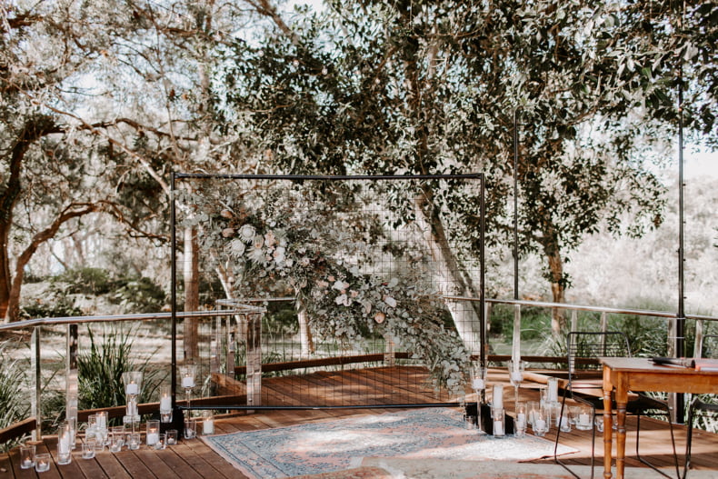 THE INSPO “We wanted something simple and modern that connected with gorgeous surroundings. Jeannie from Two Little Rows did an amazing job creating a beautiful space for us. Those florals were divine!”