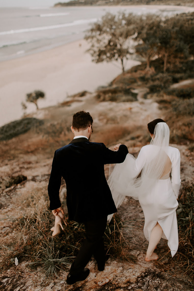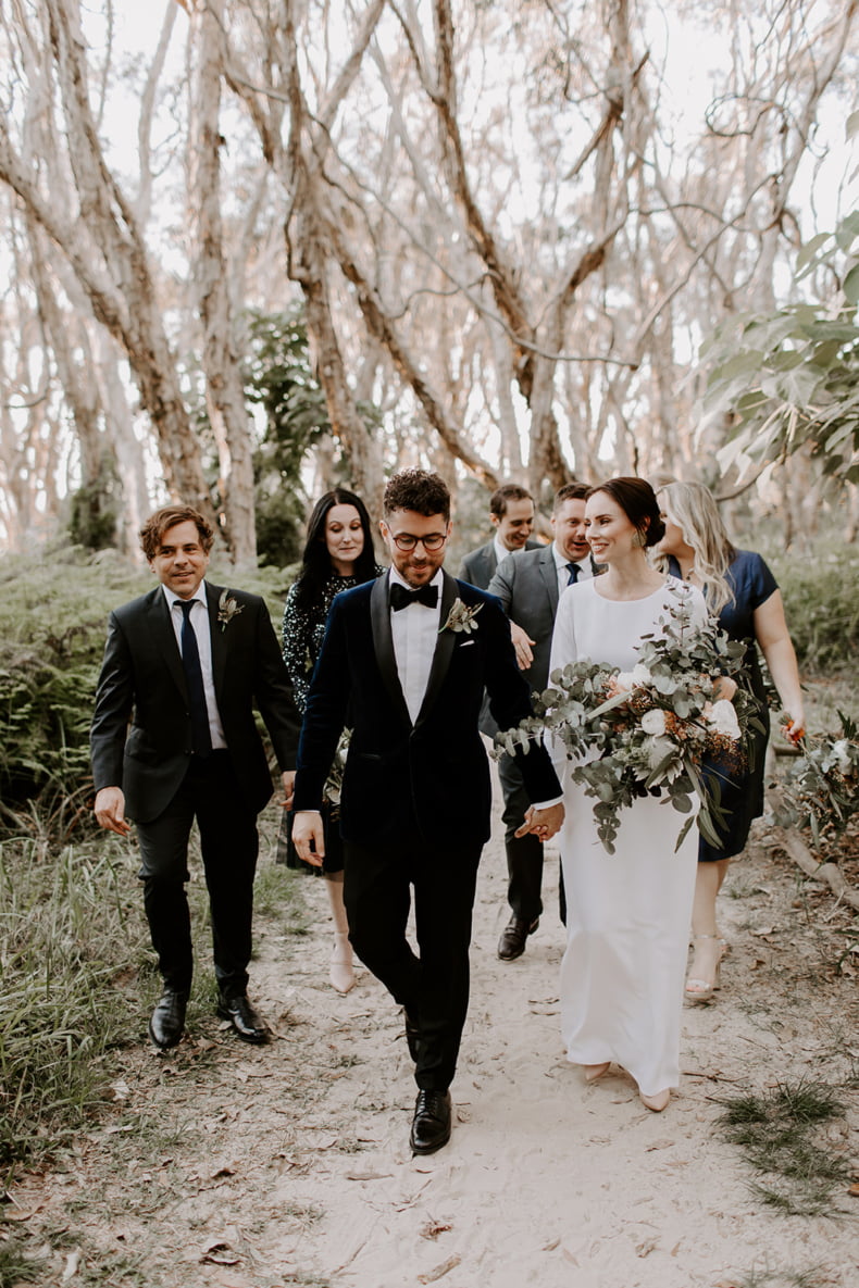 CONTRIBUTING VENDORS Photographer Julian Beattie Event Planner, Stylist, Florist, Lighting Two Little Rows Stationery & Signage Paper / Paper Ceremony & Reception Point Lookout Community Hall via Stradbroke Island Events Catering Eat Drink Catering Cake & Custom Chocolates 31 Degrees Entertainment DJ Beaver & Acoustic Singers (Family) Celebrant Father Ashley Warbrooke via Star of The Sea Catholic Parish THE BRIDE Bridal Gown Monika Novakova Reception Jumpsuit BHLDN Veil Paddington Weddings Rings Ruth Tomlinson Robes Witchery (Bride) Homebodii via David Jones (Bridesmaids) Shoes Nine West & Country Road Earrings Ari Jewellery (Custom) Hair Aleece Roberts Makeup Marnie Rappell Bridesmaid Dresses ASOS THE GROOM Suit, Shirt & Bow Tie Monokel Berlin Cufflinks B.J. Voltz Wedding Band Ari Jewellery Grooming Aleece Roberts (Hair) The Emporium Barber (Beard) Groomsmen Gifts Anthony Squires (Silk Ties) via David Jones