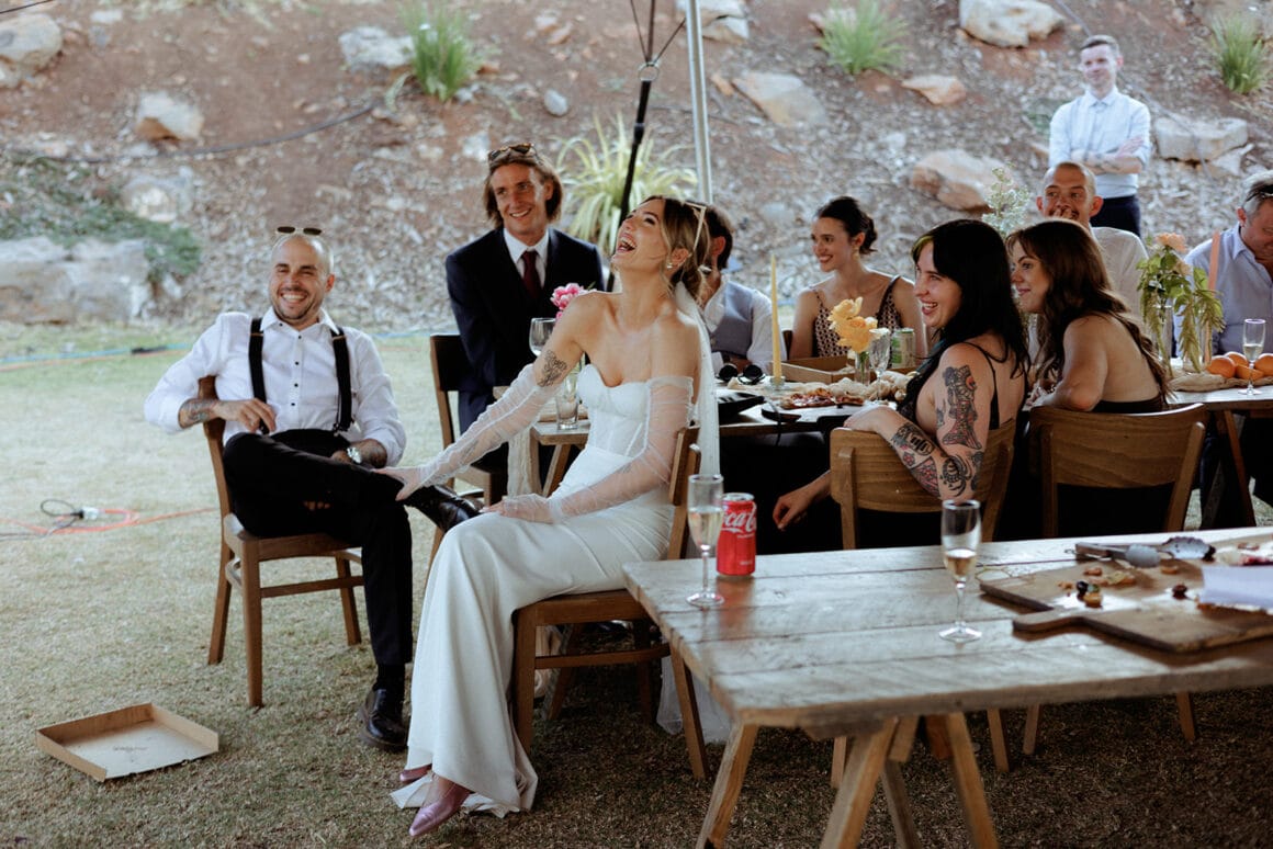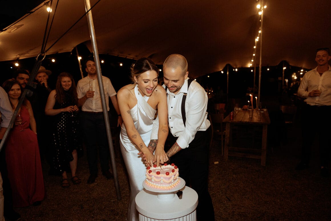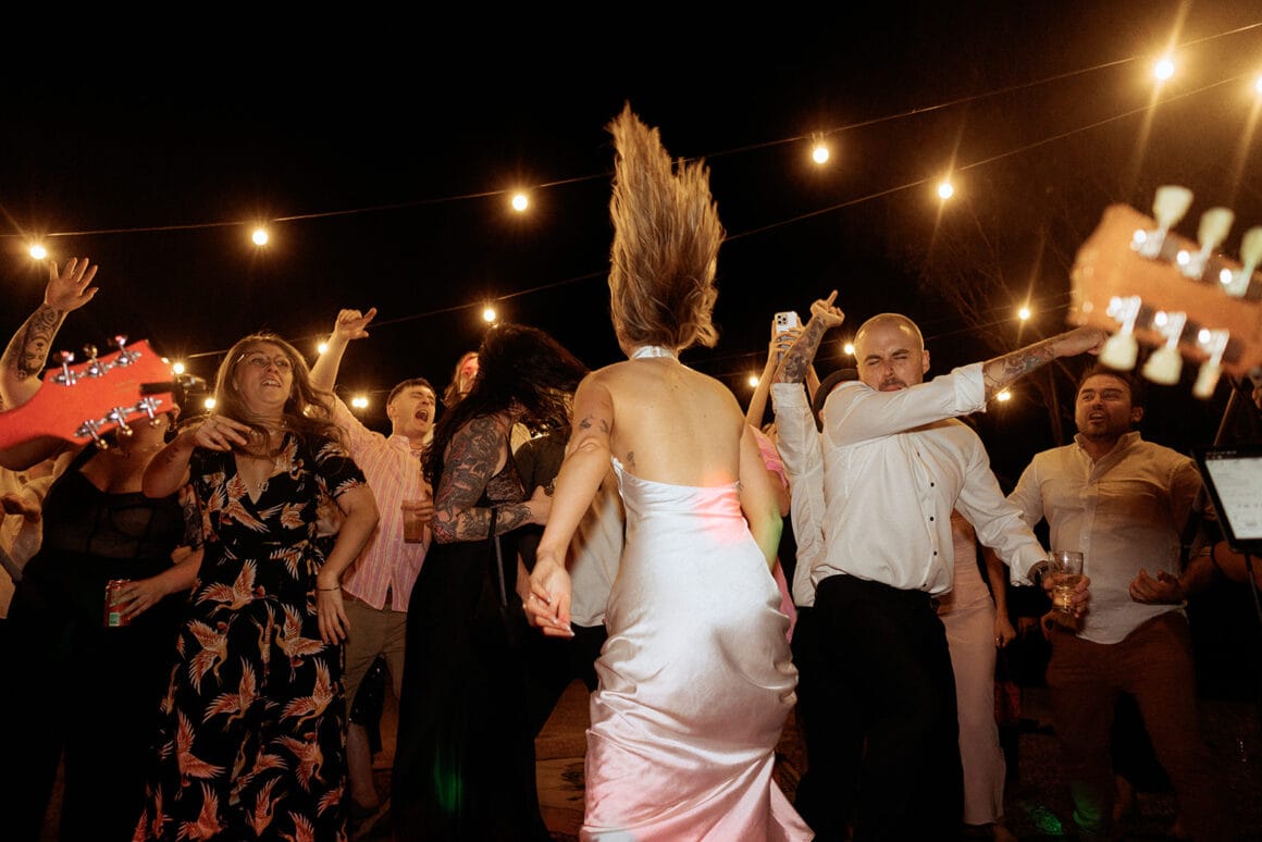 Embodying romantic-meets-rock-and-roll energy, the bride boogied in Bared Footwear while Gibson Clothing formed the foundations of the groom’s punk-infused ‘fit. The audio guestbook by Off The Hook was an absolute winner, as was the couple’s choice to put Caity & Duncan in charge of photography and videography. Cancel your plans and enjoy an all-access pass to Ally and Sam’s love-fest below.