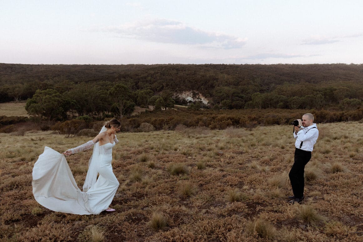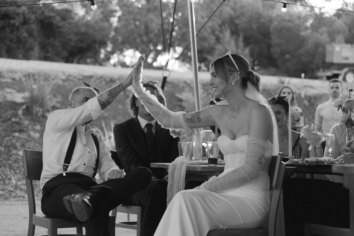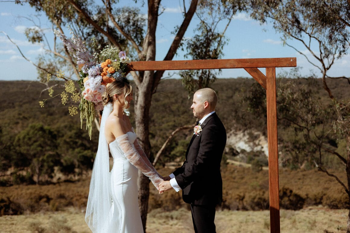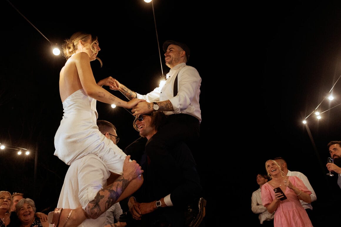 You heard the newlyweds: if you’re on the hunt for a dynamic photography and videography duo, you’re going to want to reach out to Caity and Duncan on the Hello May Directory here. Or, if you’re looking for more unique ways to bottle up the mems, check out Off The Hook’s audio guestbooks. Wanna steal these lovebird’s look? Gibson Clothing has you sorted for suits, and Bared Footwear is always a fave.