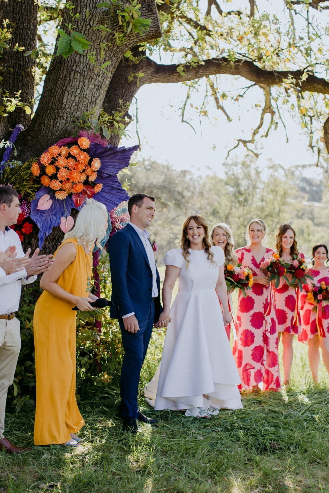 FAVOURITE DETAILS “Our stationary by Love Carli was OUT OF THIS WORLD! Our save the dates and cake topper was an illustrated portrait of us along with our four dogs, duck, chicken and lorikeet! My Nonna did an extraordinary job of our cake and it was so special that she made it for us and that it was her mother’s recipe. And all of our flowers. They were exactly as I have always dreamed- so bright, eclectic and all of the textures were just beautiful.”