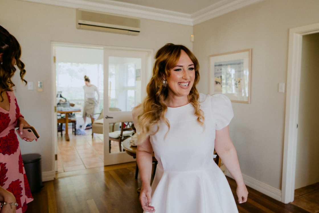 THE DRESS “I saw a photo on Amanda Alessi’s Instagram of one of Helen Manuell’s bridal gowns and decided to make an appointment. Good excuse to have a little Melbourne getaway, too. The minute I met Helen we hit it off and I felt like we were old friends. She was warm, friendly and knew exactly what I wanted. Helen’s attention to detail was phenomenal the cap sleeves were so perfect. My pockets were the highlight! I felt so comfortable in it. It was so important to me that I would be able to hug and dance the night away and by golly I did!”