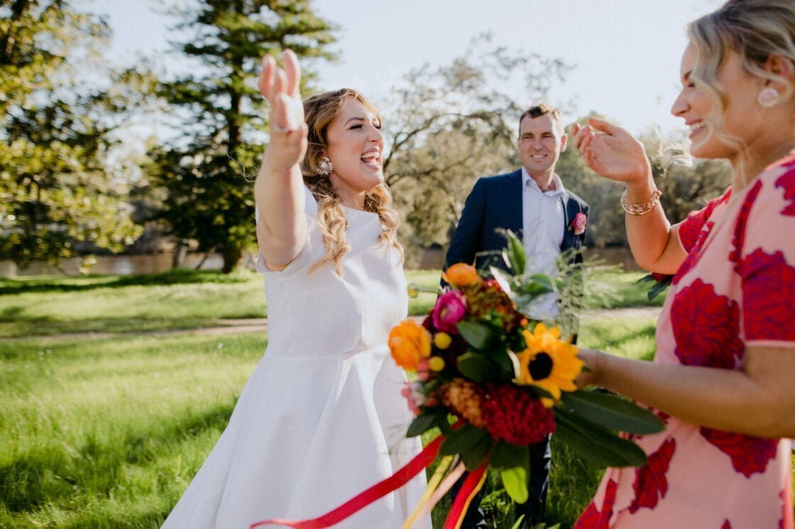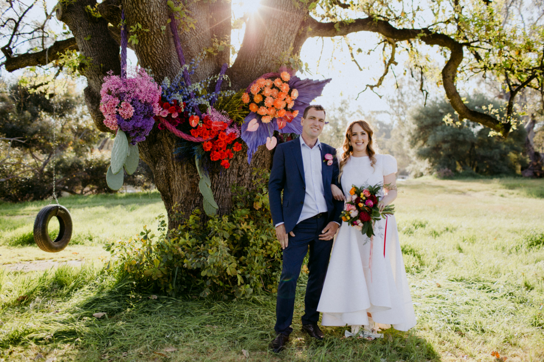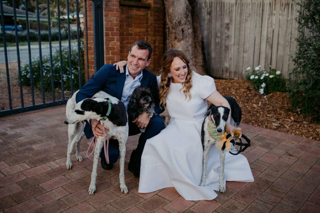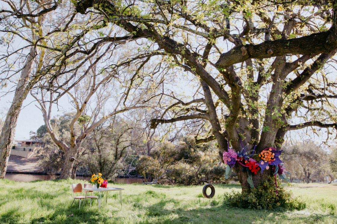 THE VENUE “We have LOTS of dogs! Two adopted Greyhounds, Daisy the queen and Buzz the 18 year old Staffy and Fishmarket Reserve Guildford is our absolute fav hangout! The Tree, the river, the adventure = The Ceremony! We also love our backyard and our home, Three Trees Cottage. We have worked so very hard to make it special and oh golly, who doesn’t want to get married at home and celebrate with all your family/ friends/ dogs/ chickens/ ducks and rescue lorikeet!”