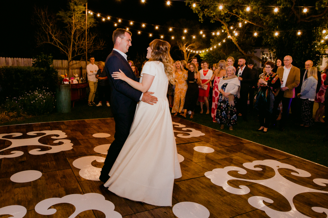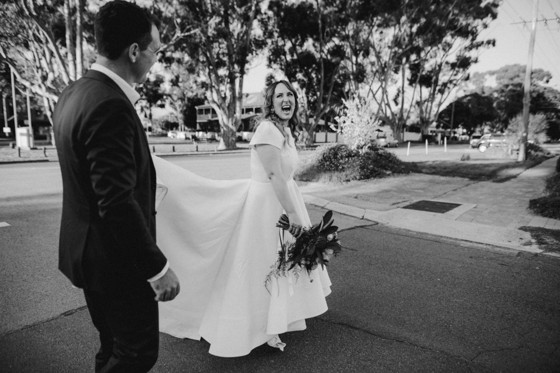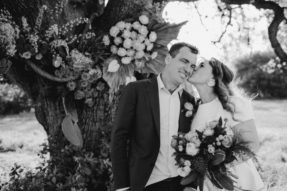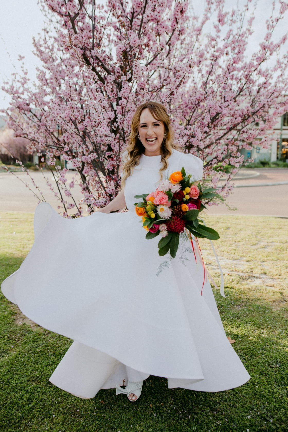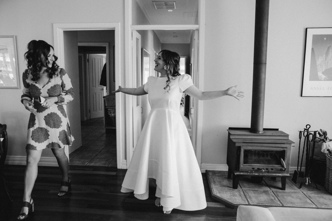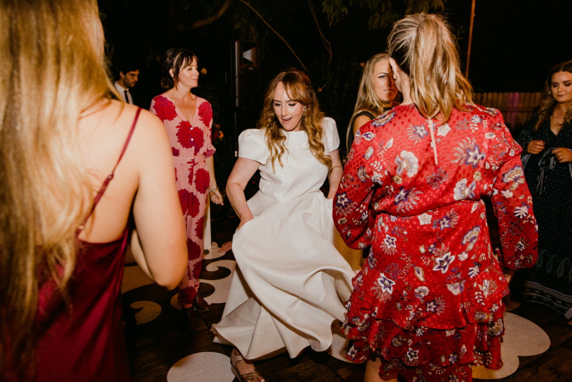 THE DRESS “I saw a photo on Amanda Alessi’s Instagram of one of Helen Manuell’s bridal gowns and decided to make an appointment. Good excuse to have a little Melbourne getaway, too. The minute I met Helen we hit it off and I felt like we were old friends. She was warm, friendly and knew exactly what I wanted. Helen’s attention to detail was phenomenal the cap sleeves were so perfect. My pockets were the highlight! I felt so comfortable in it. It was so important to me that I would be able to hug and dance the night away and by golly I did!”