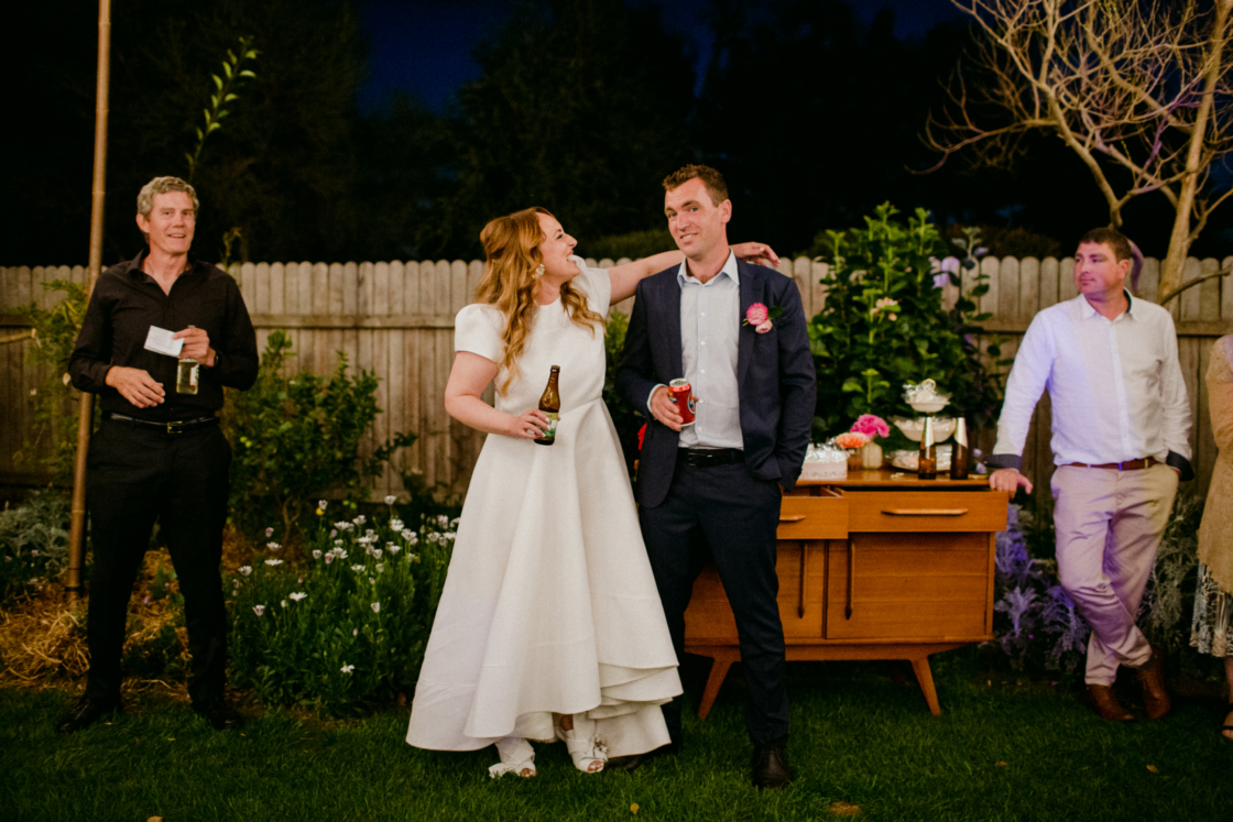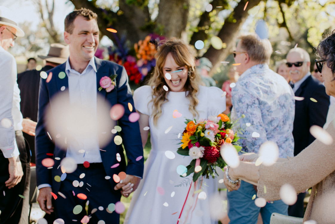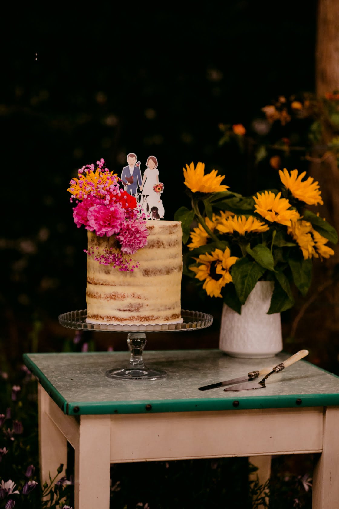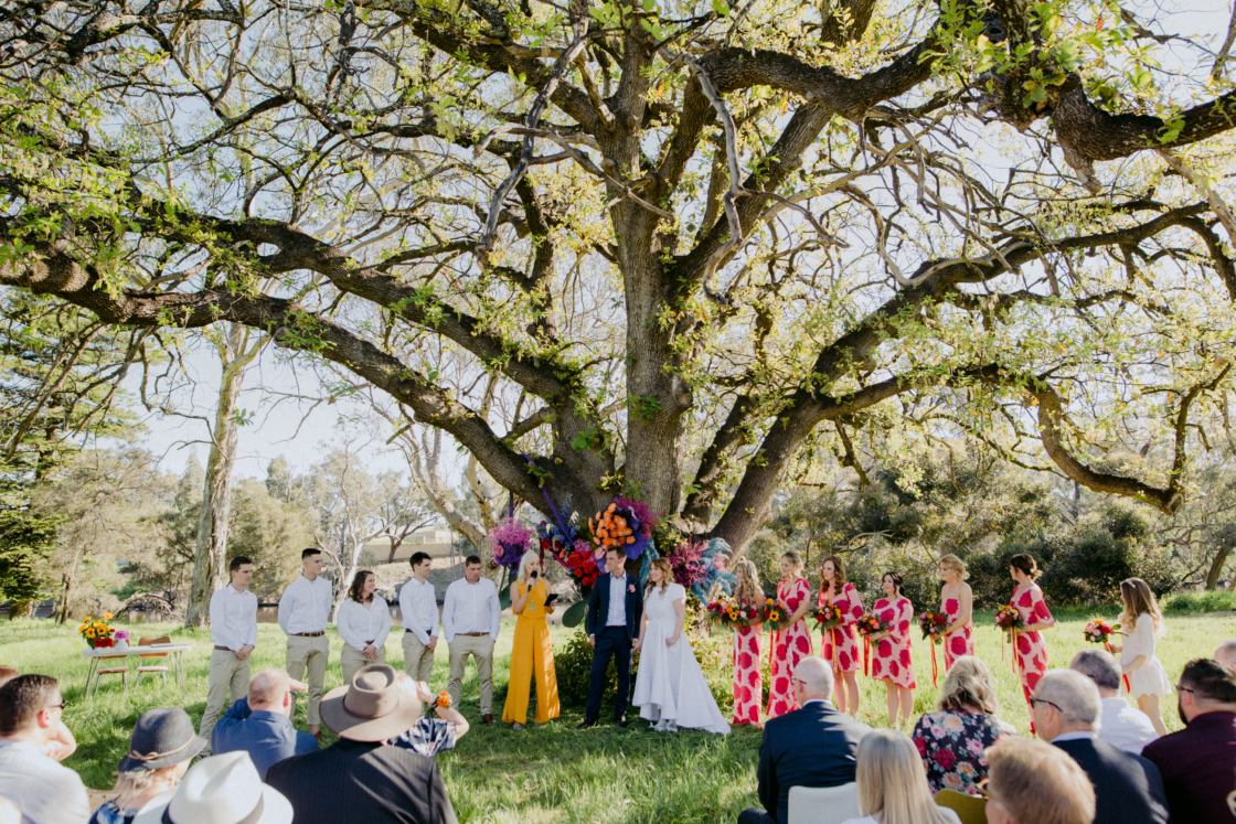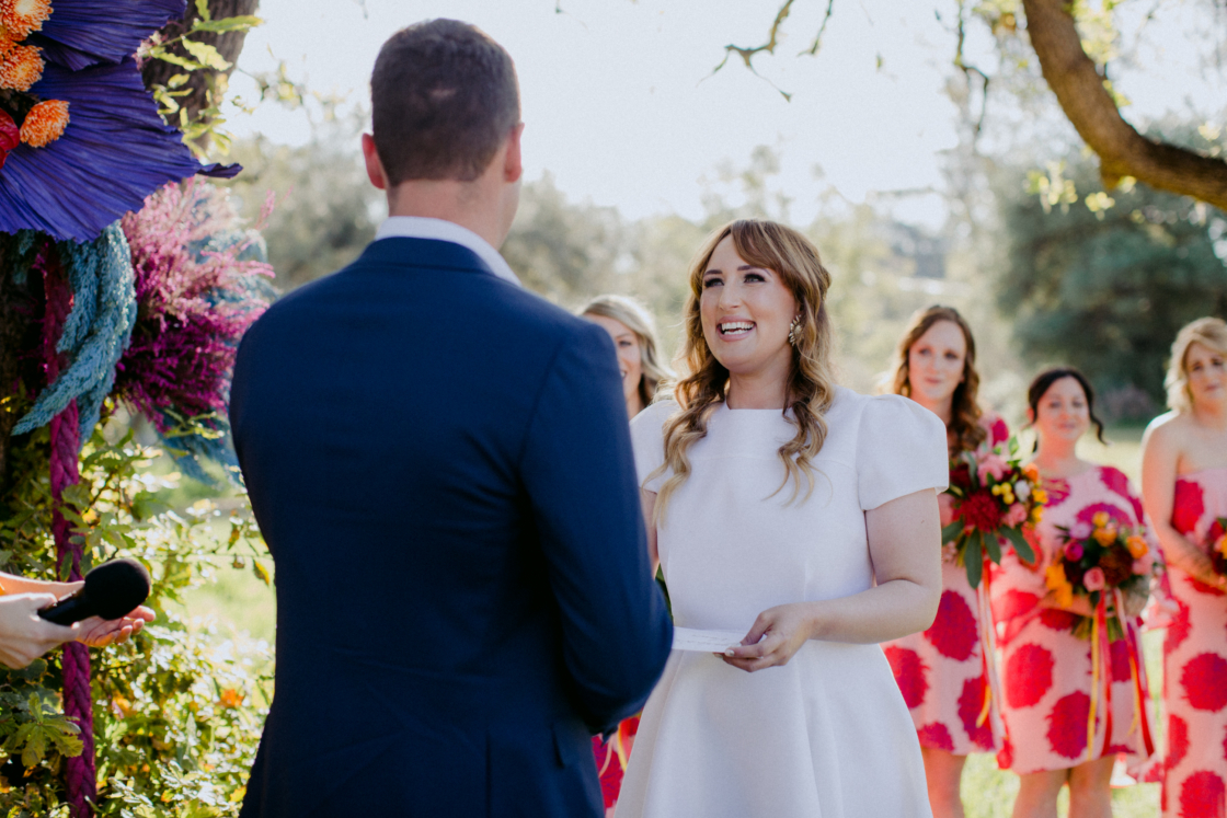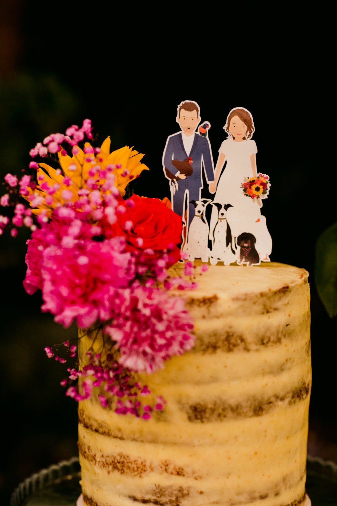 FAVOURITE DETAILS “Our stationary by Love Carli was OUT OF THIS WORLD! Our save the dates and cake topper was an illustrated portrait of us along with our four dogs, duck, chicken and lorikeet! My Nonna did an extraordinary job of our cake and it was so special that she made it for us and that it was her mother’s recipe. And all of our flowers. They were exactly as I have always dreamed- so bright, eclectic and all of the textures were just beautiful.”