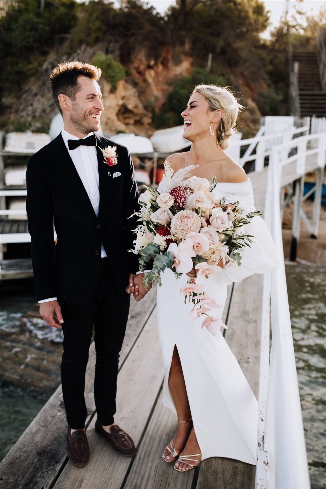 THE VENUE “We had seen approximately five venues before deciding on The Baths. We loved the idea of a beach destination wedding. We love the beach, warm weather and light bright spaces. It ticked all our boxes! We loved how the venue was directly on the water and would make the perfect backdrop for our wedding and vibe we were aiming for. We also loved the idea of having the ceremony directly on the beach and for the reception to naturally follow straight on afterwards. [Also] the food was sensational!”