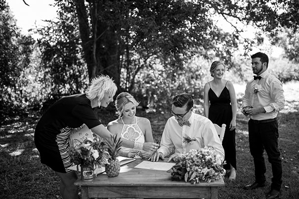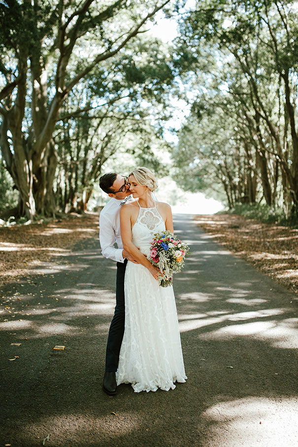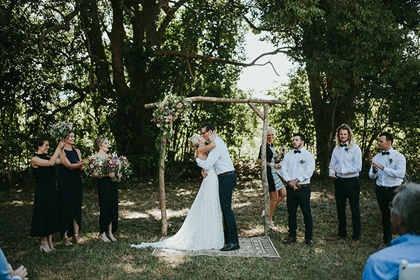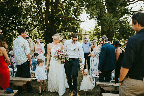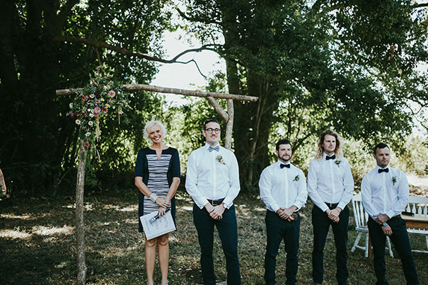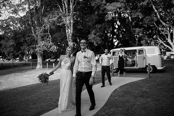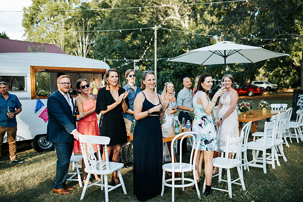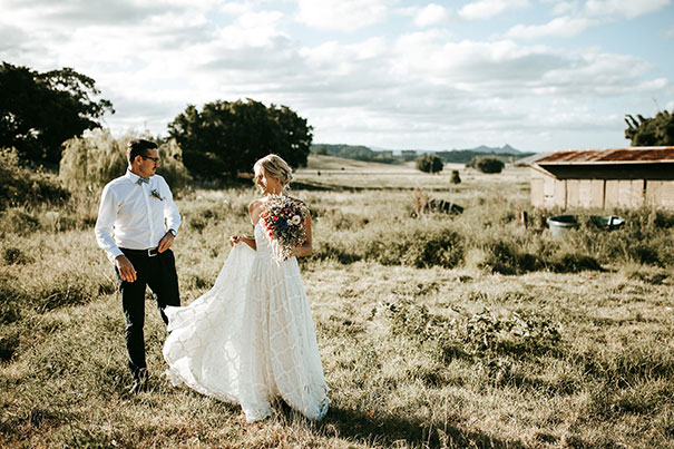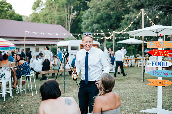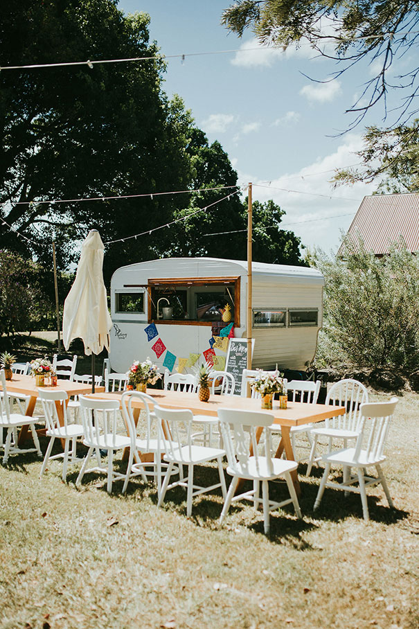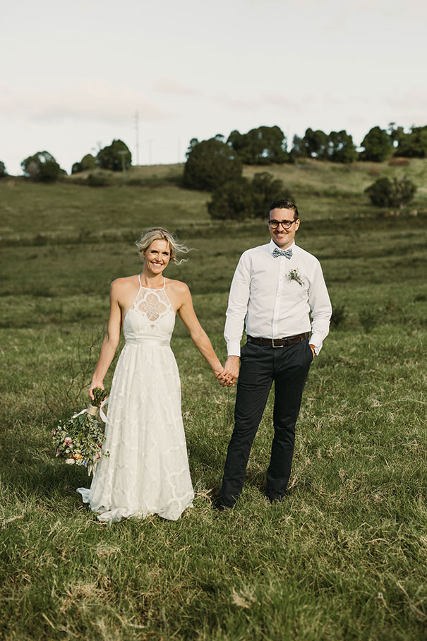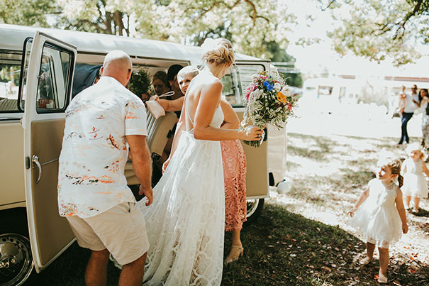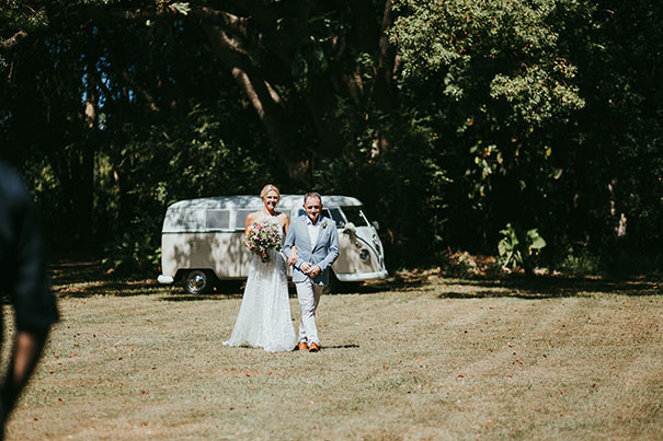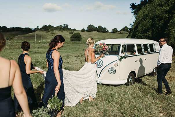 CREDITS Photographer Carly Tia // Cinematographer Pixelbits // Florist Wallflower Floral Design // Stationery Coral Lane Paper via Etsy // Printer Lava Print // Ceremony and reception Ewingsdale Hall, NSW // Catering Siguenos // Food truck Gathering Events Caravan Bar // Cake Samara Ballington // Decorative elements eBay, In Nonnas Kitchen via Etsy, Lorgie via Etsy, Target and Kmart // Wedding favours Pack My Product // Prop / furniture hire The Wedding Shed // Garden games Gathering Events // Lighting / sound hire Byron Audio // Entertainment The White Tree // Celebrant Sunshine Ceremonies // Engagement ring Diamond Exchange // Brides wedding band Crown Family Jewellers // Grooms wedding band The Gentleman’s Smith // Transport Byron Bay Coaches // Kombi Kombi Celebrations // Bridal gown designer Grace Loves Lace // Robes / getting ready tees Sandy Waters Store via Etsy // Shoes The Iconic // Earrings Wallace Bishop // Hair Isabella Jane Hairstyling // Makeup Makeup by Bridget // Bridesmaid dresses David Jones and The Dress Shoppe // Shirt, pants and cufflinks Myer // Tie / Bow tie Top Man // Shoes RM Williams // Socks Blaq // Watch David Jones // Barber / grooming Blade Barbers // Flower girl outfits A Little Lacey // Page boy outfits Charlie&Me and Target.