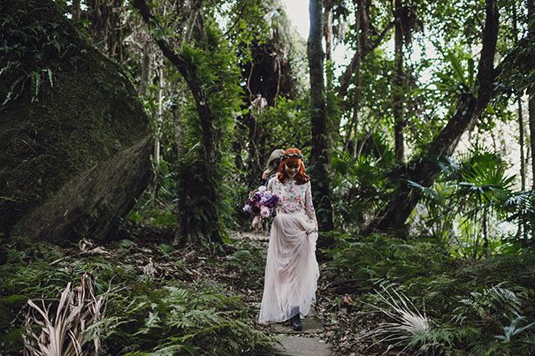 After searching high and low for the perfect wedding venue, it was only a few months out from their big day when they discovered the hidden gem that is Mount Keira Scout Camp.“It was our dream venue and we didn’t even visit it in person until a month before our weddingŒbecause we just knew it was the one,” and boy was it, the stunning photography from Lauren Campbell has us imagining Tinker-Bell will pop round one of those ancient rainforest trees!