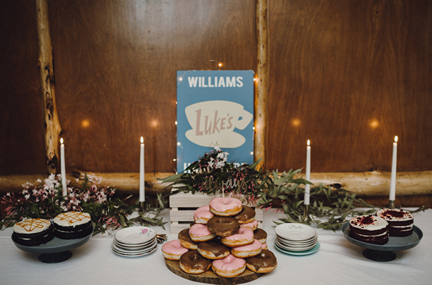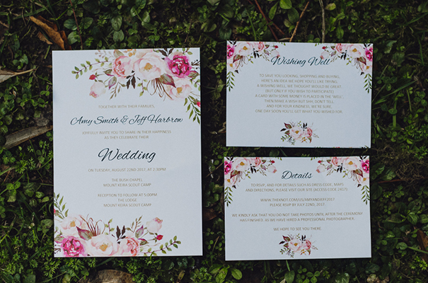 CREDITS Photographer Lauren Campbell // Florist Flowers on the Mill // Invites Big Day Prints via Etsy // Place Cards Kraft and White via Etsy // Reception Venue The Lodge, Mt Keira Scout Camp // Catering Guzmen Y Gomez // Cake Topper Rachel Emma Studio via Etsy // Decorative Elements My Stuff and Nonsense via Etsy, Signs at Simply Wood via Etsy and WonderWall Art via Etsy // Props and Teepee Wedding & Event Creators and South Coast Party Hire // Celebrant Jo Fabro // Engagement Ring Michael Hill // Brides Wedding Band Goldmark // Grooms Wedding Band Wooden Ring Store via Etsy // Bridal Gown Designer Needle & Thread // Lingerie Victoria Secret // Bride’s Shoes Kmart // Makeup VDJ Makeup // Groom’s Suit H&M // Tie and Suspenders Rivers // Shoes Target // Pin Tall Rabbit via Etsy.