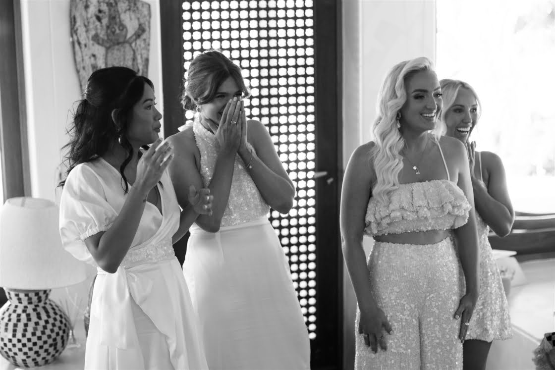 THE VENUE “Originally, we had always hoped to elope in Hawaii. It was always what we had spoken about pre COVID. Once we were engaged, we were in and out of lockdowns and knew our Hawaiian wedding dream was over. The good news was that we already knew the style of wedding we wanted – tropical-luxe. We began looking at venues in the Whitsundays and Lachie came across Paradise Cove Villa Whitsundays on Instagram. We fell in love immediately and booked flights to go and see the venue. It was the only venue we looked at. We just knew it was perfect for us.”