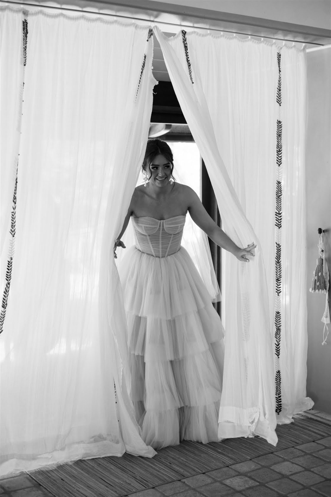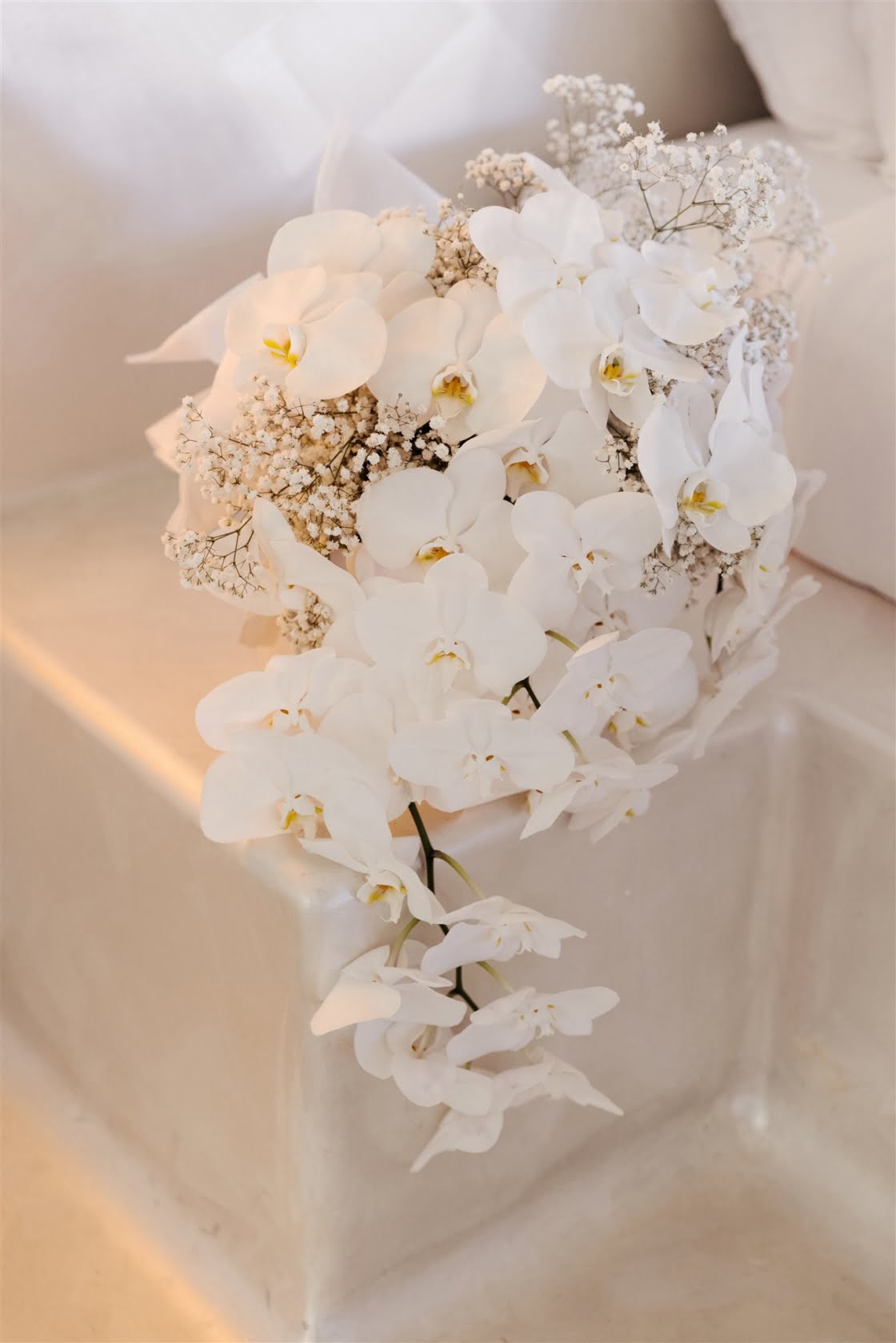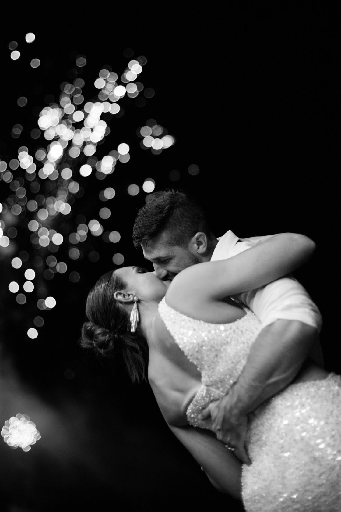 FAVE DETAILS “I really loved planning our wedding. I paid special attention to every detail that I could possibly think of. We designed our own wedding logo, which we tried to incorporate as much as we could. Our bamboo arbour was handmade by our florist, Evoke Floral Design, and her husband and it was everything I imagined and more. We chose orchids as our hero flower and they lasted so beautifully in the humidity. Our guests were treated to a welcome cocktail on arrival, which was presented in a coconut, and once the cocktail party kicked off, fresh seafood and boozy ice blocks circulated. The signage and stationary were made up of pink, white and rose gold acrylic and we tried to keep the language fun, casual and witty. In terms of entertainment, we had an acoustic guitar loop pedalist playing up until the reception. We then switched to a DJ who added a nice touch by also playing saxophone. Instead of a photobooth we decided to have a photo wall with a custom neon sign by Neon Republic. The wall was decorated with greenery, orchids and disco balls. Towards the end of the evening, we surprised our guests with a fireworks show. It was a truly spectacular moment.”