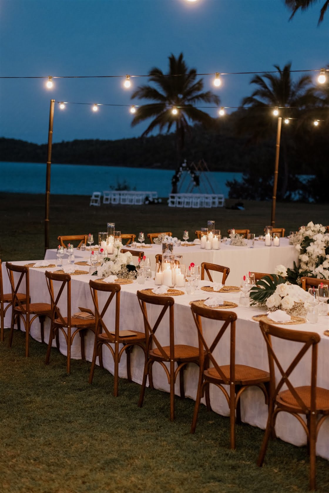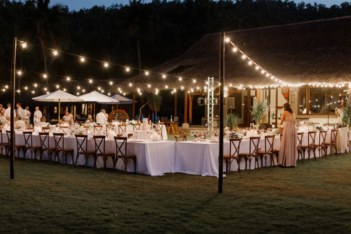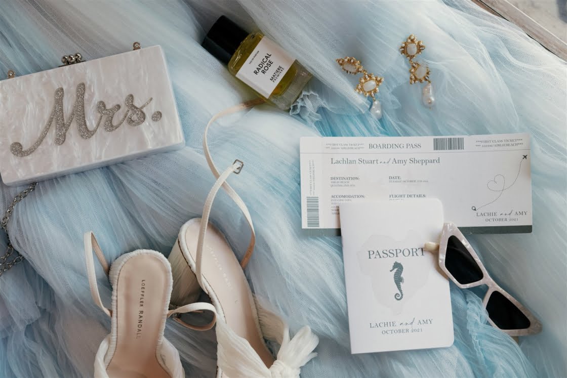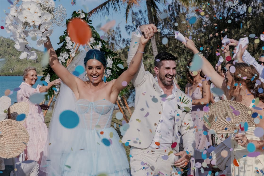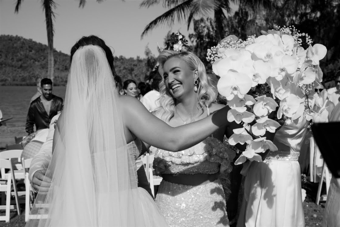 CONTRIBUTING VENDORS Photographer Florido Weddings Cinematographer Marc Media Event Planner & Stylist Til Death Events Florist Evoke Floral Design Stationery & Signage Heart of Juno Designs, Lily Maree Designs Ceremony & Reception Paradise Cove Villa Whitsundays Catering, Ice Cream Truck & Boozy Ice Blocks Aquava Boutique Catering Food Truck WildSpirit Floating Bar Whitsundays Cake East Coast Cake Co. Wedding favours Alibaba (bamboo fans) Hire Items & Lighting Azure Weddings and Events Whitsundays Sound Hire Total Entertainment Entertainment SJS Entertainment, Dylan Hammond via Total Entertainment Celebrant The Surfing Celebrant Rings Hogans Family Jewellers Fireworks Above Ground Zero Fireworks Neon Sign Neon Republic THE BRIDE Gown Ella Moda Robes Renée Loves Frances Shoes Loeffler Randall Accessories Christie Nicolaides Hair Haus of Jools, Whitsundays Wedding Hair Makeup Renée Jean Makeup Artist, Joanne Drumgold Makeup Bridesmaid dresses Isabella Longginou Bridesmaid shoes Shein Bridesmaid PJs Country Road Bridesmaid gifts Renée Loves Frances, Christie Nicolaides (earrings), A’el Estë by Ashlee Lauren (fragrance), Paper The Ninth (custom champagne glasses), SchwankeDS (personalised handkerchiefs) THE GROOM Suit & Shirt M.J. Bale Shoes Aquila Barber Whitsundays Wedding Hair Groomsmen suits M.J. Bale Groomsmen gifts NooshxNoo (personalised tumblers)