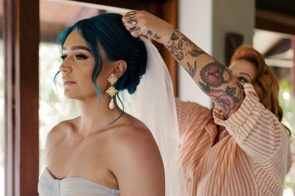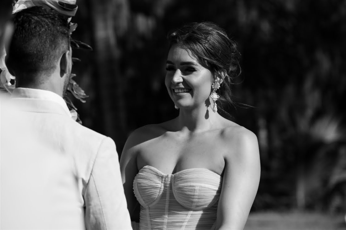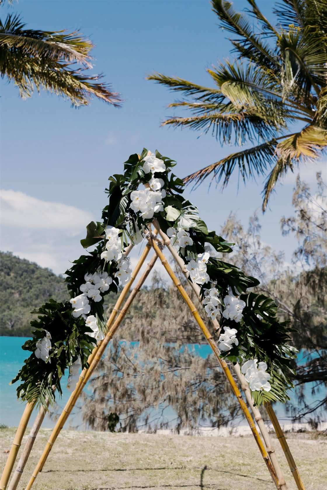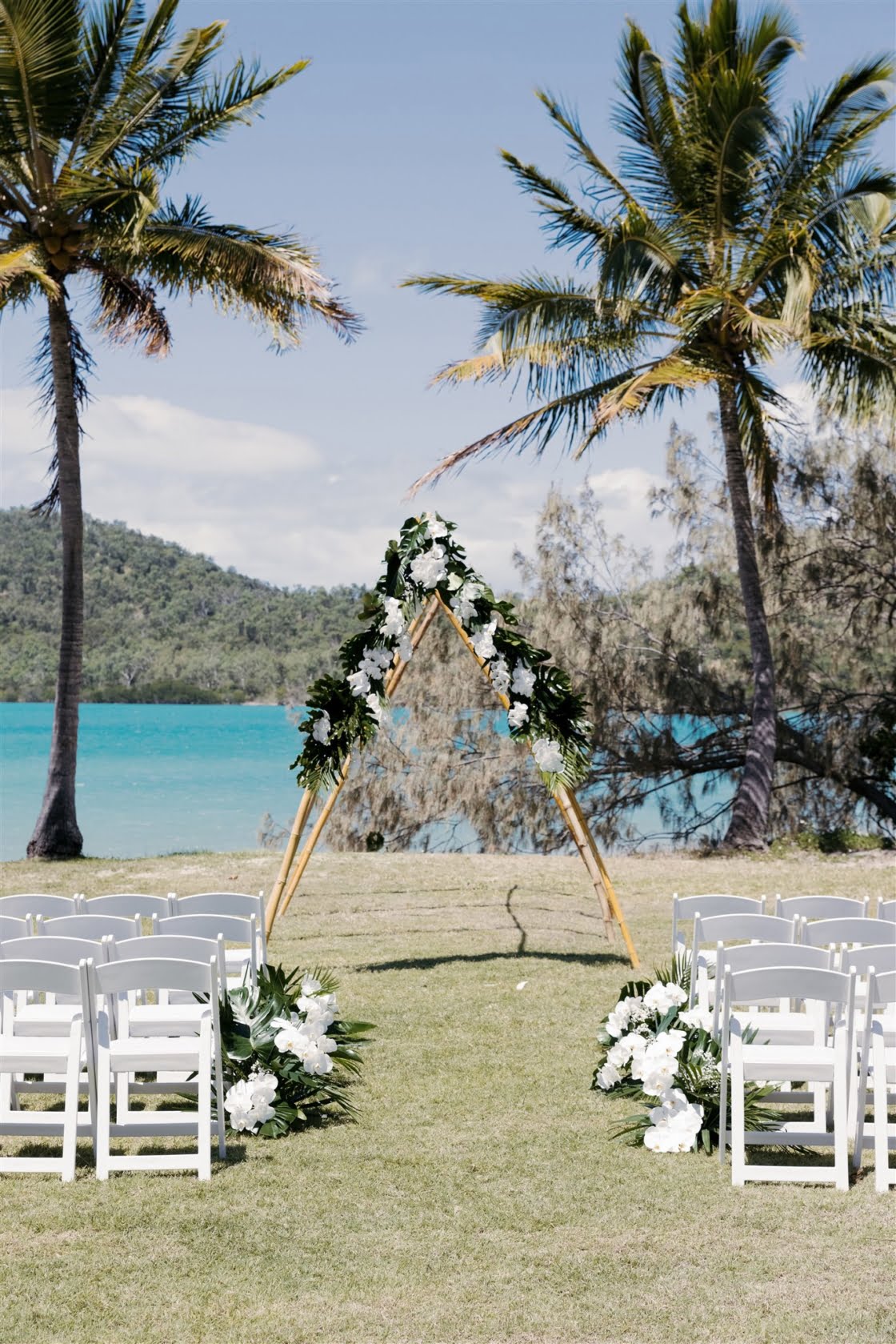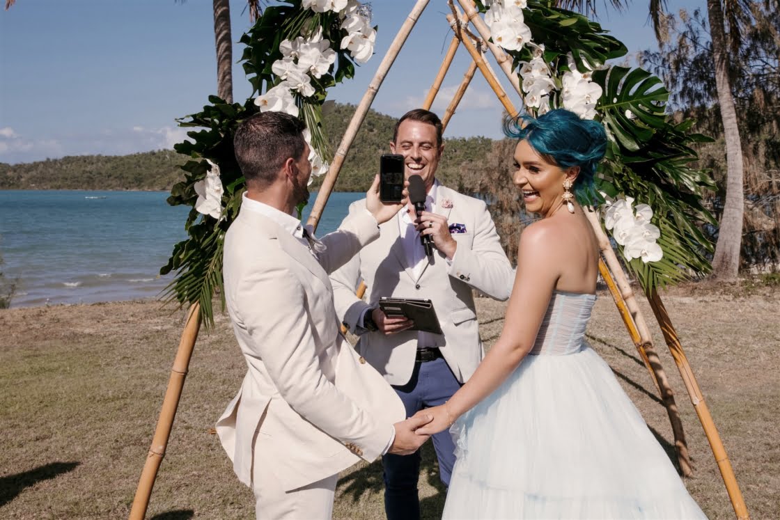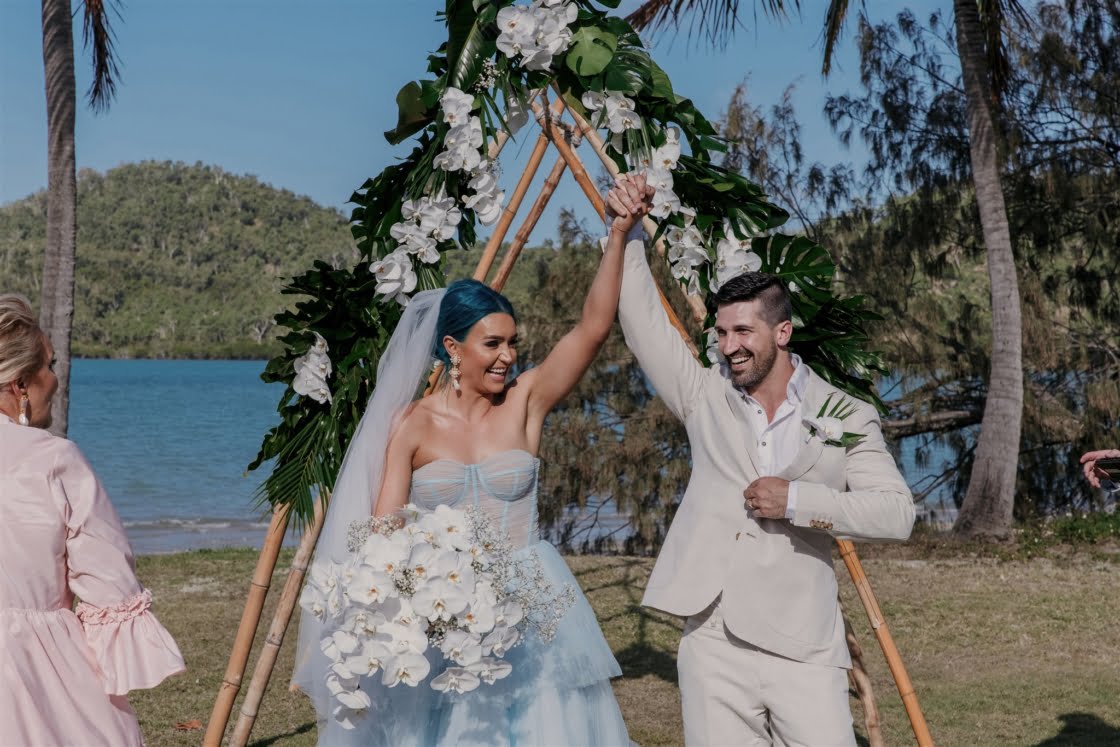 THE VENUE “Originally, we had always hoped to elope in Hawaii. It was always what we had spoken about pre COVID. Once we were engaged, we were in and out of lockdowns and knew our Hawaiian wedding dream was over. The good news was that we already knew the style of wedding we wanted – tropical-luxe. We began looking at venues in the Whitsundays and Lachie came across Paradise Cove Villa Whitsundays on Instagram. We fell in love immediately and booked flights to go and see the venue. It was the only venue we looked at. We just knew it was perfect for us.”