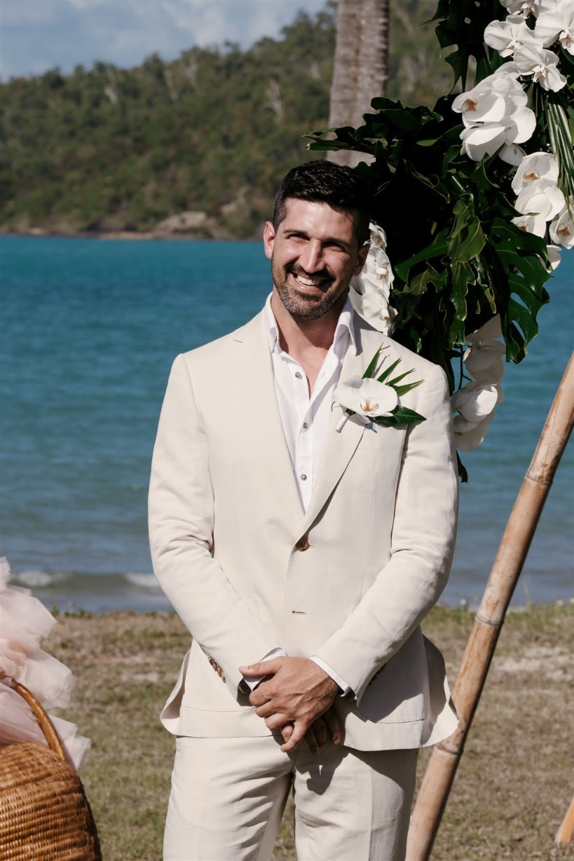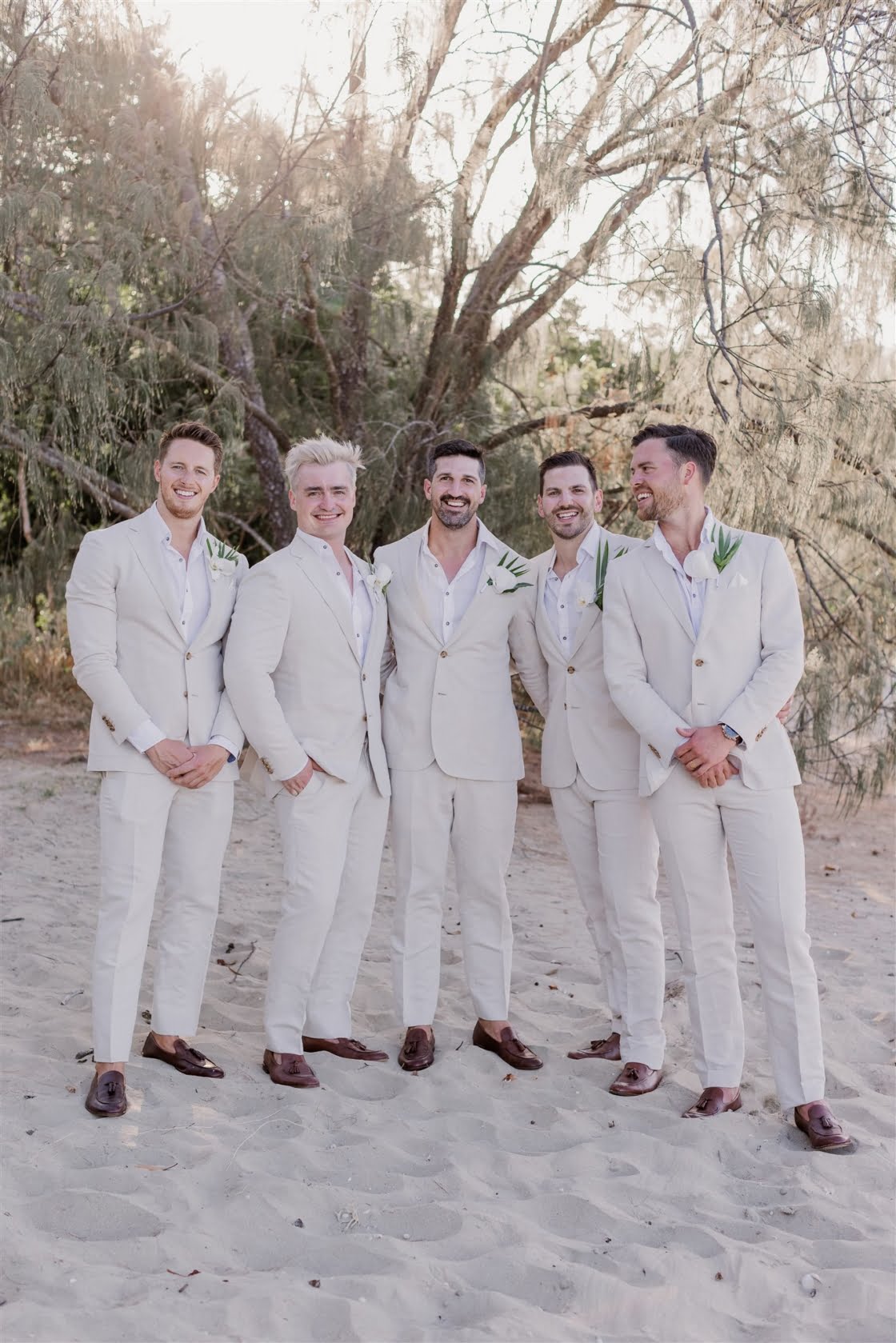 THE SUIT “Lachie chose a sand coloured suit from M.J. Bale. He wore a white linen shirt and brown loafer shoes – the ultimate cool and casual groom. It suited the wedding aesthetic perfectly.”