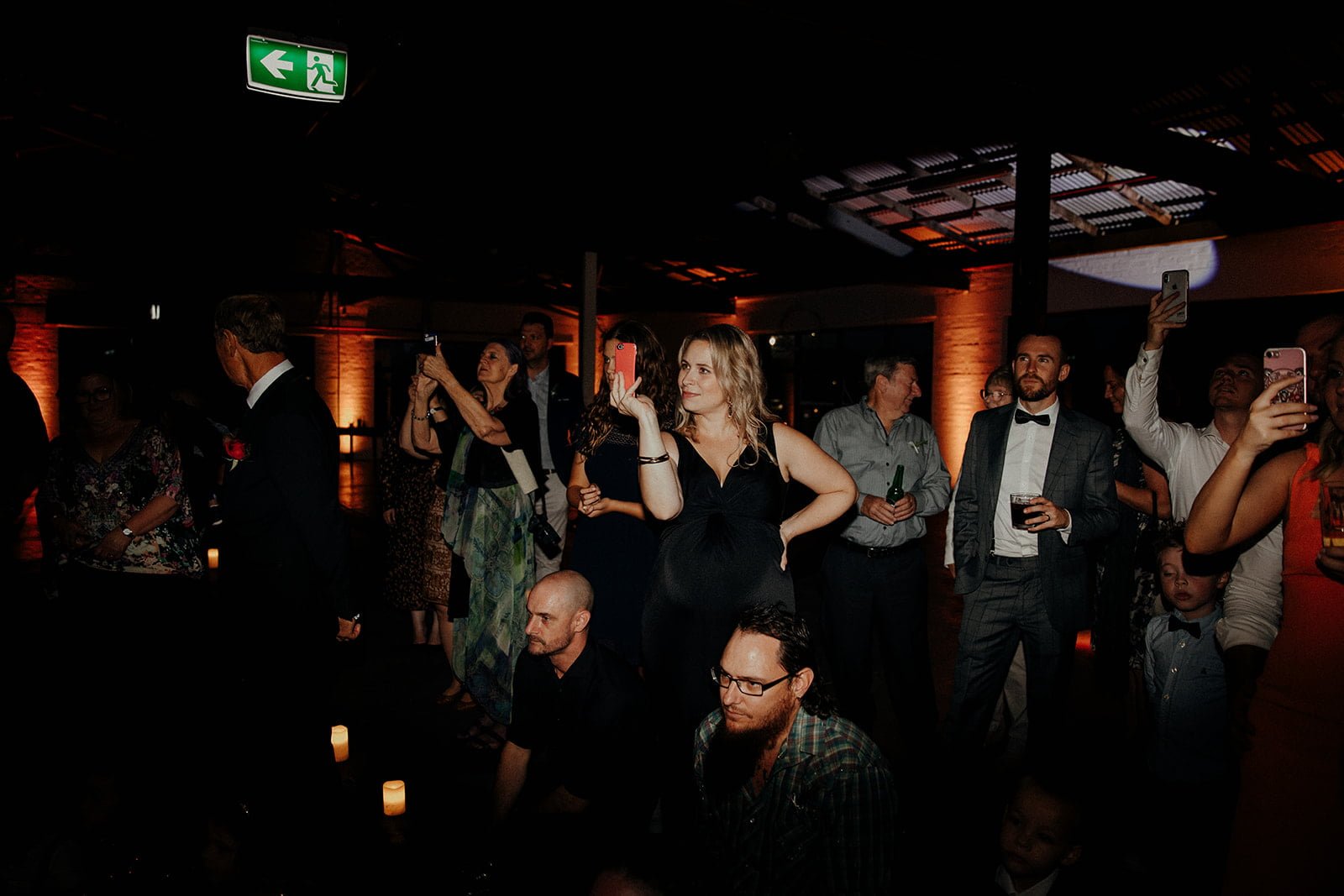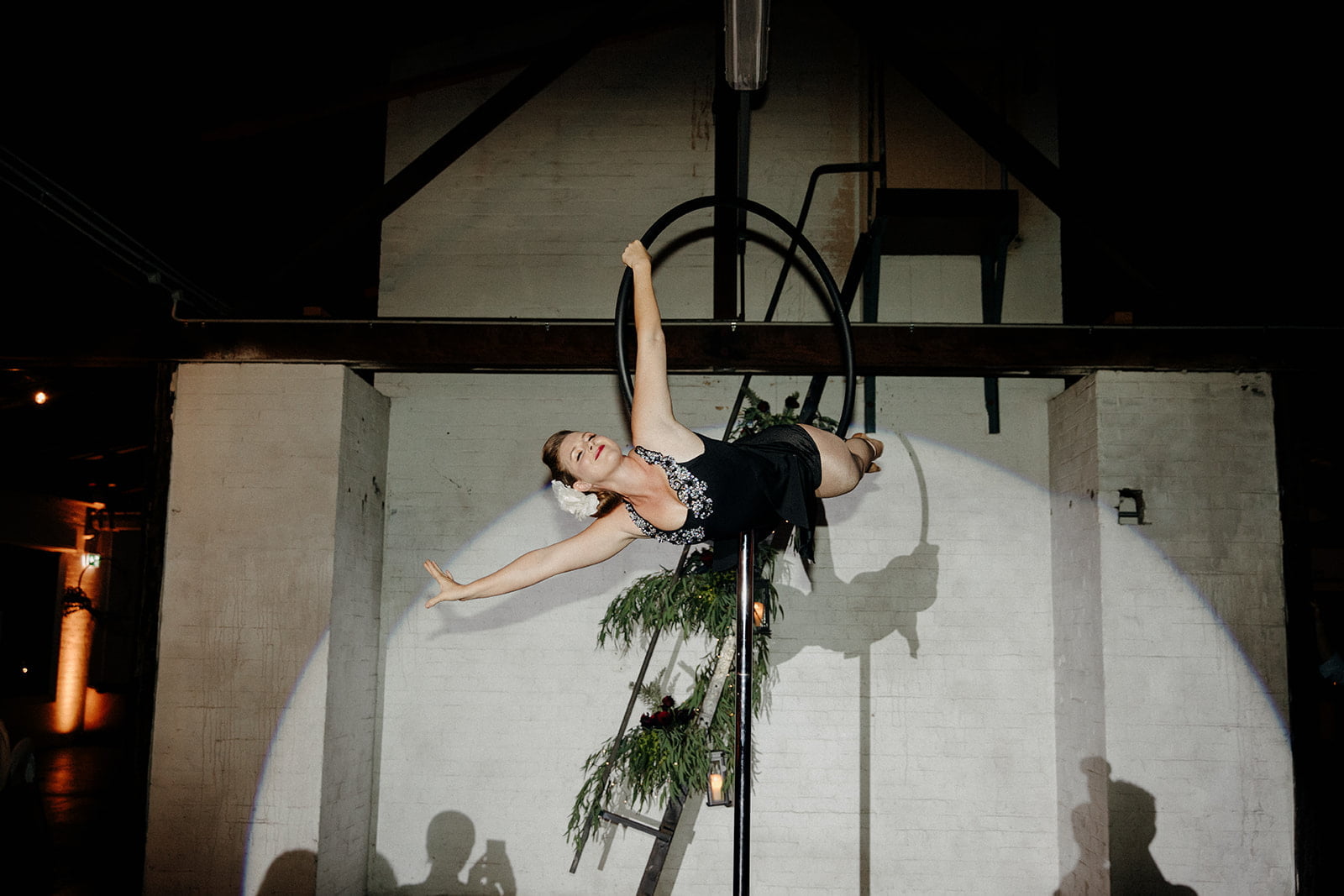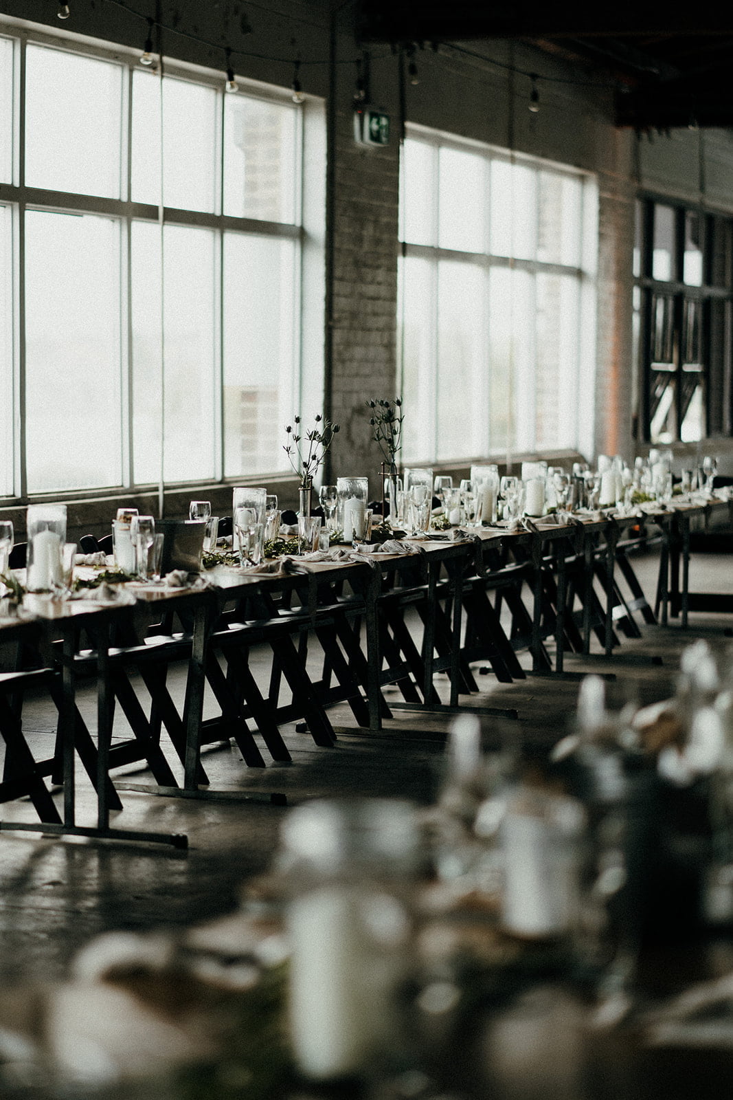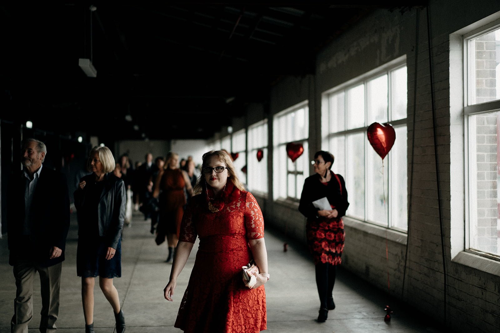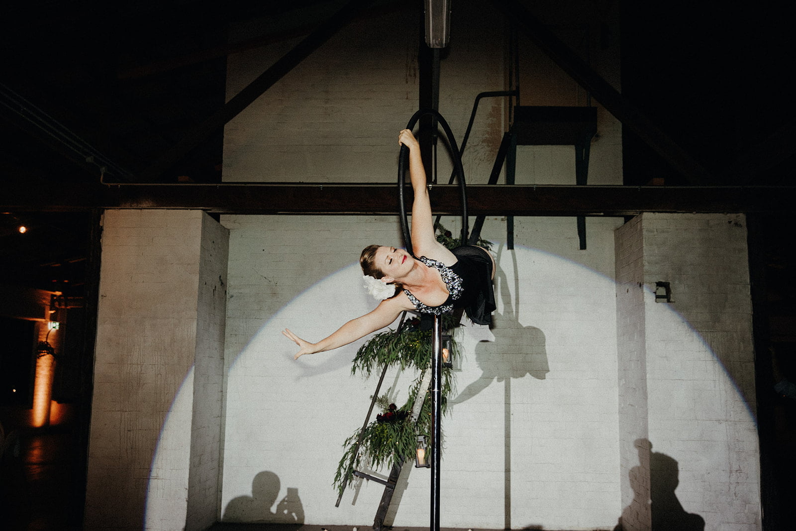We took one glance at this industrial-style wedding complete with blood-red roses and gothic candelabras and fell into a rather deep swoon. Upon emerging, we discovered that the lovely lasses behind it were equally divine. A fashion designer by day, Amy’s bridal look is nothing short of chic central. As for Mimes, she works in theatre so that dramatic suit is on point. The result? A heckin’ masterpiece of a day. One of our fave Sydney Photographers Miko, of Tones & Harmony, was on hand snapping pics. Scroll down for. more…