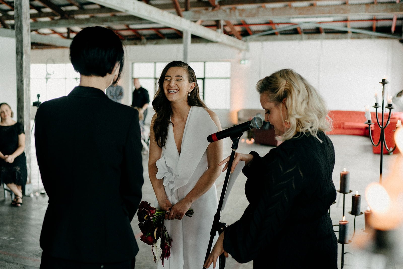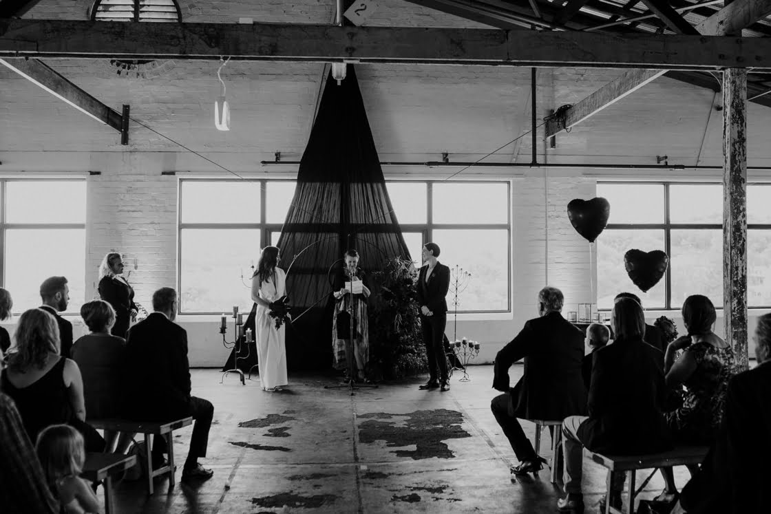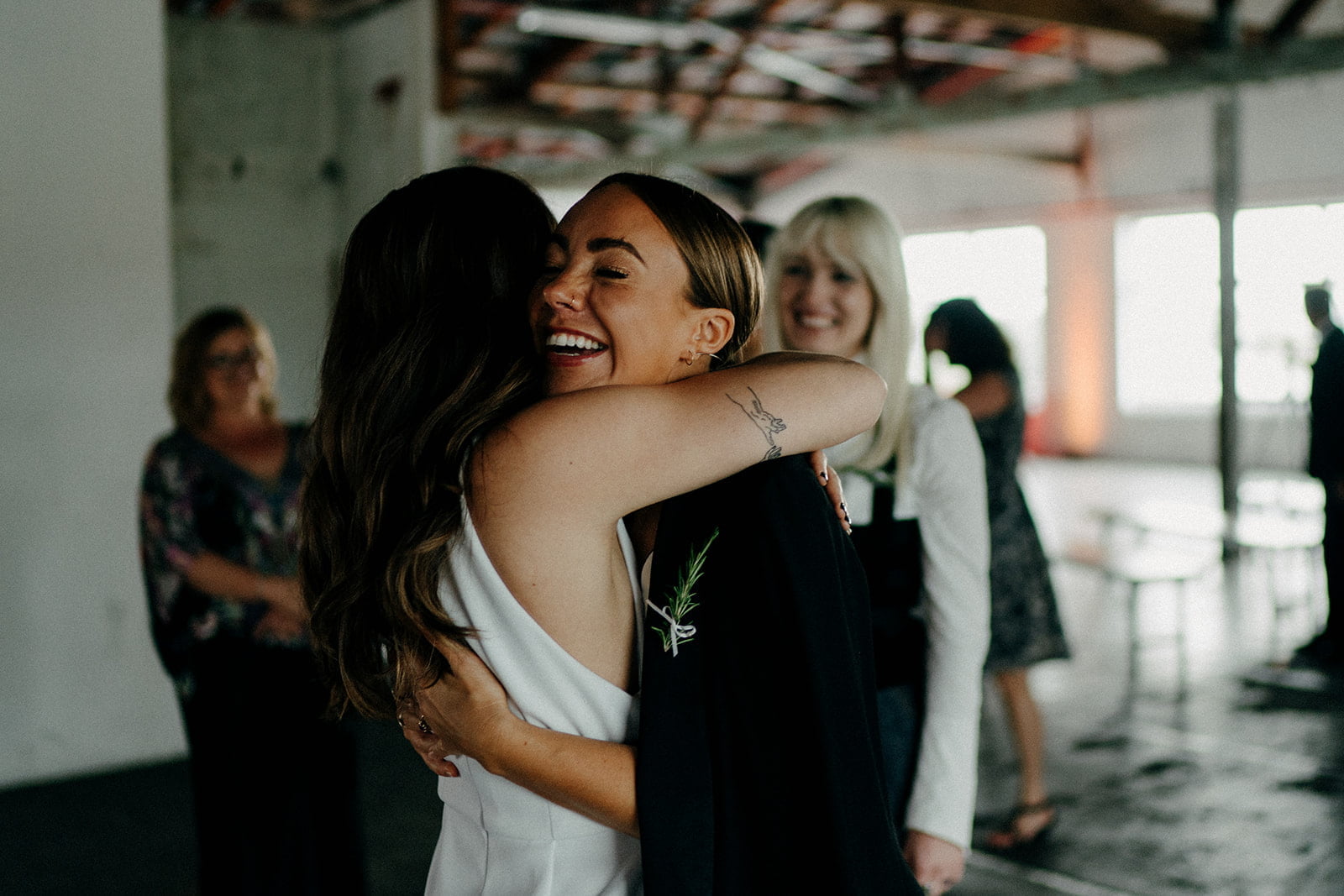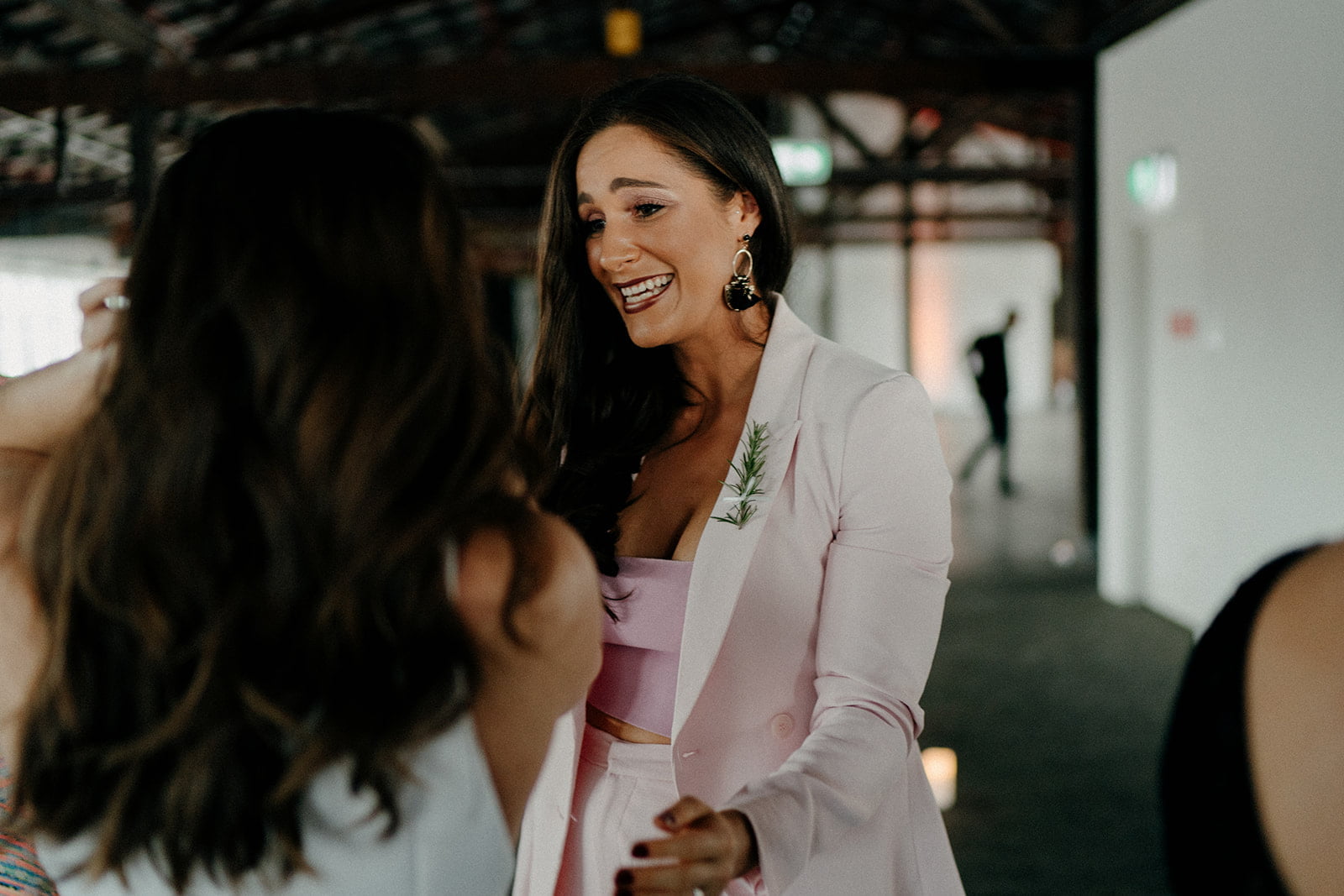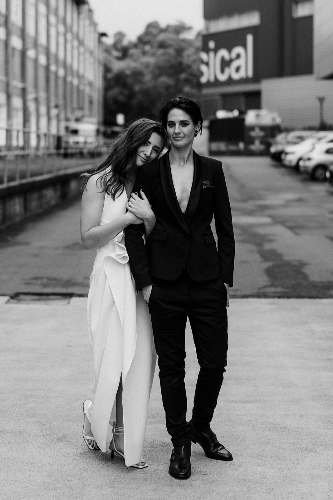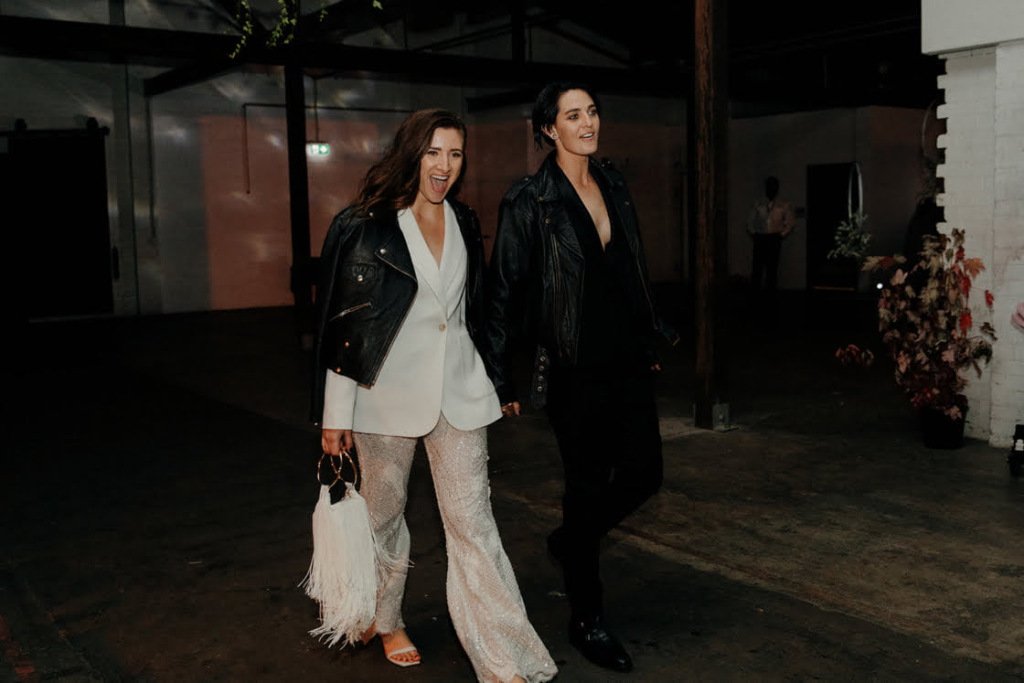CONTRIBUTING VENDORS Photographer Tones & Harmony Cinematographer Stephanie Maglicic Event Planner, Stylist, Florist & Stationery Juxtaposers Collective Venue Legs on the Wall (Studio One) Catering Red Ember Cake CakeVonDee Hire Items Jaques Party Hire Entertainment Beeswax and Bottlecaps Celebrant Cecily Hardy Rings Julia De Ville Grazing Table The Gift Of Graze Styling Supplies Reverse Garbage THE BRIDE (Amy) Dress Homemade Reception Outfit Homemade (pants) & Saba (Blazer) Leather Jacket Vintage Shoes Senso Handbag Farrah + Sloane Earrings Brie Leon Hair & Makeup Veronika Moreira THE BRIDE (Mimes) Suit Zara Leather Jacket Vintage Shoes Jack London Hair & Makeup Haus of Hopwood