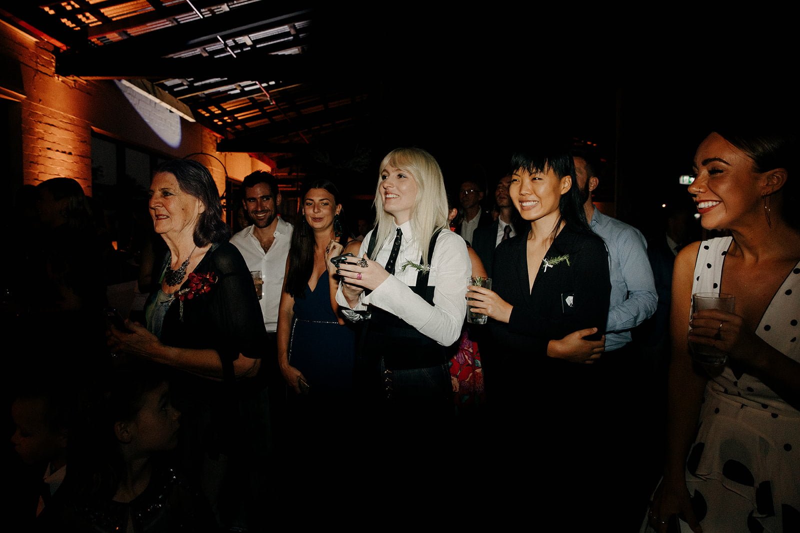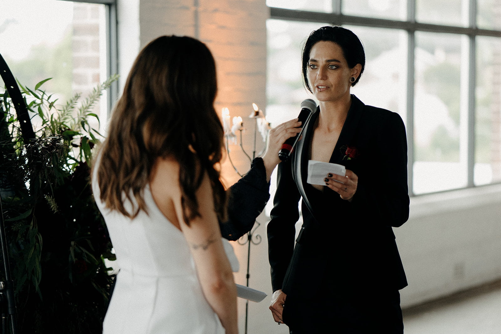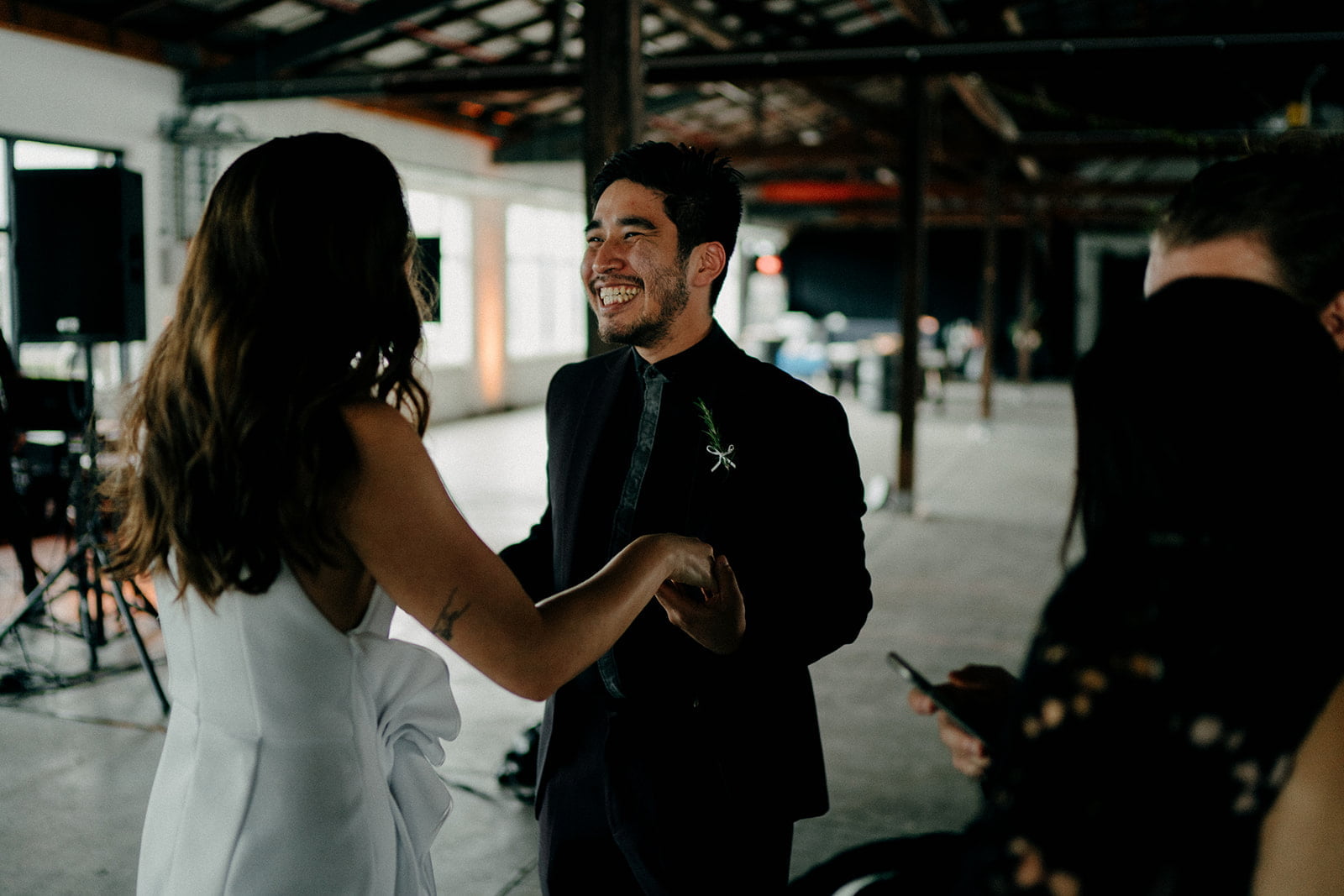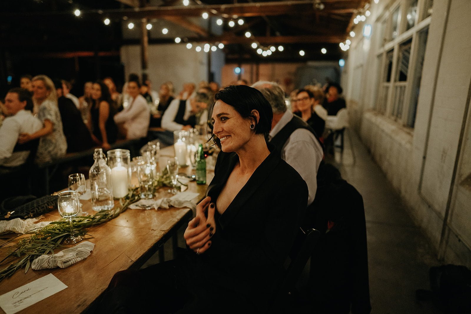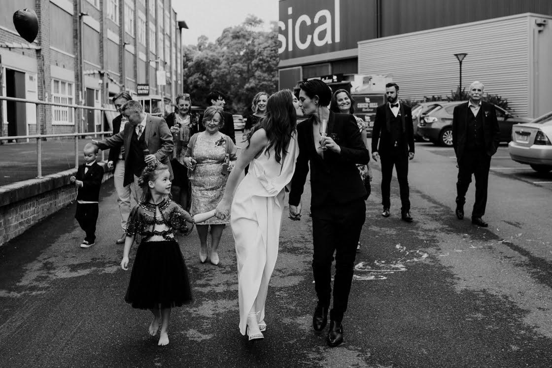 CONTRIBUTING VENDORS Photographer Tones & Harmony Cinematographer Stephanie Maglicic Event Planner, Stylist, Florist & Stationery Juxtaposers Collective Venue Legs on the Wall (Studio One) Catering Red Ember Cake CakeVonDee Hire Items Jaques Party Hire Entertainment Beeswax and Bottlecaps Celebrant Cecily Hardy Rings Julia De Ville Grazing Table The Gift Of Graze Styling Supplies Reverse Garbage THE BRIDE (Amy) Dress Homemade Reception Outfit Homemade (pants) & Saba (Blazer) Leather Jacket Vintage Shoes Senso Handbag Farrah + Sloane Earrings Brie Leon Hair & Makeup Veronika Moreira THE BRIDE (Mimes) Suit Zara Leather Jacket Vintage Shoes Jack London Hair & Makeup Haus of Hopwood