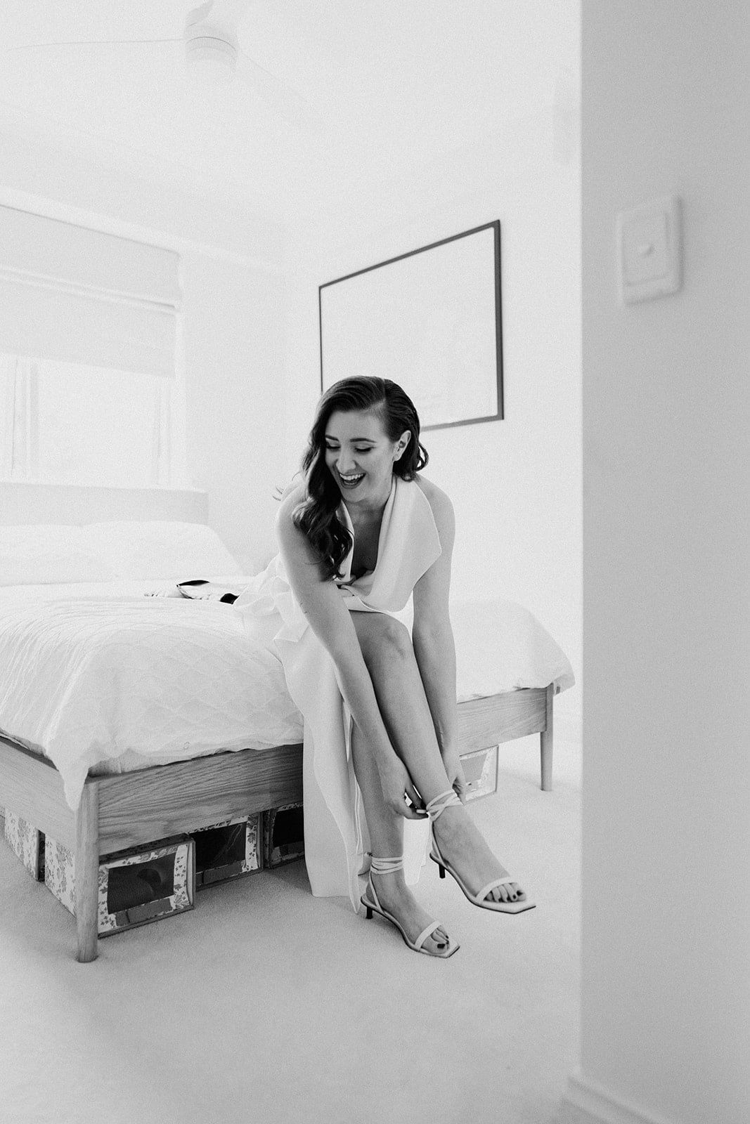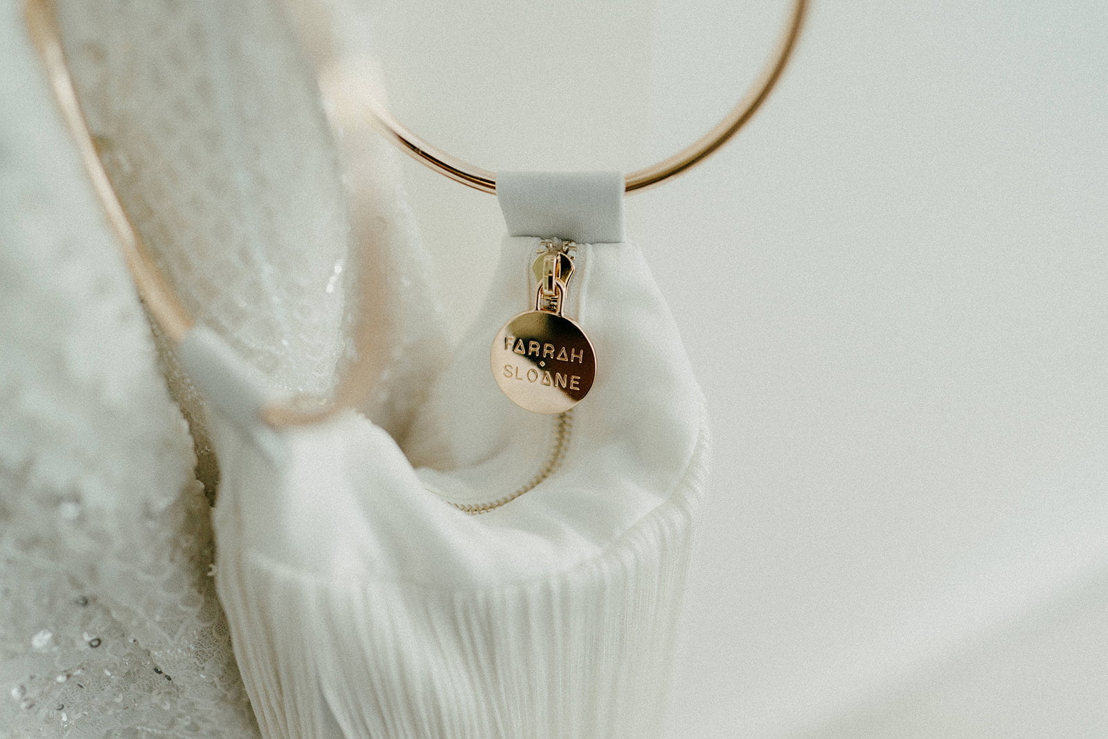 THE DRESS “I [Amy] felt a lot of pressure on what I would wear. It was the first thing everyone was asking me because I have always loved fashion. I couldn’t get past this underlying feeling that I may regret not wearing the ‘white’ dress, even though I was leaning more towards dressing as a modern bride. I wanted my outfit to be a reflection of fashion now. I look back at my grandma’s and mum’s wedding photos and you can pinpoint that time from fashion. I wanted an outfit that would do the same for my wedding photos in many years to come. These hesitations made me put off deciding what to wear till quite close to the wedding. I was so fortunate I didn’t need to book far in advance because of my career and my mum also working for years in bridal, we made my dress together. I designed a structured modern dress with a low plunge neckline and hand draped waist details that flowed into the skirt that would open when I walked down the long aisle.”
