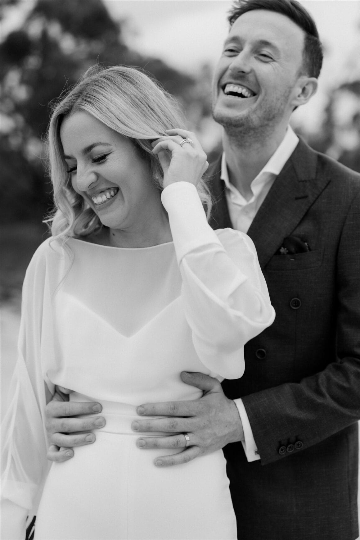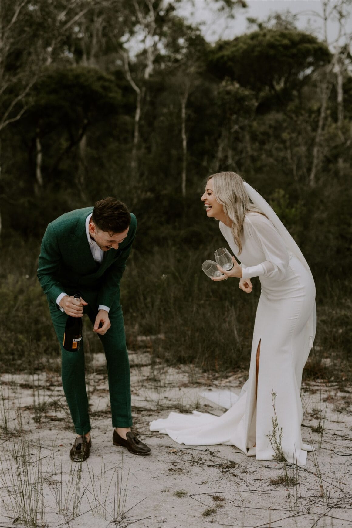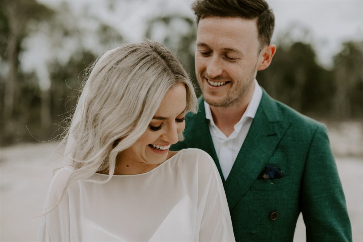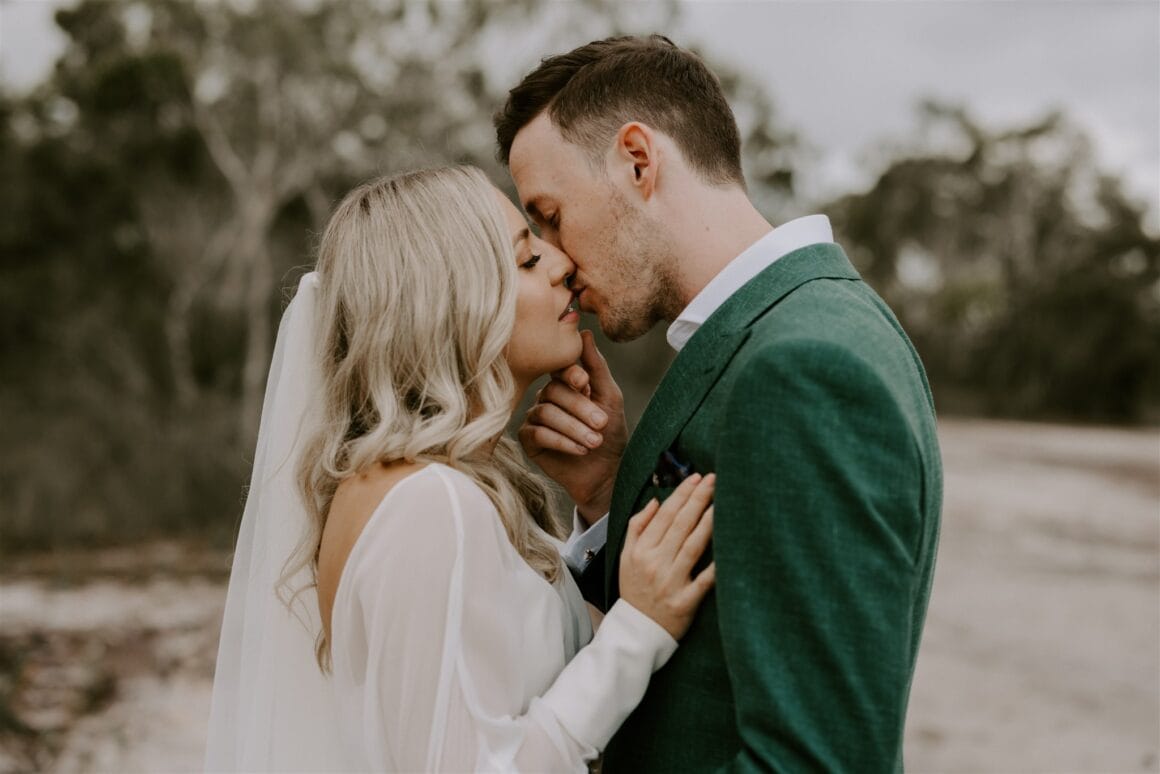 We’ve gotta say, these healthcare heroes were a sight for sore eyes. Despite it being the first she’d tried on, Amy instantly knew her Karen Willis Holmes frock was the one, and Sean sported the most epic green custom ‘fit styled with an M.J. Bale button down. It was elegant, classy, and relaxed, and the lovebirds told us that getting ready alongside family was a highlight. As was stealing some time alone while photographer Janneke Storm did her thing. “Janneke does a really good job of making you feel comfortable and natural in front of the camera.”