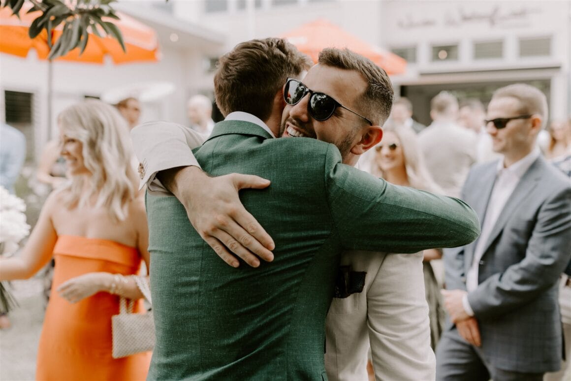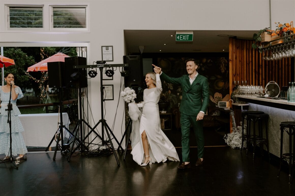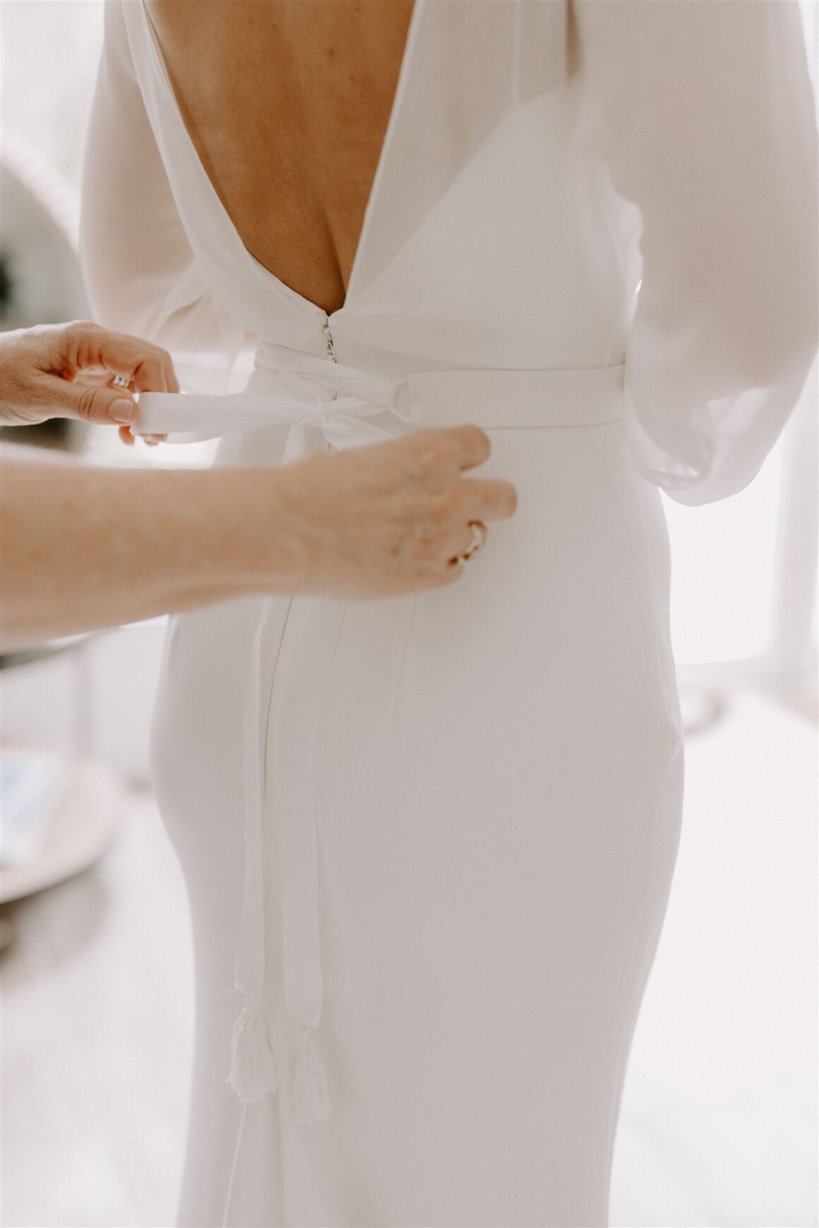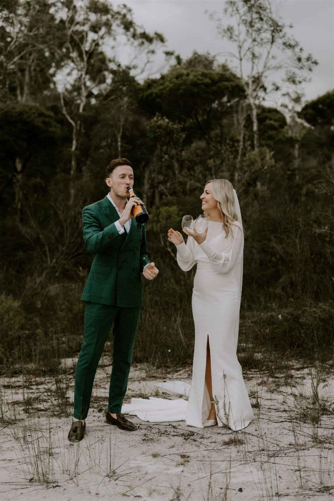 We’ve gotta say, these healthcare heroes were a sight for sore eyes. Despite it being the first she’d tried on, Amy instantly knew her Karen Willis Holmes frock was the one, and Sean sported the most epic green custom ‘fit styled with an M.J. Bale button down. It was elegant, classy, and relaxed, and the lovebirds told us that getting ready alongside family was a highlight. As was stealing some time alone while photographer Janneke Storm did her thing. “Janneke does a really good job of making you feel comfortable and natural in front of the camera.”