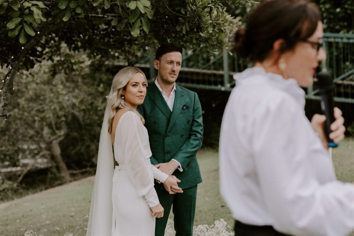 CONTRIBUTING VENDORS Photographer Janneke Storm Florist Bud Naked Stationery Paper Avenue Shop via Etsy Ceremony Venue Noosa Council Reception Venue & Catering Noosa Waterfront Restaurant Cake Maker Zoë Clarke Cakes Hire Items Willow Wood Hire – Rebekah Wood Sound & Lighting Hire Mudcrab Music & Events Signage Elly Gibson via Facebook Marketplace Entertainment Elevation Band Celebrant Candice Wilson – Married by Candice Rings Claude & Me Jewellery Transport Private Airport Transfers THE BRIDE Bridal Gown Designer Karen Willis Holmes Shoes Be Mine Hair & Makeup Amy Maher (Bride) Fragrance/Perfume Chanel THE GROOM Suit & Pants Urbbana Shirt M.J. Bale Shoes Aquila Watch Armani Barber / Grooming Barber Street