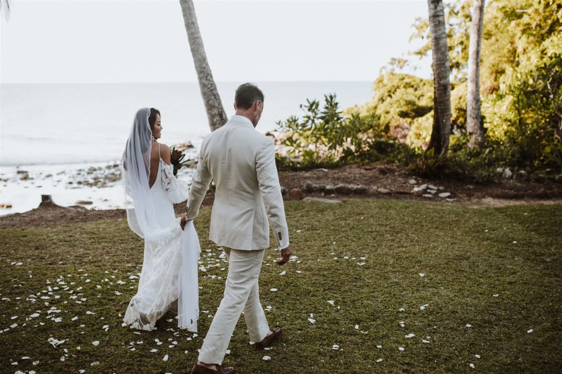 CONTRIBUTING VENDORS Photographer Benedict Sutton Cinematographer Joel Tronoff Event Planner, Stylist, Florist & Lighting Two Tribes Style via Sugar Wharf Weddings Stationery The Bride (Invites, Menus & Favour Tags) Printer Vistaprint Ceremony St Mary’s By The Sea Reception Sugar Wharf Port Douglas Catering NuNu Cake Dukes Doughnuts Wedding Favours Likha (Personalised Luggage Tags) Sound DJ Bart’s Electric Dreams Entertainment Entertainment Drewboy Music (Ceremony & Cocktail Hour) & DJ Bart’s Electric Dreams Entertainment Celebrant Deacon Mark Cavicchiolo Rings Natalie Marie THE BRIDE Bridal Gown & Veil Anna Maurer Couture (Ceremony), Magda Butrym via Net-A-Porter (Reception) Robes & Shorts Deiji Studios Shoes Vintage (Ceremony) & 2 Baia Vista (Reception) Accessories Enesea Jewellery (Earrings) Hair & Makeup Rachael Gregory THE GROOM Suit & Shirt M.J. Bale Cufflinks Simon Carter via David Jones Shoes Staple Superior Watch Bow & Stern
