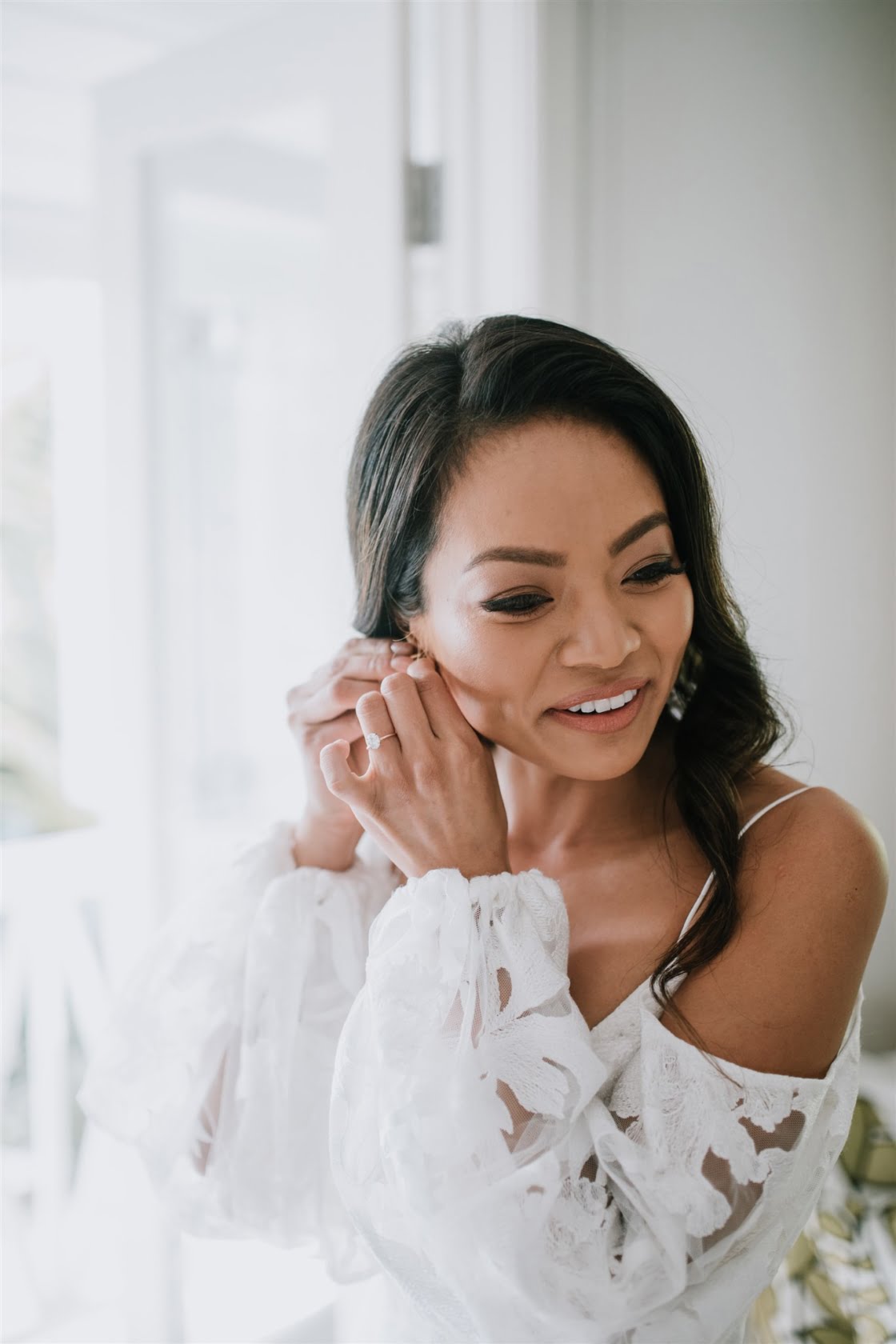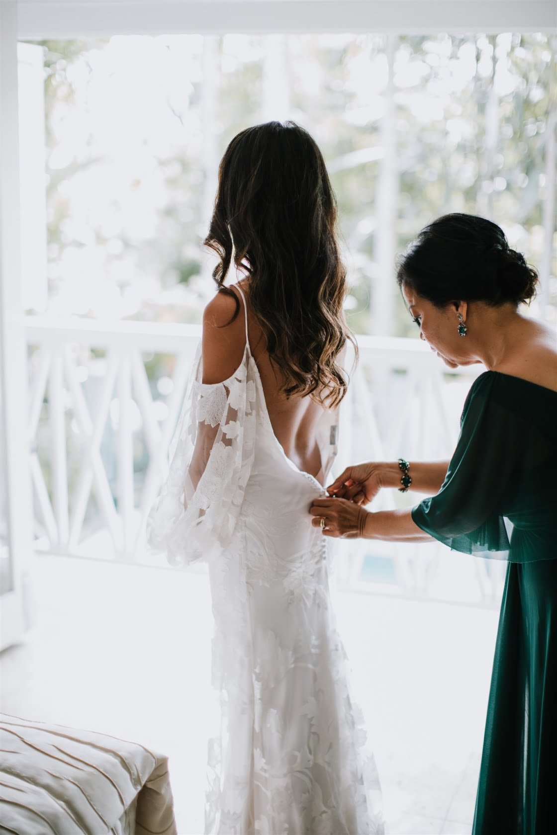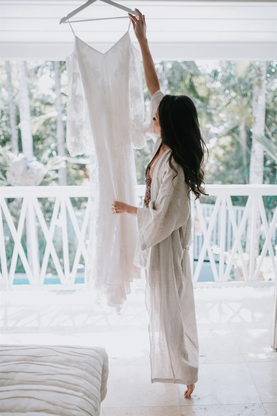 THE DRESSAs someone who can barely pick an outfit on time for any occasion, I left it all a bit late but was lucky that the process turned out to be more straightforward than I expected! I stumbled across an image on Pinterest that just resonated with me. It was elegant and a little bit boho with a low back and blouson sleeves, which was what I always wanted. A friend helped me source the right Sydney contacts so that I was able to get a modified version custom-made for me in the nick of time by the talented Anna of Anna Maurer Couture. Midway through the reception I changed into a Magda Butrym ivory silk slip dress I found last-minute on Net-A-Porter a few weeks before the wedding.”