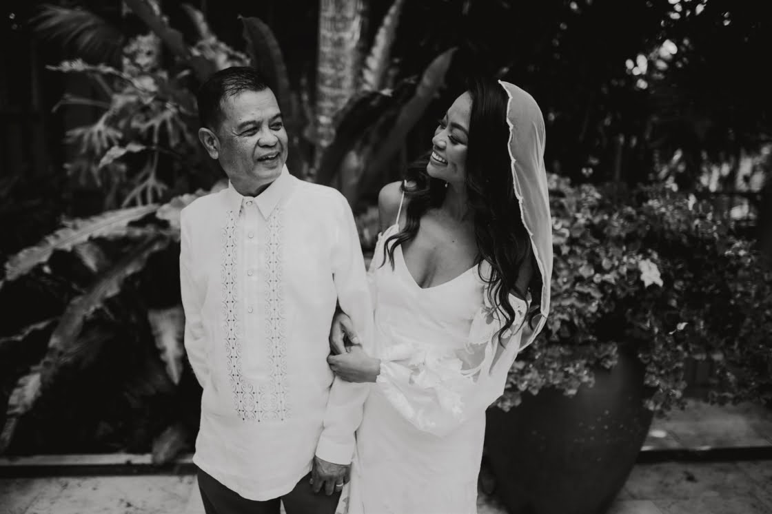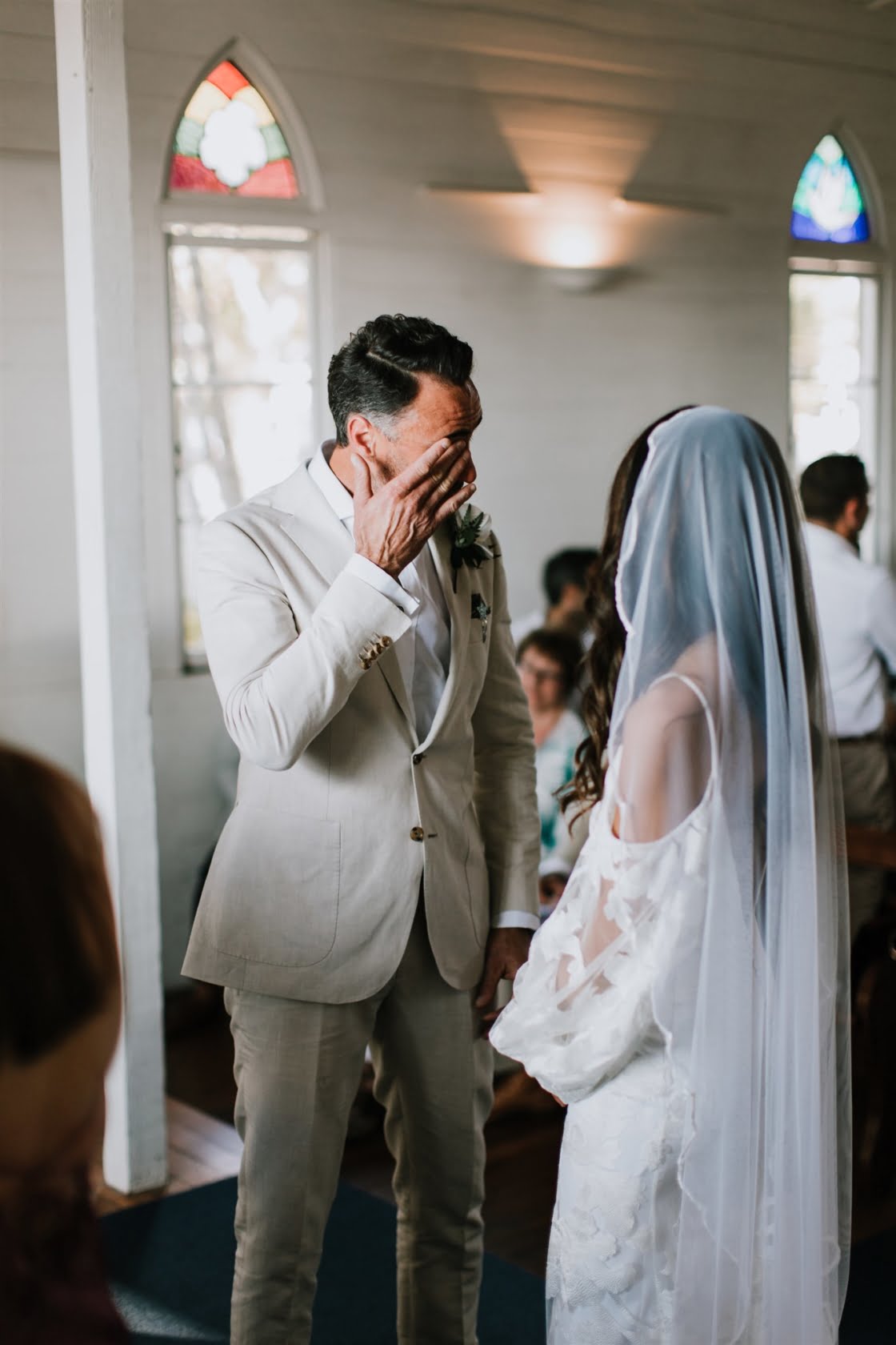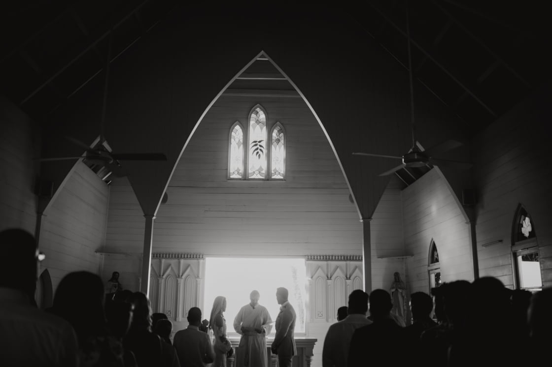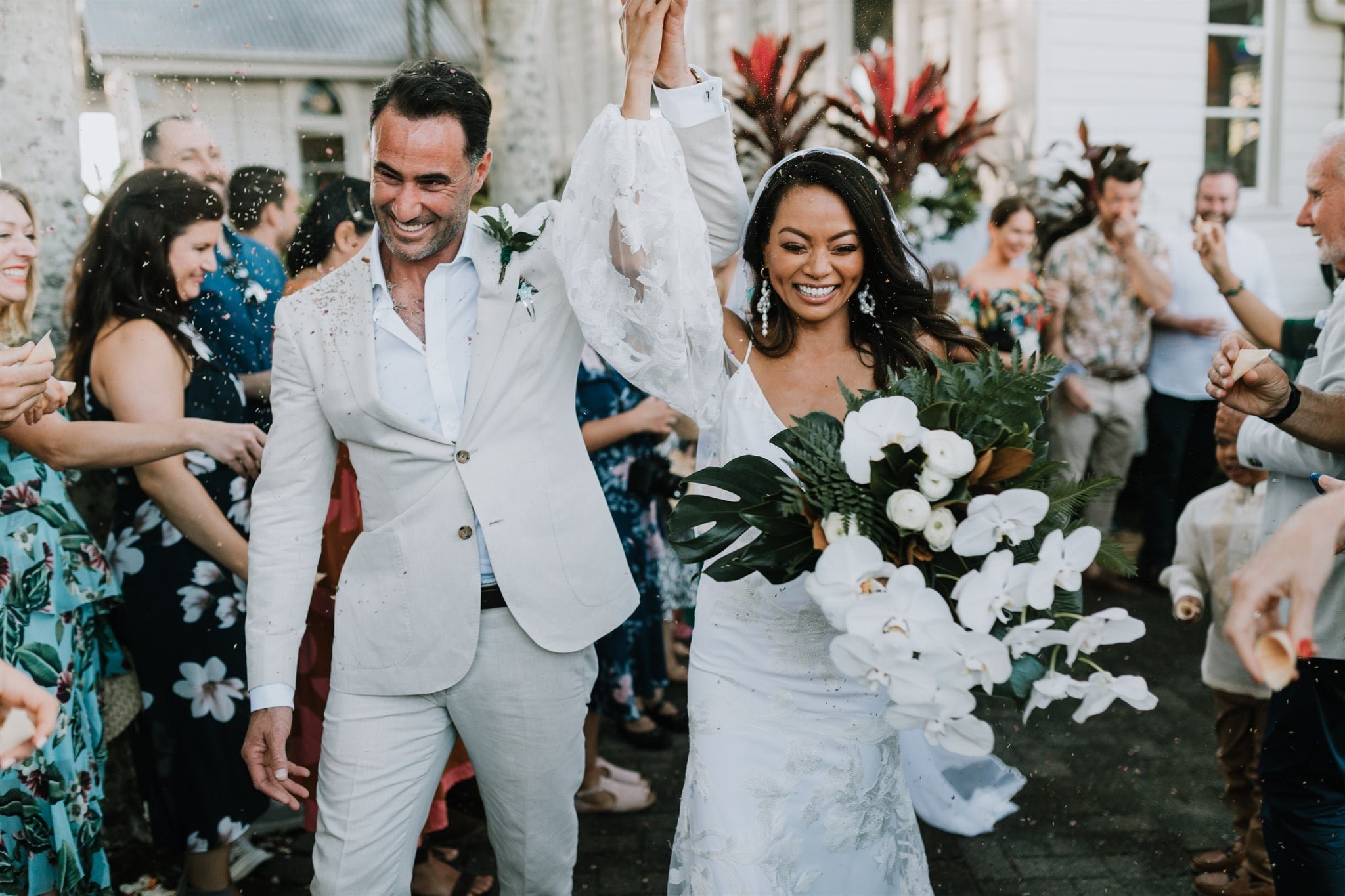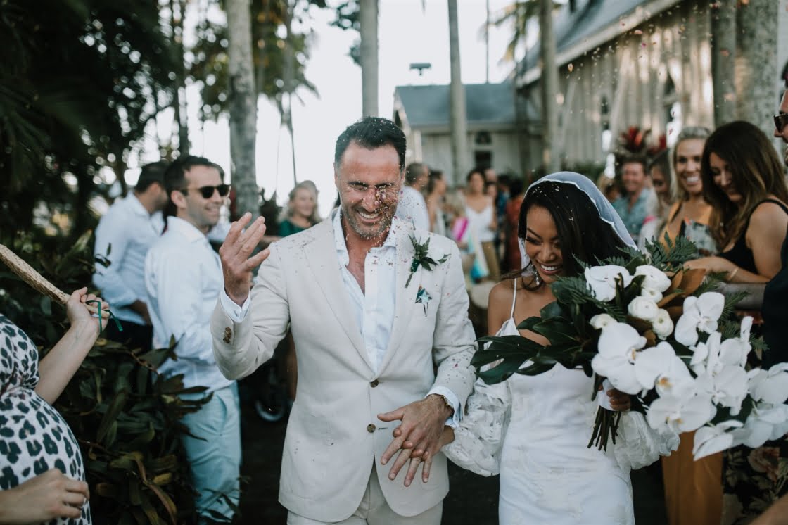 THE INSPOPort Douglas as a destination is the embodiment of tropical, laid back luxe and we just wanted to host an intimate gathering that was also one fun party with our nearest and dearest. Delicious food and a cranking dance floor were priorities along with a relaxed vibe. For our ceremony we kept things very simple with live acoustic guitar, white linen ribbons on the pews in the little white chapel underneath the palm trees. For the Sugar Wharf Port Douglas reception, we were lucky to have our planner Deb Kinsella [of Two Tribes Style via Sugar Wharf Weddings] who took our basic brief and delivered a perfect Bahamas-style dreamland of natural cane, fresh whites and lush green foliage against the backdrop of the Coral Sea.”