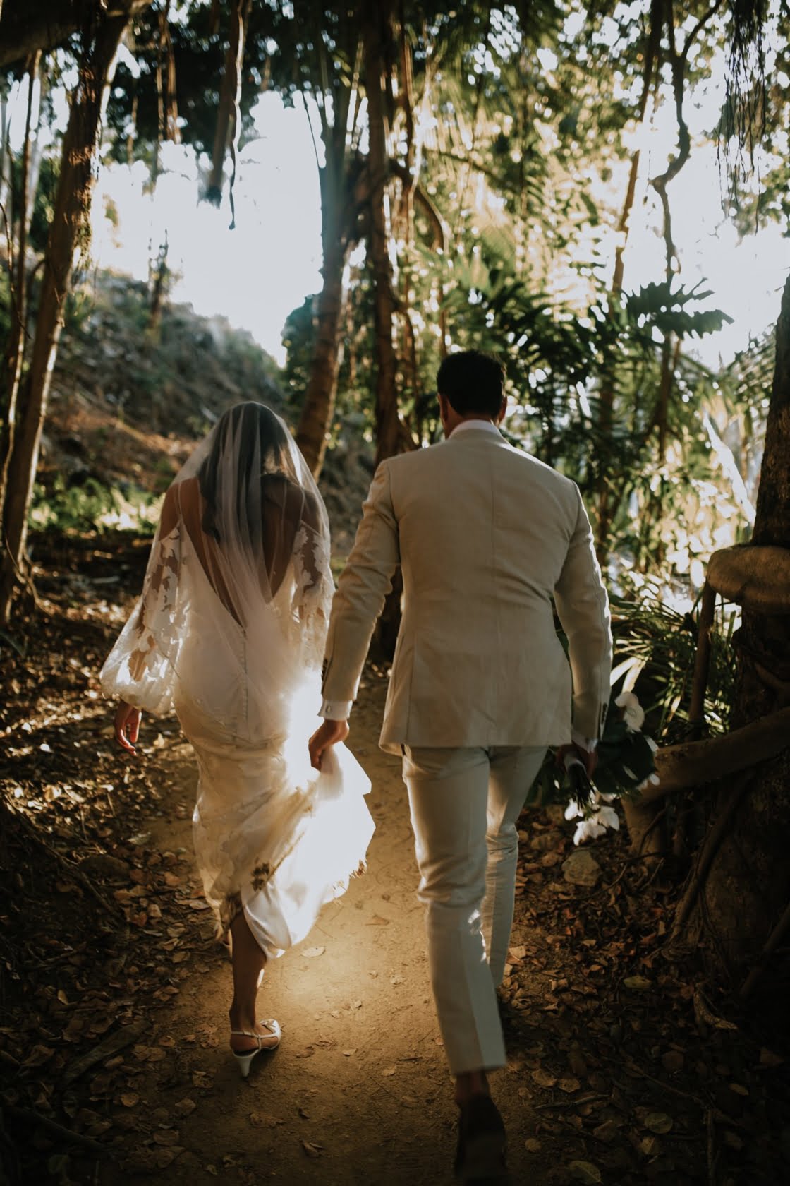 CONTRIBUTING VENDORS Photographer Benedict Sutton Cinematographer Joel Tronoff Event Planner, Stylist, Florist & Lighting Two Tribes Style via Sugar Wharf Weddings Stationery The Bride (Invites, Menus & Favour Tags) Printer Vistaprint Ceremony St Mary’s By The Sea Reception Sugar Wharf Port Douglas Catering NuNu Cake Dukes Doughnuts Wedding Favours Likha (Personalised Luggage Tags) Sound DJ Bart’s Electric Dreams Entertainment Entertainment Drewboy Music (Ceremony & Cocktail Hour) & DJ Bart’s Electric Dreams Entertainment Celebrant Deacon Mark Cavicchiolo Rings Natalie Marie THE BRIDE Bridal Gown & Veil Anna Maurer Couture (Ceremony), Magda Butrym via Net-A-Porter (Reception) Robes & Shorts Deiji Studios Shoes Vintage (Ceremony) & 2 Baia Vista (Reception) Accessories Enesea Jewellery (Earrings) Hair & Makeup Rachael Gregory THE GROOM Suit & Shirt M.J. Bale Cufflinks Simon Carter via David Jones Shoes Staple Superior Watch Bow & Stern