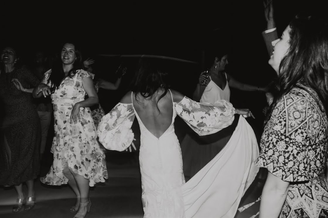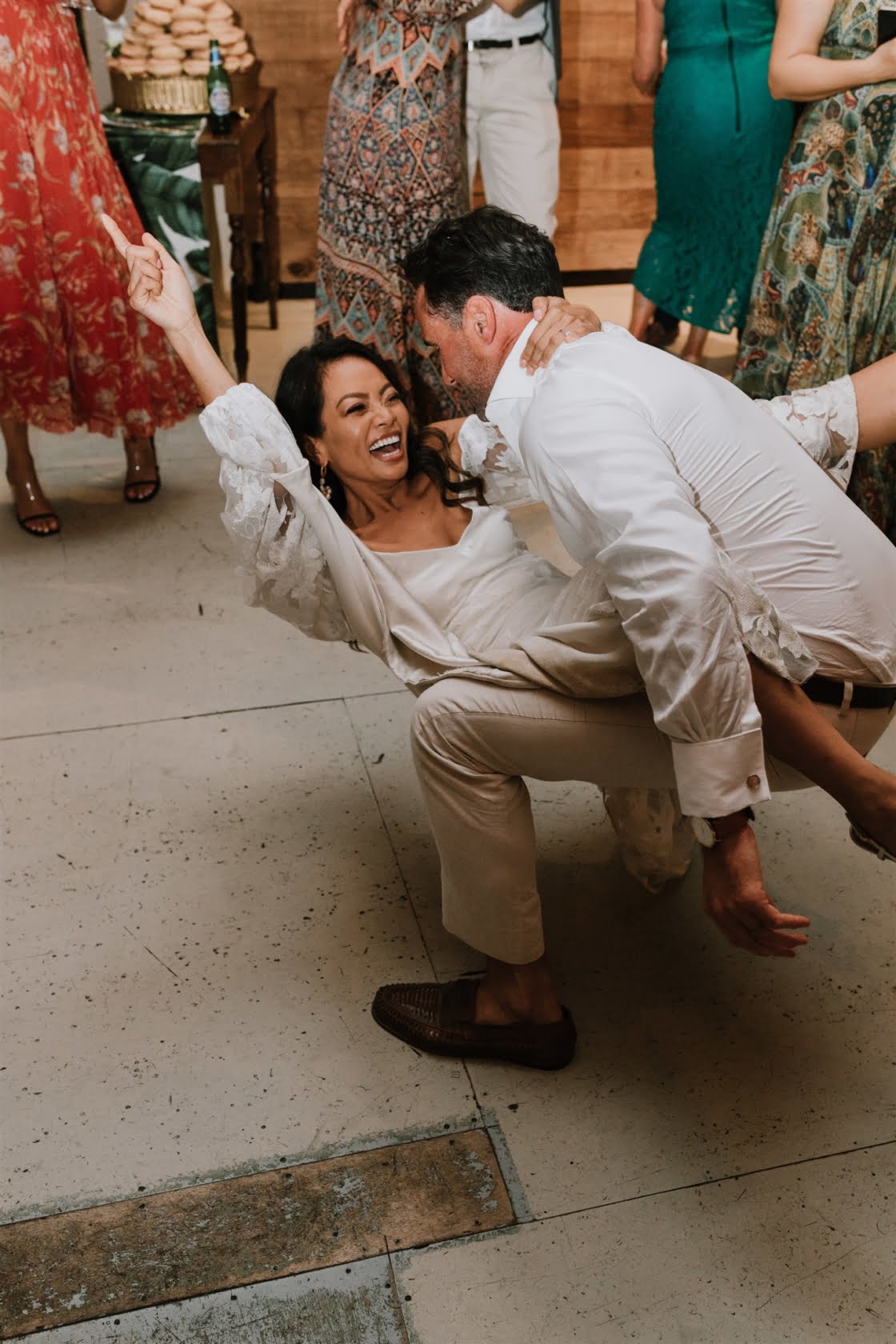 LITTLE LOL On the morning of the wedding, Andy and I decided to spontaneously take a shot at practising some moves for our first dance (our one and only rehearsal). I decided to pop on my vintage bridal shoes for the activity, but one very enthusiastic twirl somehow managed to crack the bottom of one heel. It was swiftly repaired by my very innovative friend Bri, who dashed down to Coles to seek out an array of fast-acting superglues (all within two hours of the ceremony).”