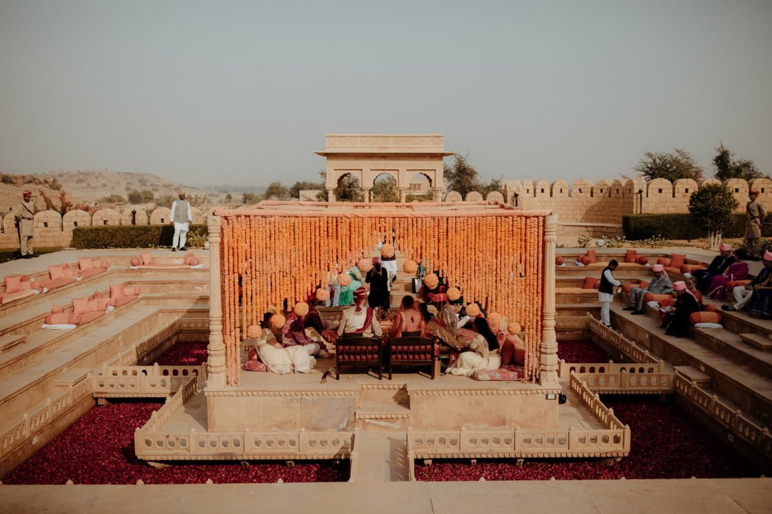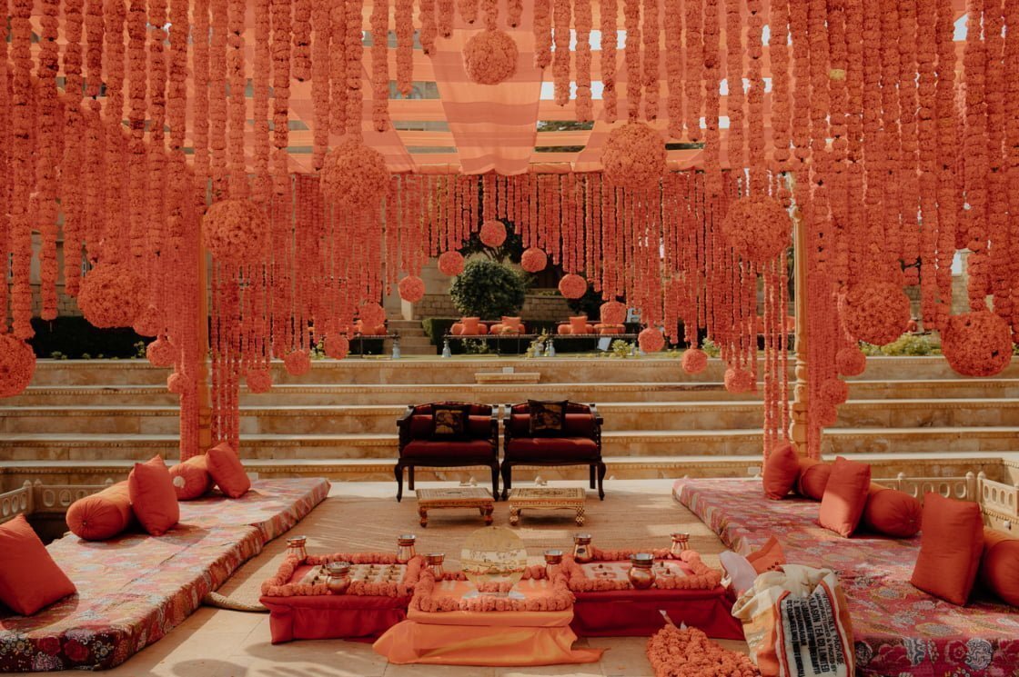 FAVOURITE DETAILS “The flowers! Seriously in the moat and hanging in garlands on our final day was like nothing I had seen before or could have ever imagined. Suryagarh literally have hectares of their own magenta rose and orange marigold gardens that they source their fresh flowers from every day. Oh, and if I can have just one more, it would be the food. Every meal prepared by Suryagarh was unique and memorable. All of our guests are all still talking about it almost a year later.”