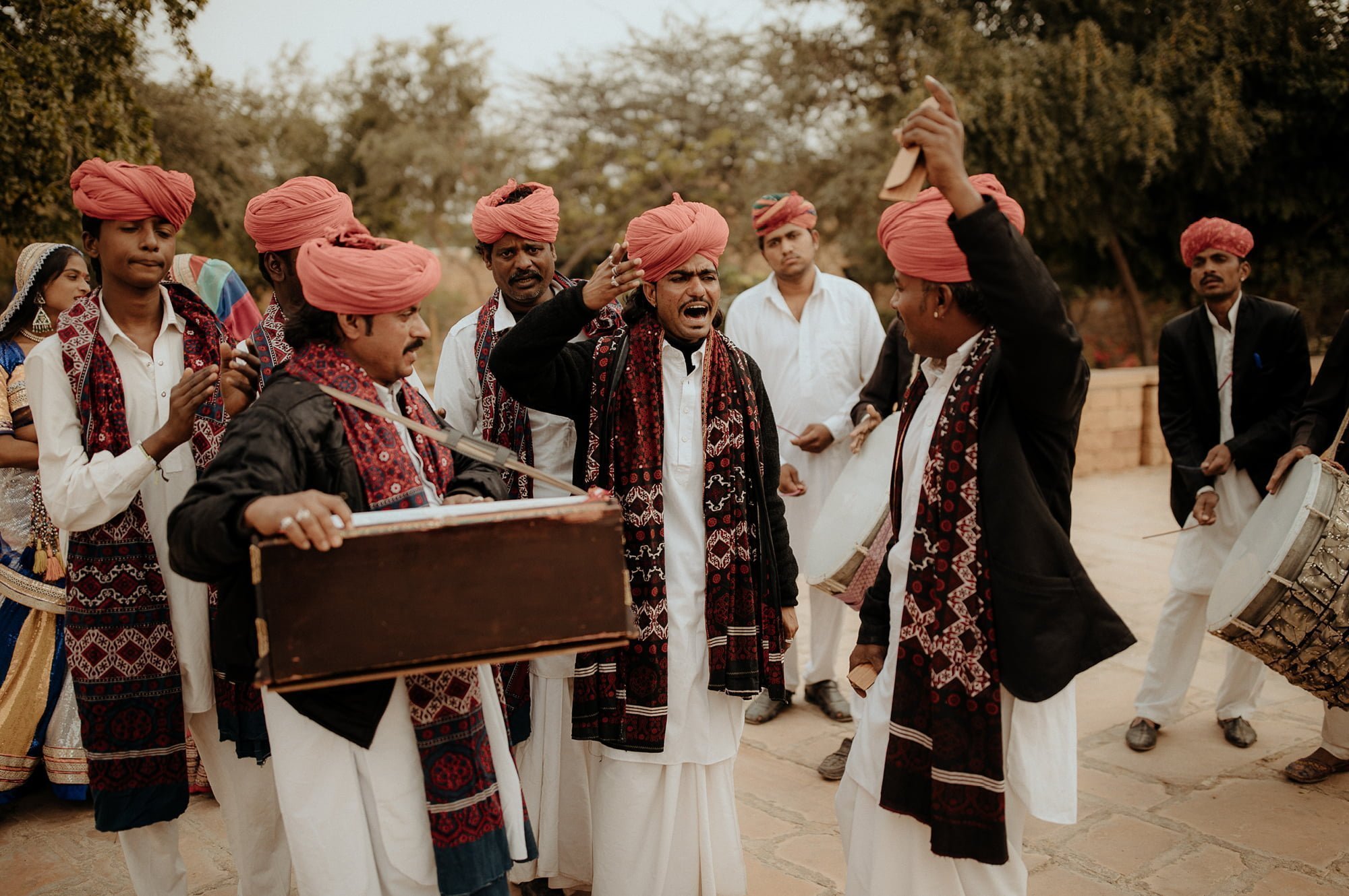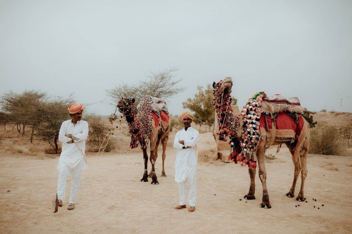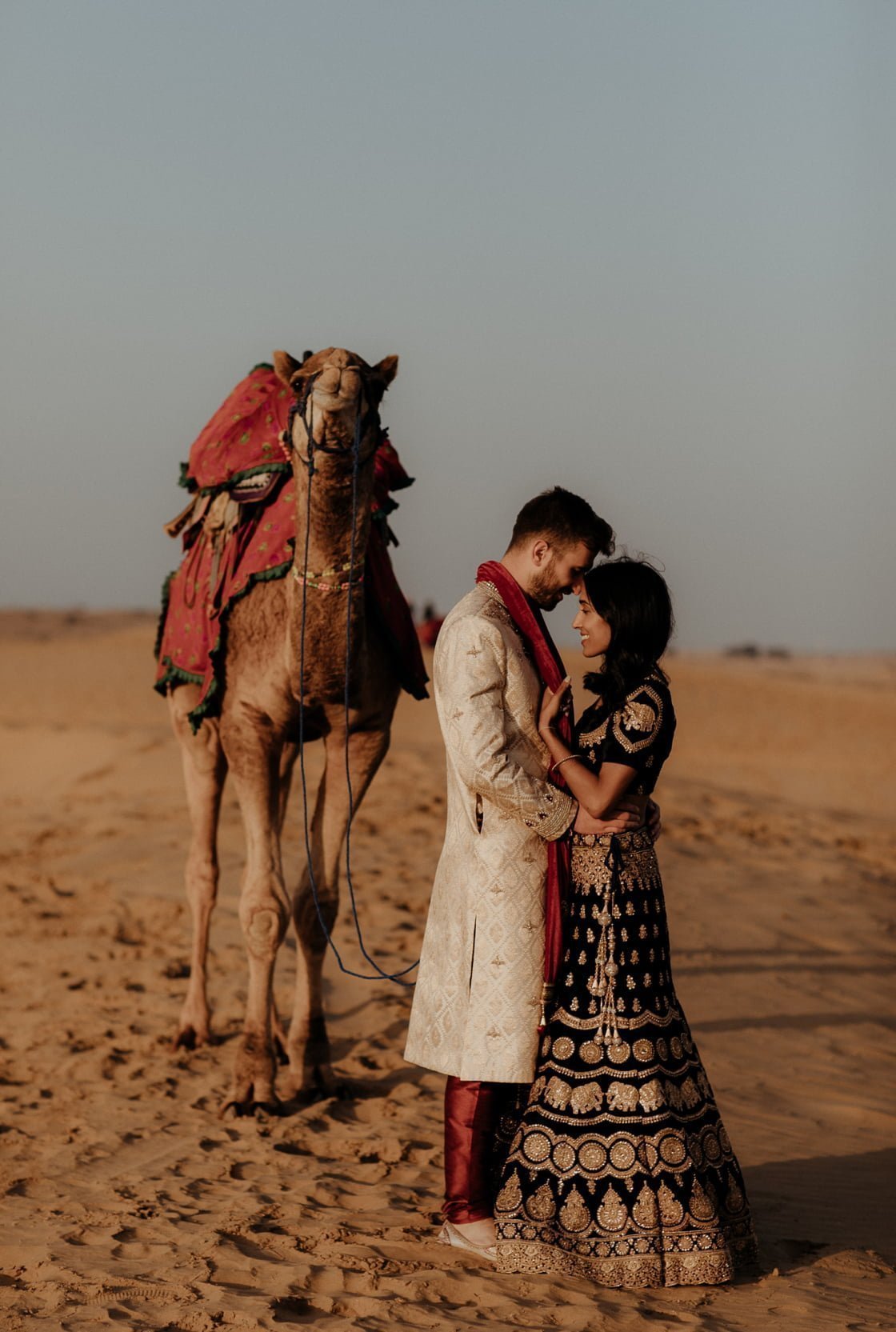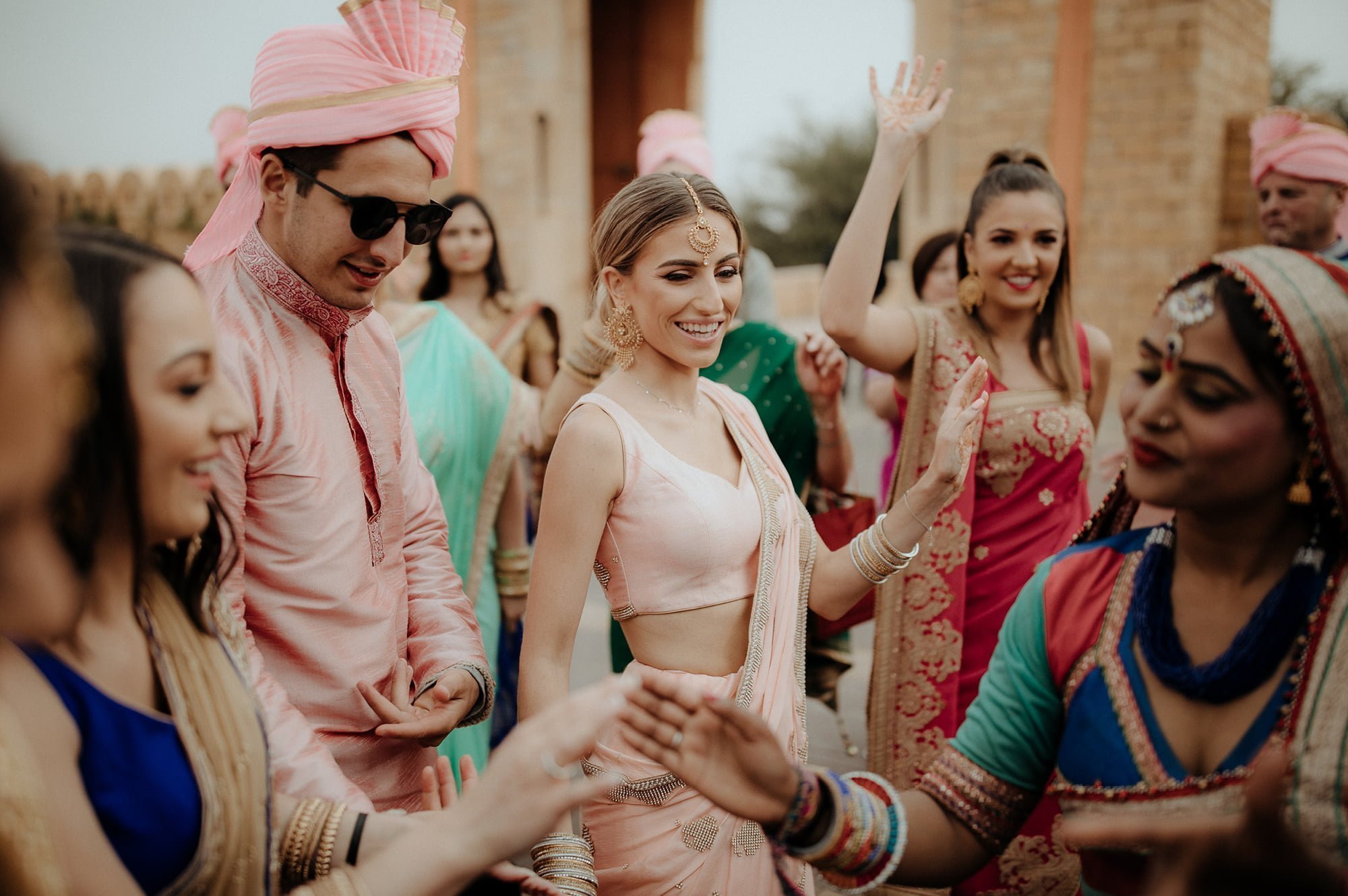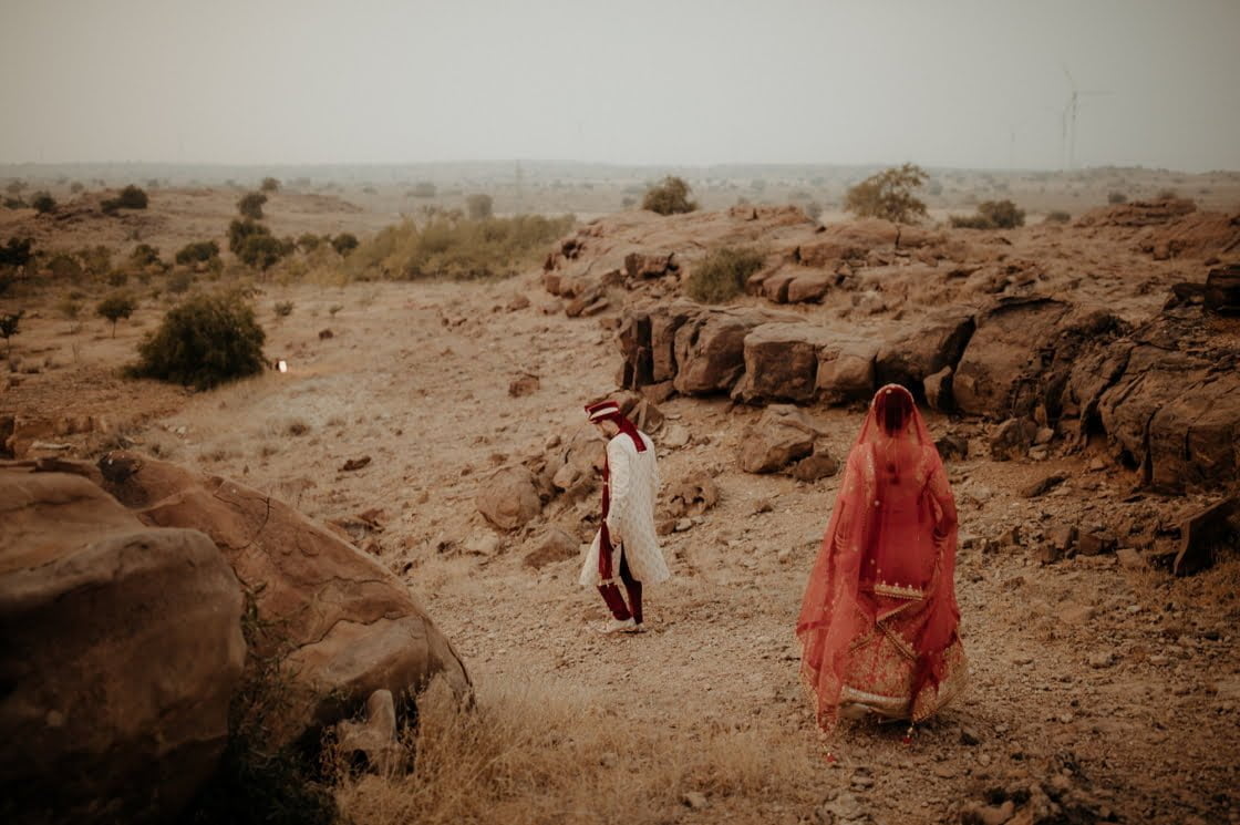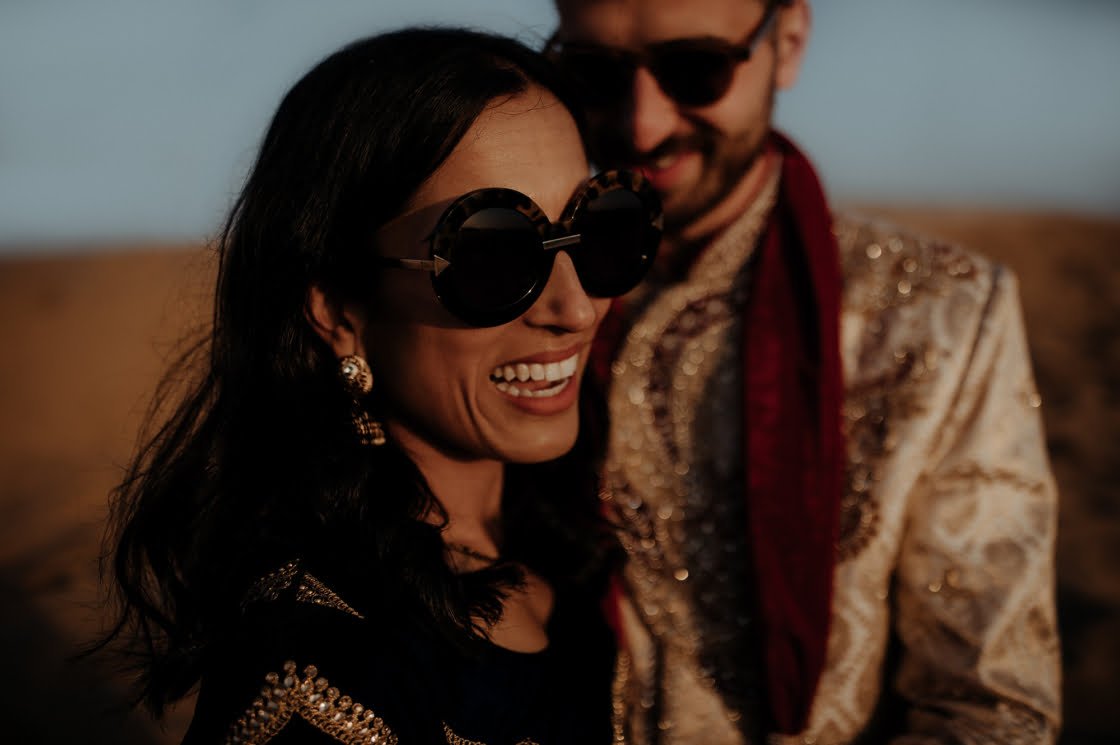 THE THEME “Each of the four days had a different event, and were themed accordingly. Day 1 – welcome cocktails for sunset in the desert. Day 2 – Henna Afternoon – everyone in blues and greens on the orange backdrop. Day 3 (am) – Cleansing Ceremony (Pitthi) – everyone in yellows and orange with morning light. Day 3 (pm) – Giving away, dinner and dancing – everyone in pastels. Day 4 – Wedding Day – the brightest of brights and into the party.”