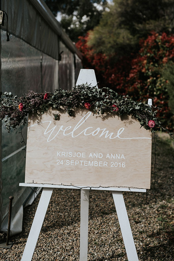 “We wanted to put as much of our own positive energy into the day. Whether it was sewing each napkin, hand painting our seating chart or having donations to our personal charities as wedding favours, we wanted to give our guests a part of us and really feel who we were on the day,” says Anna, who looked gorgeous in her Carla Zampatti gown.