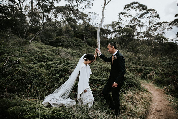 “We knew we wanted to get married in the Blue Mountains away from the hustle and bustle of the city. There’s a powerful tranquility throughout the mountains that made for a magical setting for our big day,” explains the bride, adding the that idea behind their wedding was pretty straightforward.