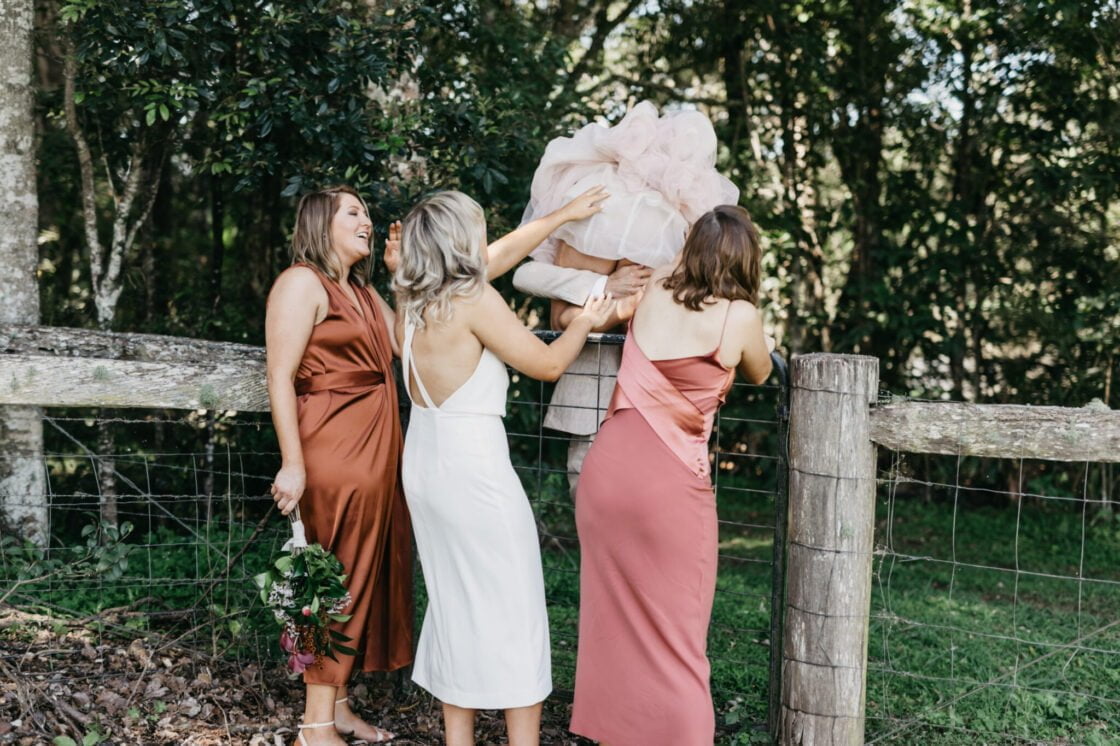 LITTLE LOL “Two days prior to the wedding the bridal party and our sisters all got spray tans. When one of my sisters showered first she frantically messaged everyone else to hop in the shower ASAP as the tans had gone ridiculously dark and our hands and feet were extra dark. We tried everything we used bleach, toothpaste, tan remover but the best remedy of all was our photographer Cass who managed to make it a little less noticeable in our photos.”