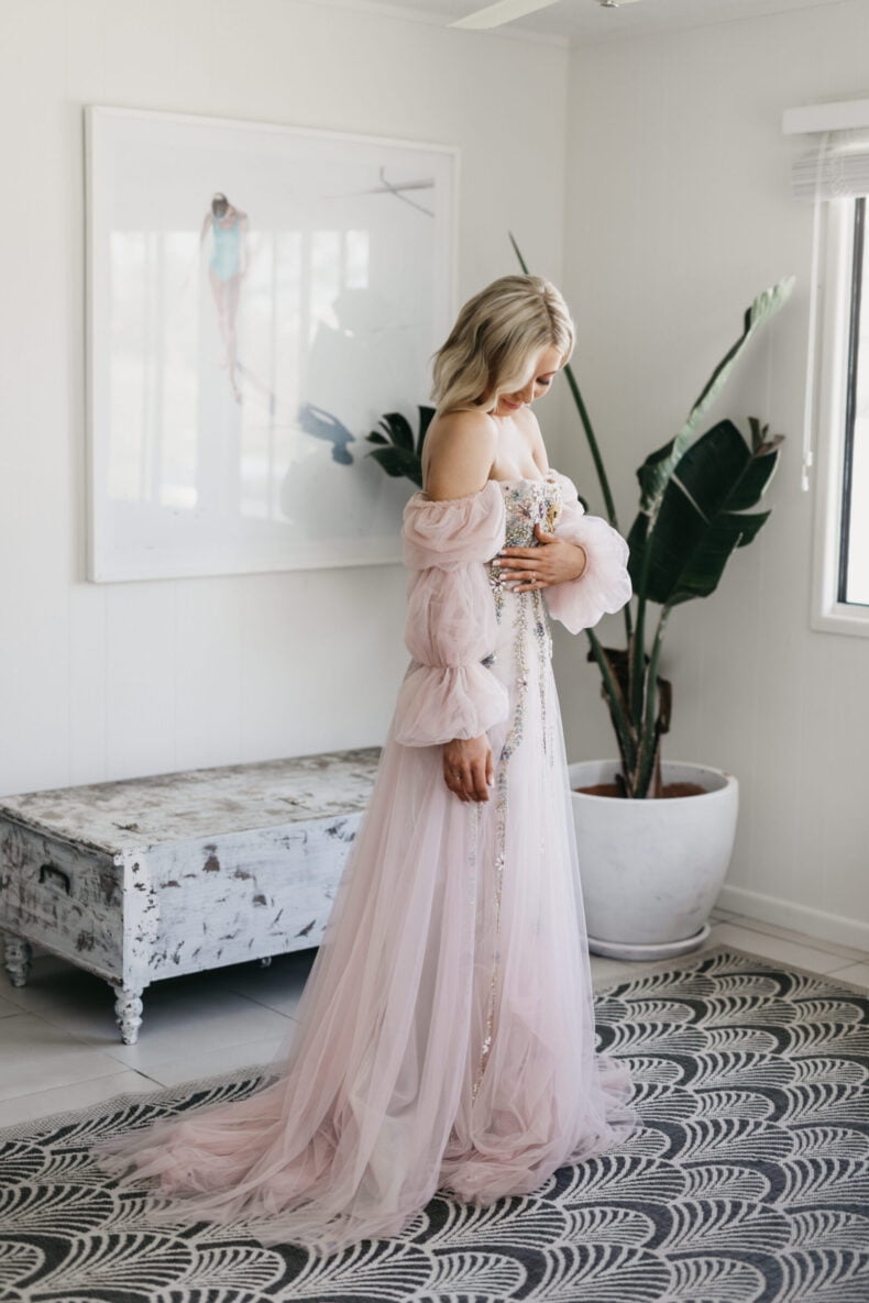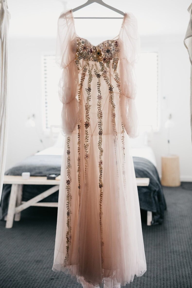 THE DRESS “For months prior to the wedding I was emailing back and forth with another designer creating the “perfect” dress, I had put all my trust into them. The dress date kept being pushed back so I only received/ saw it for the first time 1 month before the wedding. When it arrived I just broke down as it was nothing that I had envisioned and I went into full panic mode. The Roslin Gown I wore on my wedding day I had seen a few months beforehand on Rachel Gilbert’s website so my Maid of Honour Emily took the reins and managed to get into contact with Rachel Gilberts Head Office and track down the one and only Roslin Gown in Australia. The girls at Rachel Gilbert were absolutely amazing managing to re-bead and express post the gown to me in under a week”