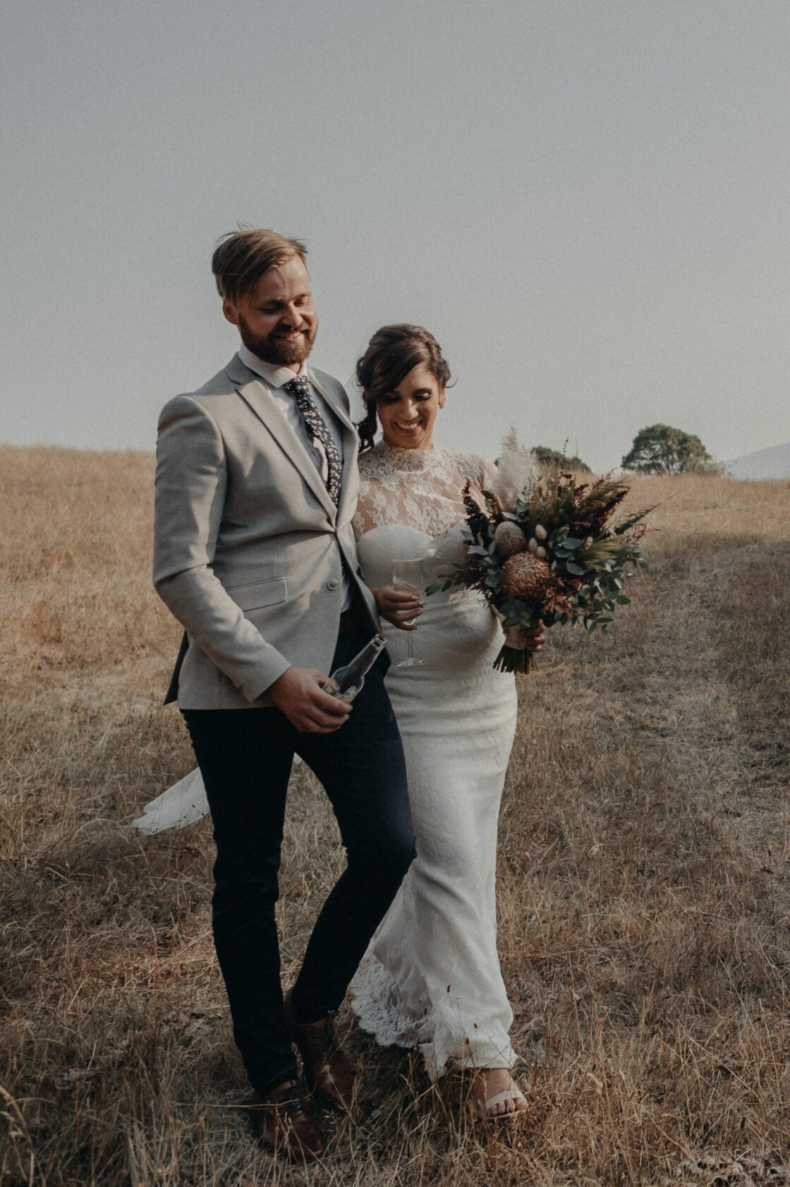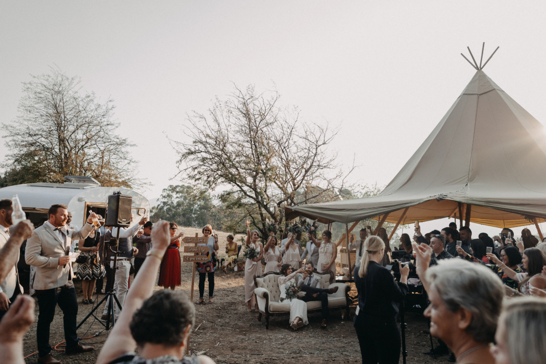 Ashlee and Chris were so keen to celebrate their love that a one-day wedding just wouldn’t do. Cue their weekend-long wedfest celebration. With their very own wedding, events and glamping business, Under The Moon Elopements, these guys were well equipped when it came to pulling it all off. Despite the fact that Ashlee signed the marriage certificate in the wrong spot and the couple’s guests ate their doughnut table (aka wedding cake) before they even arrived, good times were still abundant. Scroll down to take a peep, as captured by Canberra based lens-woman Lauren Campbell…