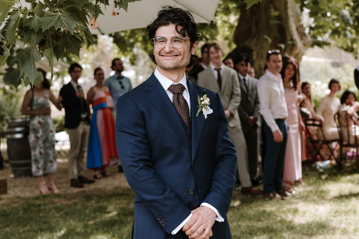 “Our venue, [Euroa Butter Factory], was the first and only one we visited! A friend who attended a wedding there posted on his Instagram Story, and I knew we had to check it out. When we arrived to see the venue, we both fell in love. It had an effortless vibe that was classic and fun all at once. “Australian Tuscany”, as his mum called it. Talking to the owner, Jill, we were instantly at ease and knew we could just hand her the reins – unsurprisingly, she nailed it.”
