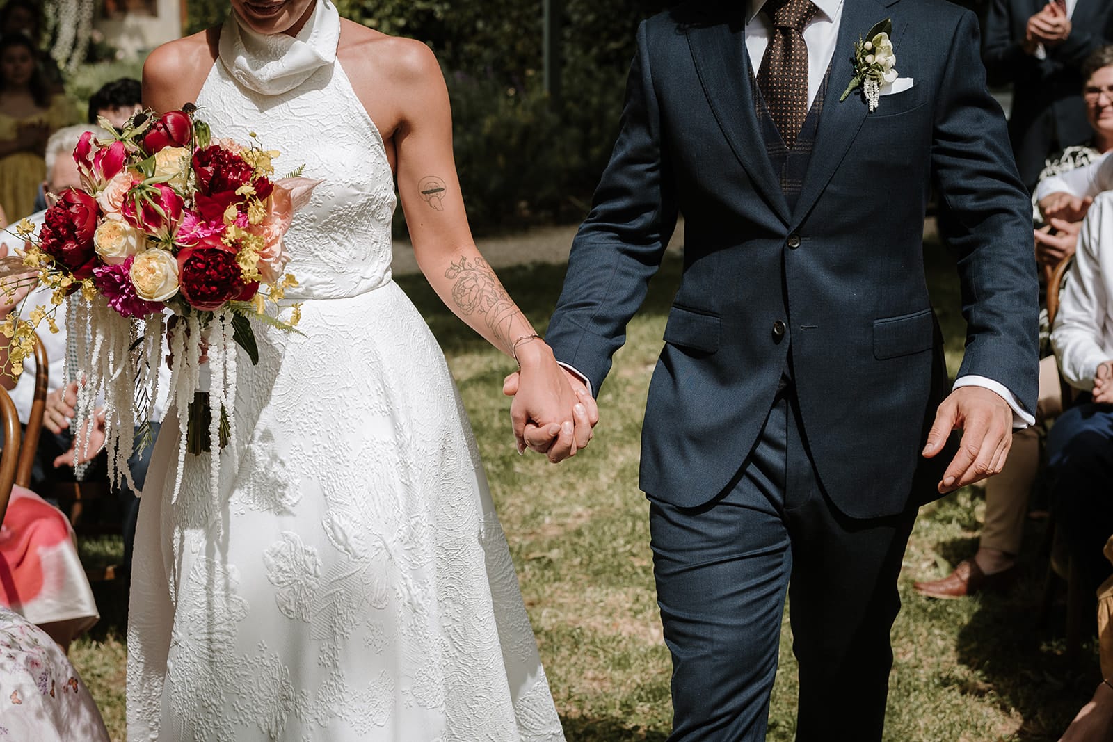 “Where to begin! Being sung down the aisle by a loved one was so special. Our celebrant, Yolande, captured us perfectly in our ceremony and made it a core memory with just the right touches of humour and romance. She managed to ground us in the moment with each other and set the vibe for the whole day. Once everyone hit the dancefloor, they didn’t stop – we danced all night long!”