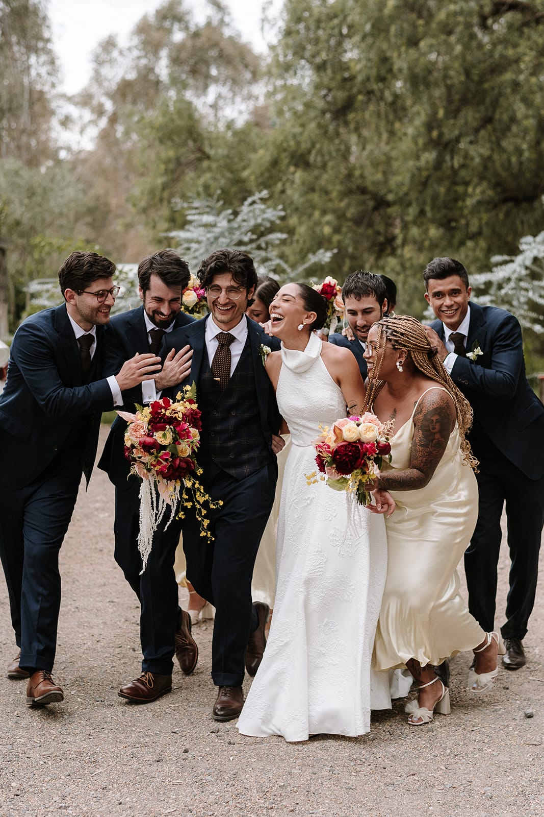 Tess was a no-brainer – we’re beyond thrilled to have such breathtaking photos to look back on. We’re not great at getting our photo taken, but she made the whole process so fun and easy (she’s also great in a crisis with wet wipes and band aids on hand!). Our friend George was selfless in the huge amount of work creating the florals, and of course, we can’t forget the team at Euroa Butter Factory, who just pulled everything together seamlessly on the day. Every one of our vendors was just so lovely, would absolutely choose them all again!”
