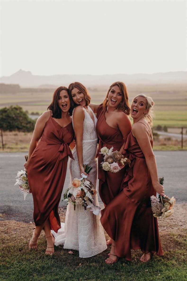 Bonnie and Jarrod, part owners of a restaurant group, know a thing or two about planning events. They knew that by the time their very own big day rolled around, after six years of lovin’, that quality vendors would be essential. Luckily for them, Bonnie stumbled across the wonderful Tennille Fink Photography whilst deep into some Insta research. The bride also lucked out with a trip to Sphere Collective where she found her sparkly gown and the groomsmen suits were from the ever-chic M.J. Bale. The joys of being in the know, eh? Enough from us, quick sticks, get scrolling for details…