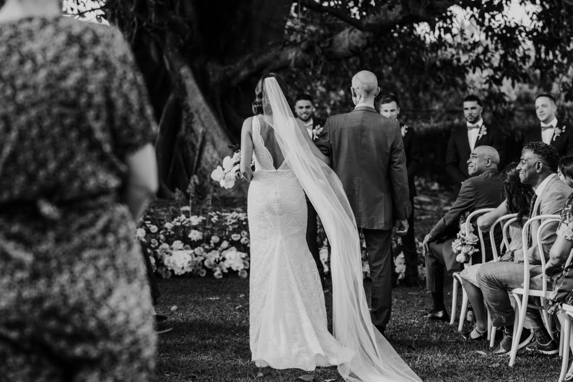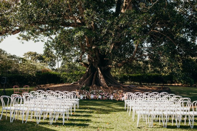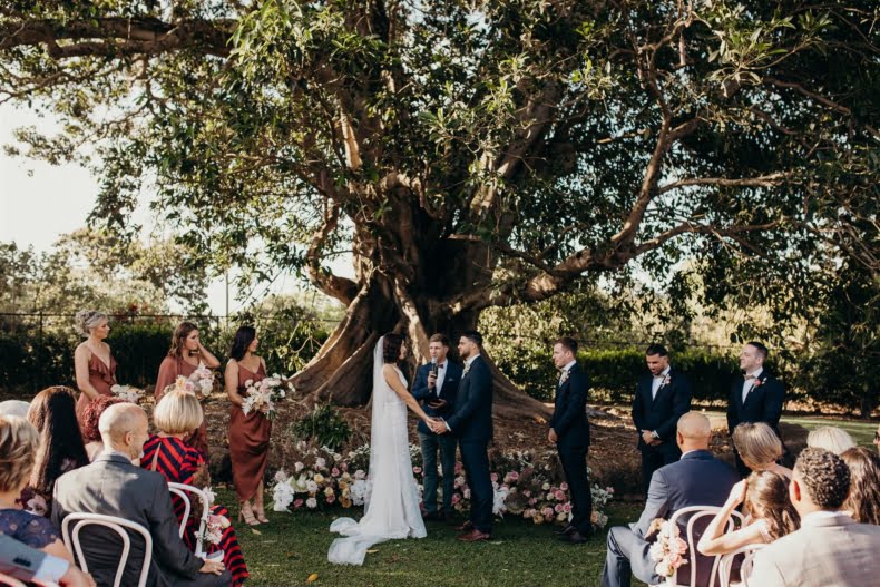 WE’RE GLAD WE “We decided early on that we wanted to flip the venue’s usual set up and utilise the back garden for our Ceremony instead of the front lawn, overlooking the mountains, as we fell in love with the idea of being married under the 120 year old fig tree. We’re so glad we did this as it allowed the three separate events on the day to have their own individualised features (ceremony, front lawn cocktails and reception).”