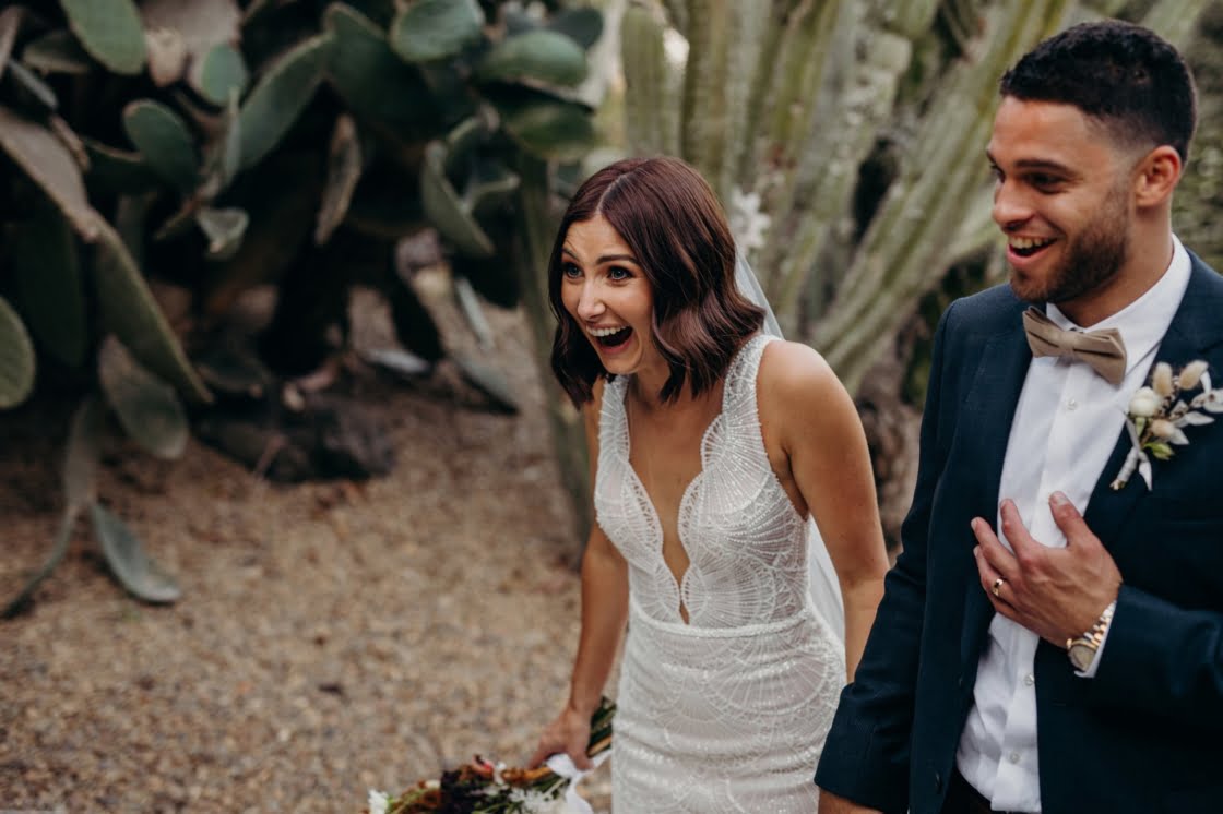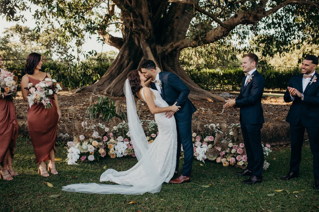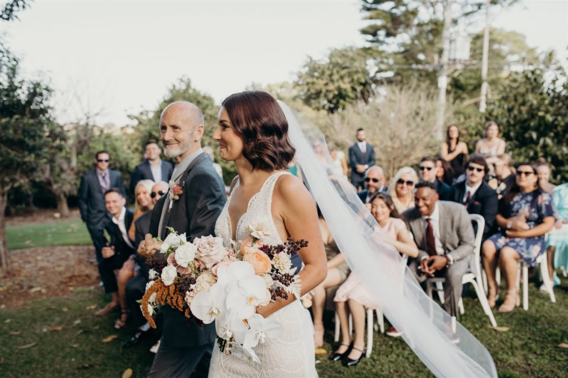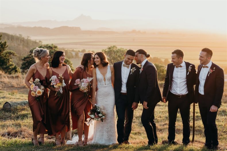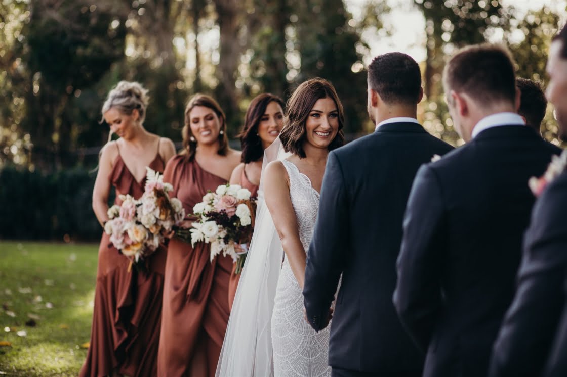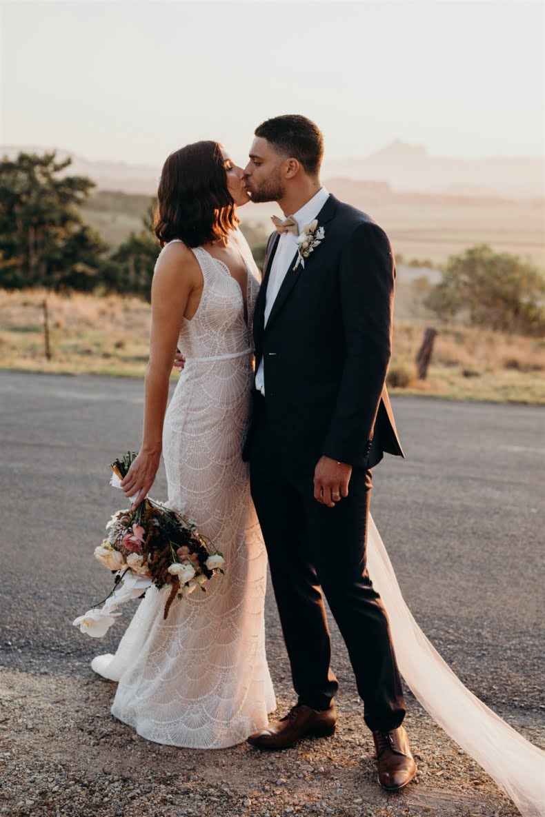 Bonnie and Jarrod, part owners of a restaurant group, know a thing or two about planning events. They knew that by the time their very own big day rolled around, after six years of lovin’, that quality vendors would be essential. Luckily for them, Bonnie stumbled across the wonderful Tennille Fink Photography whilst deep into some Insta research. The bride also lucked out with a trip to Sphere Collective where she found her sparkly gown and the groomsmen suits were from the ever-chic M.J. Bale. The joys of being in the know, eh? Enough from us, quick sticks, get scrolling for details…