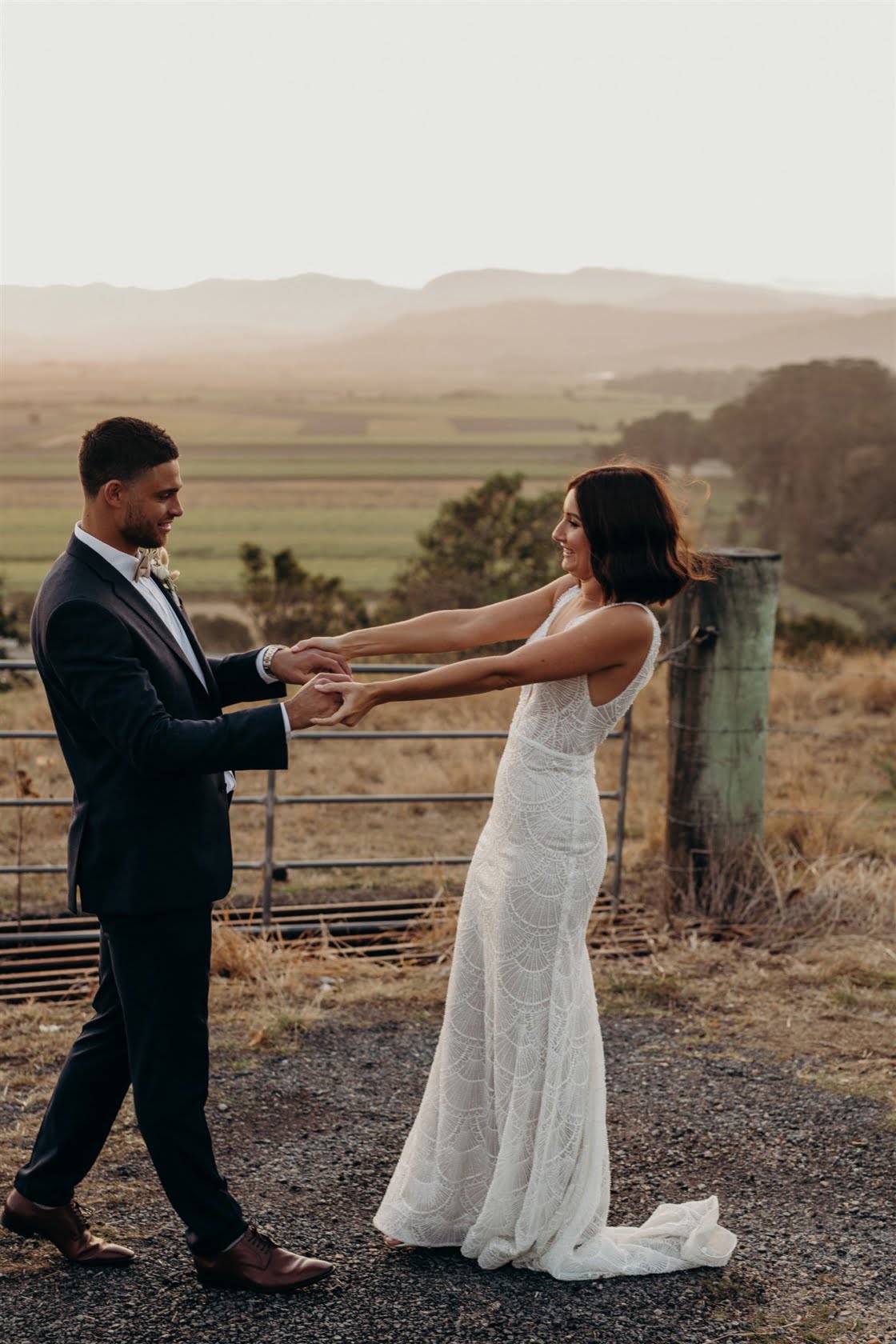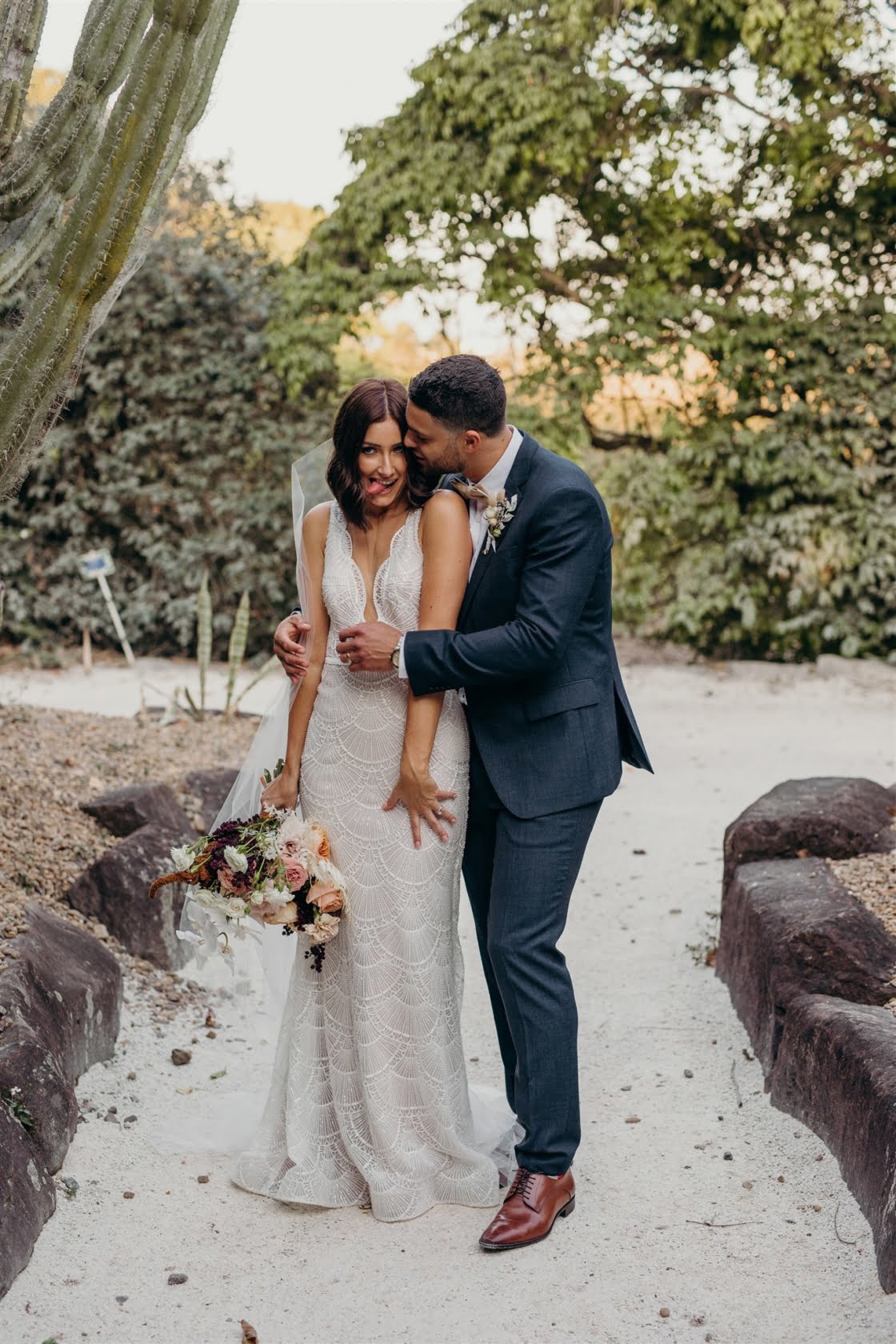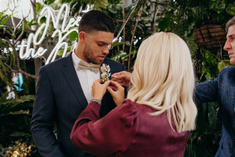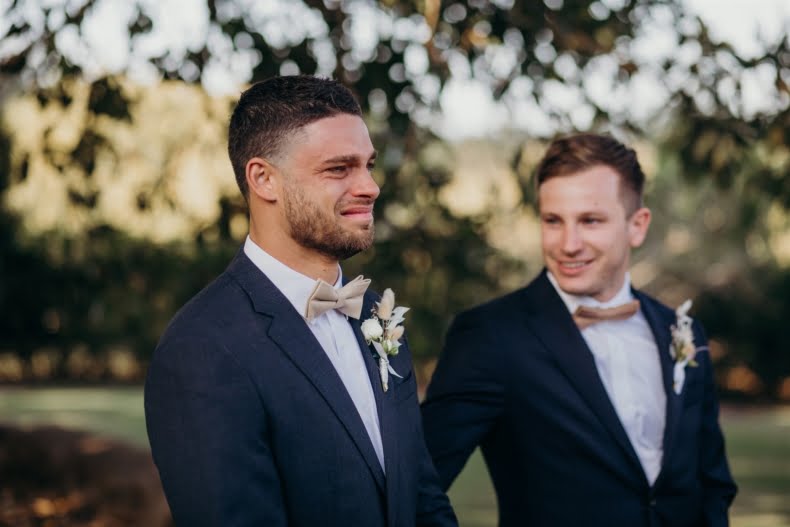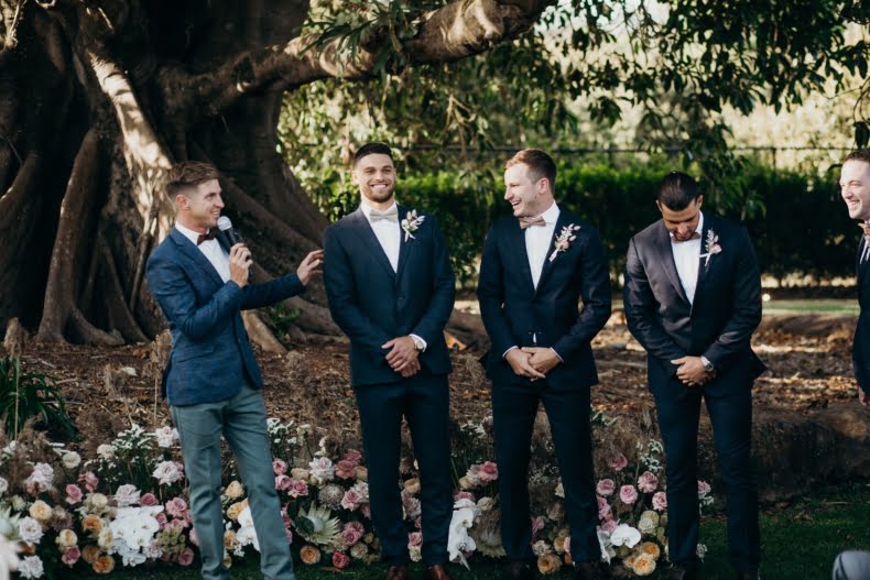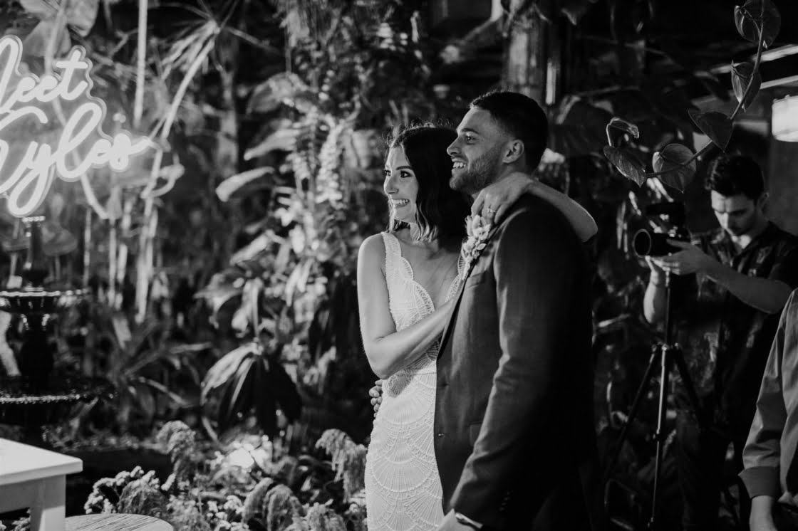 Bonnie and Jarrod, part owners of a restaurant group, know a thing or two about planning events. They knew that by the time their very own big day rolled around, after six years of lovin’, that quality vendors would be essential. Luckily for them, Bonnie stumbled across the wonderful Tennille Fink Photography whilst deep into some Insta research. The bride also lucked out with a trip to Sphere Collective where she found her sparkly gown and the groomsmen suits were from the ever-chic M.J. Bale. The joys of being in the know, eh? Enough from us, quick sticks, get scrolling for details…