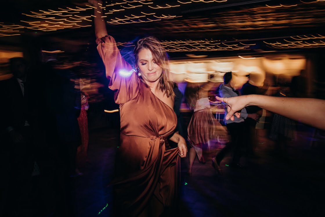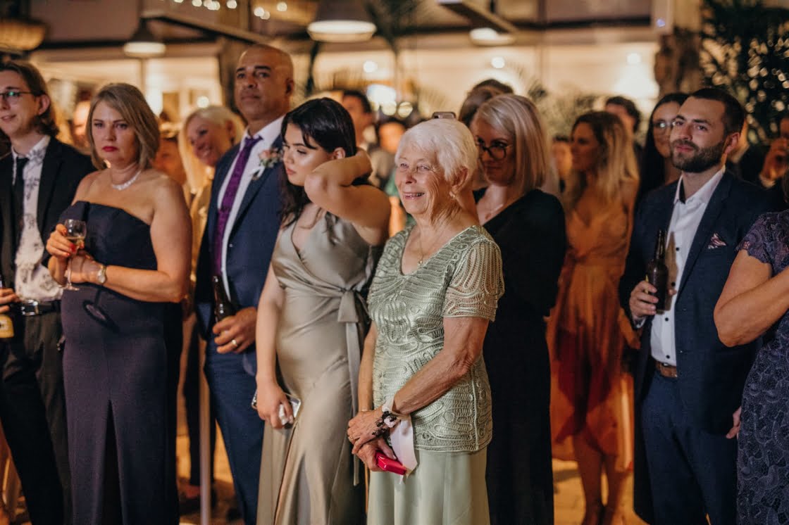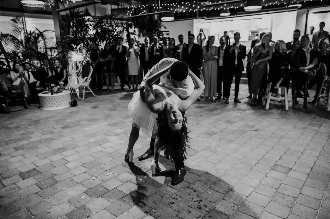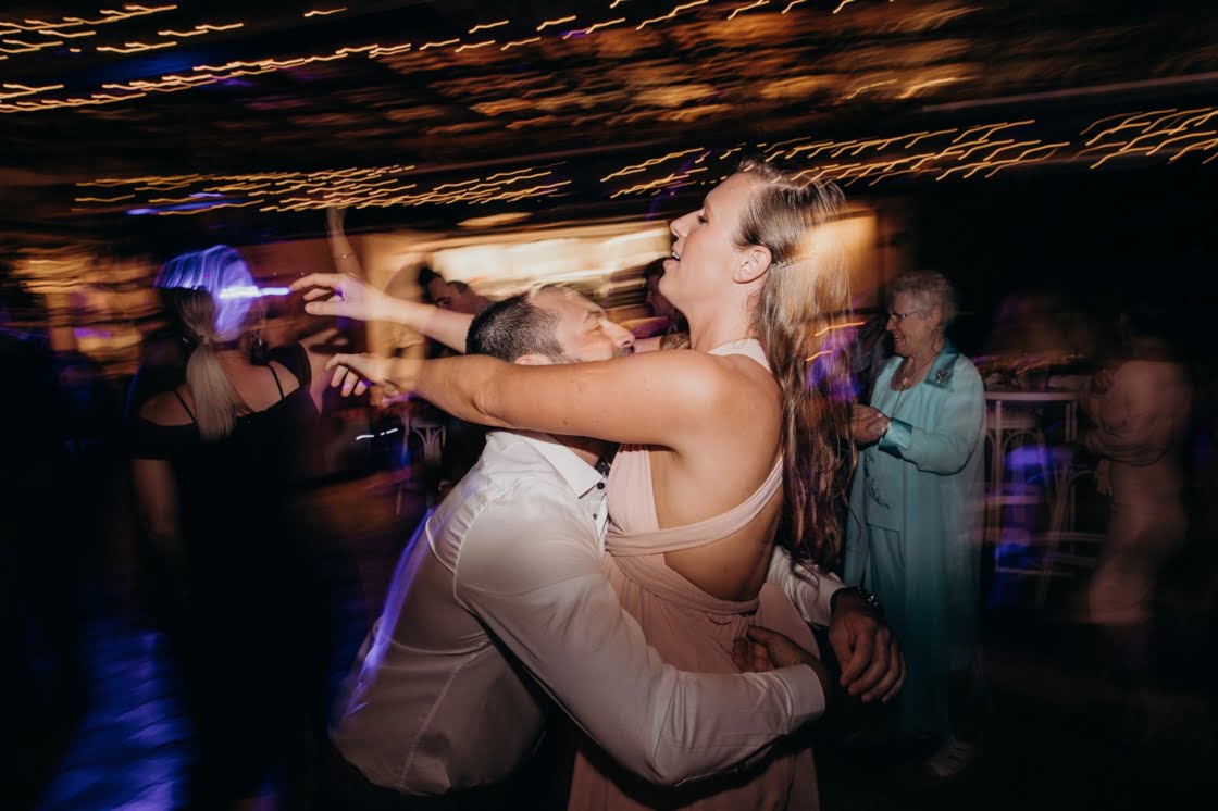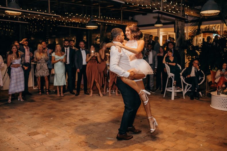 FAVOURITE MOMENT “We snuck away whilst everyone was enjoying dinner and I got changed into a little party outfit before our first dance. The only spare space the venue had was their furniture storage room, in the pitch black, so we found ourselves in there having a little make-out session in the quiet whilst I was peeling off my Spanx and Jarrod was force-feeding me a stick of halloumi as I hadn’t eaten anything all day.”